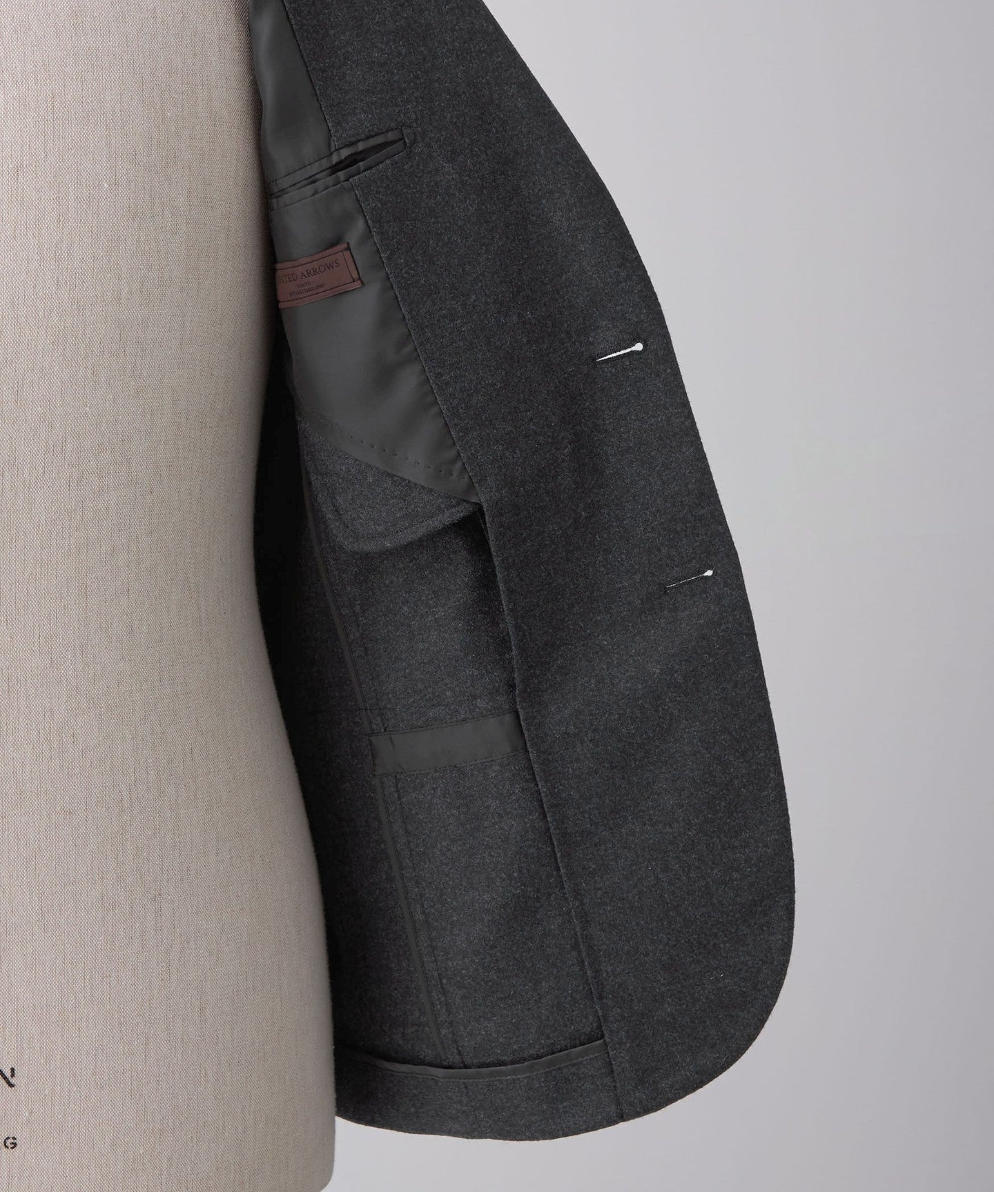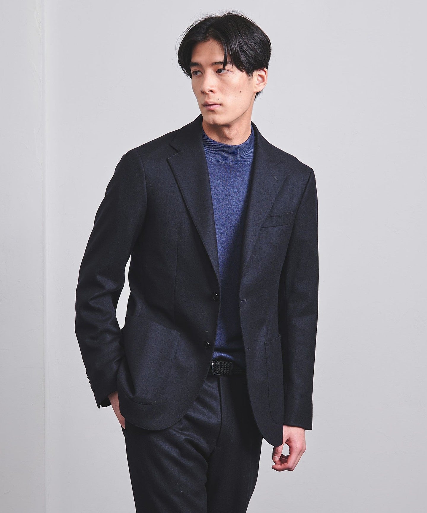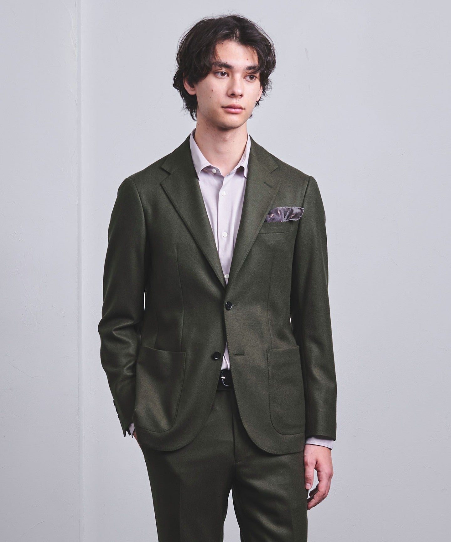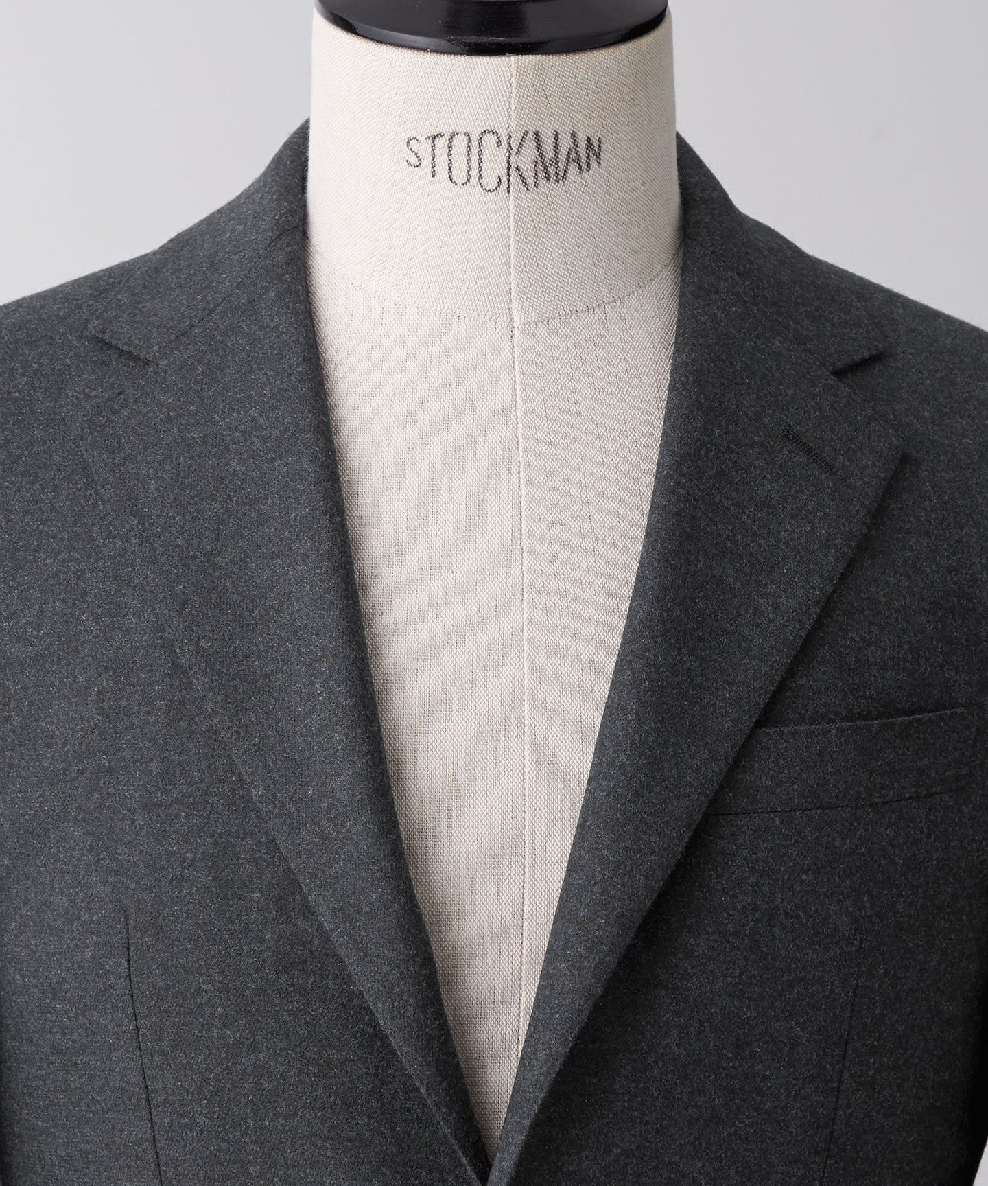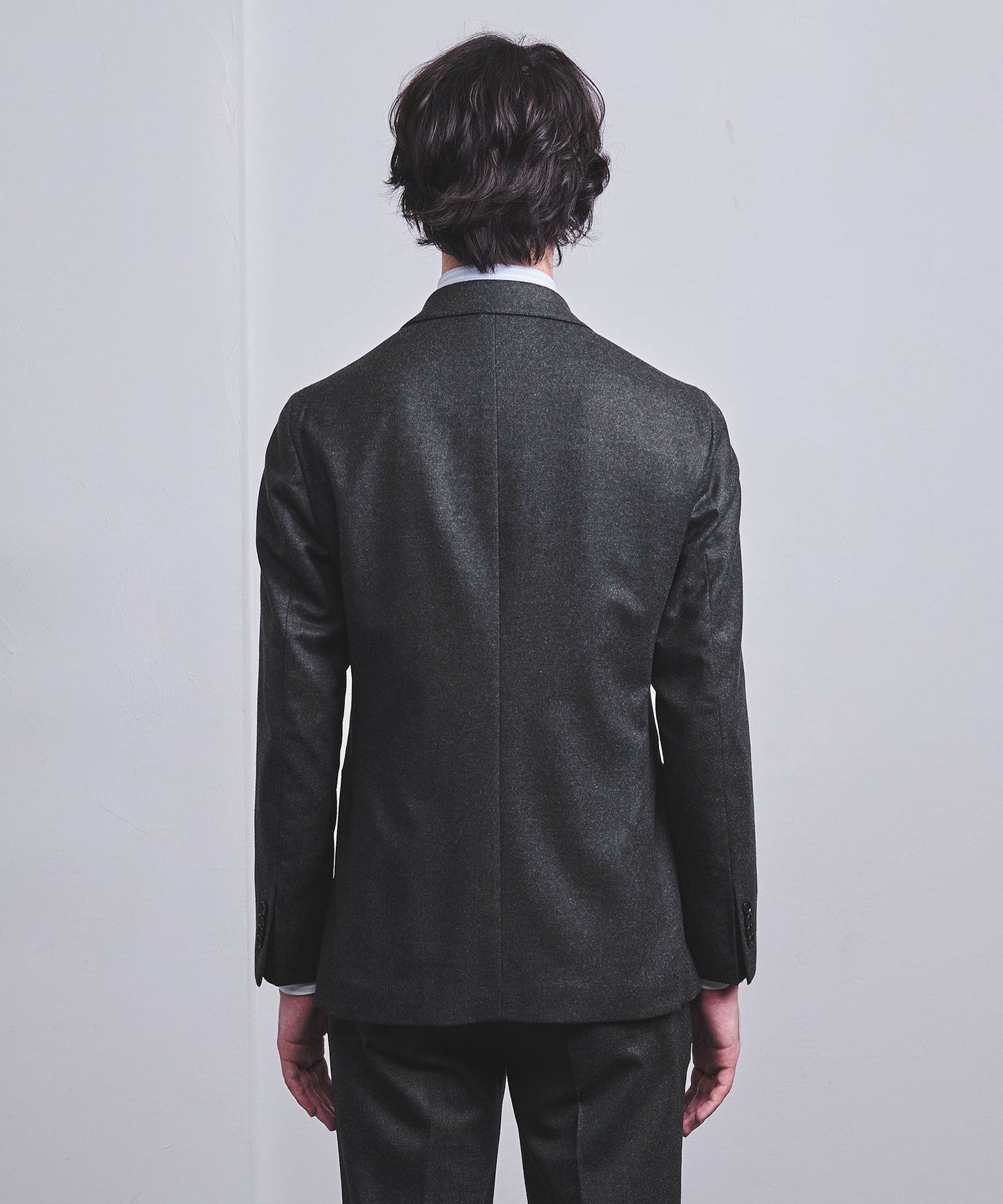 A two-button tailored jacket made from soft flannel material that gives off a soft and warm feel.