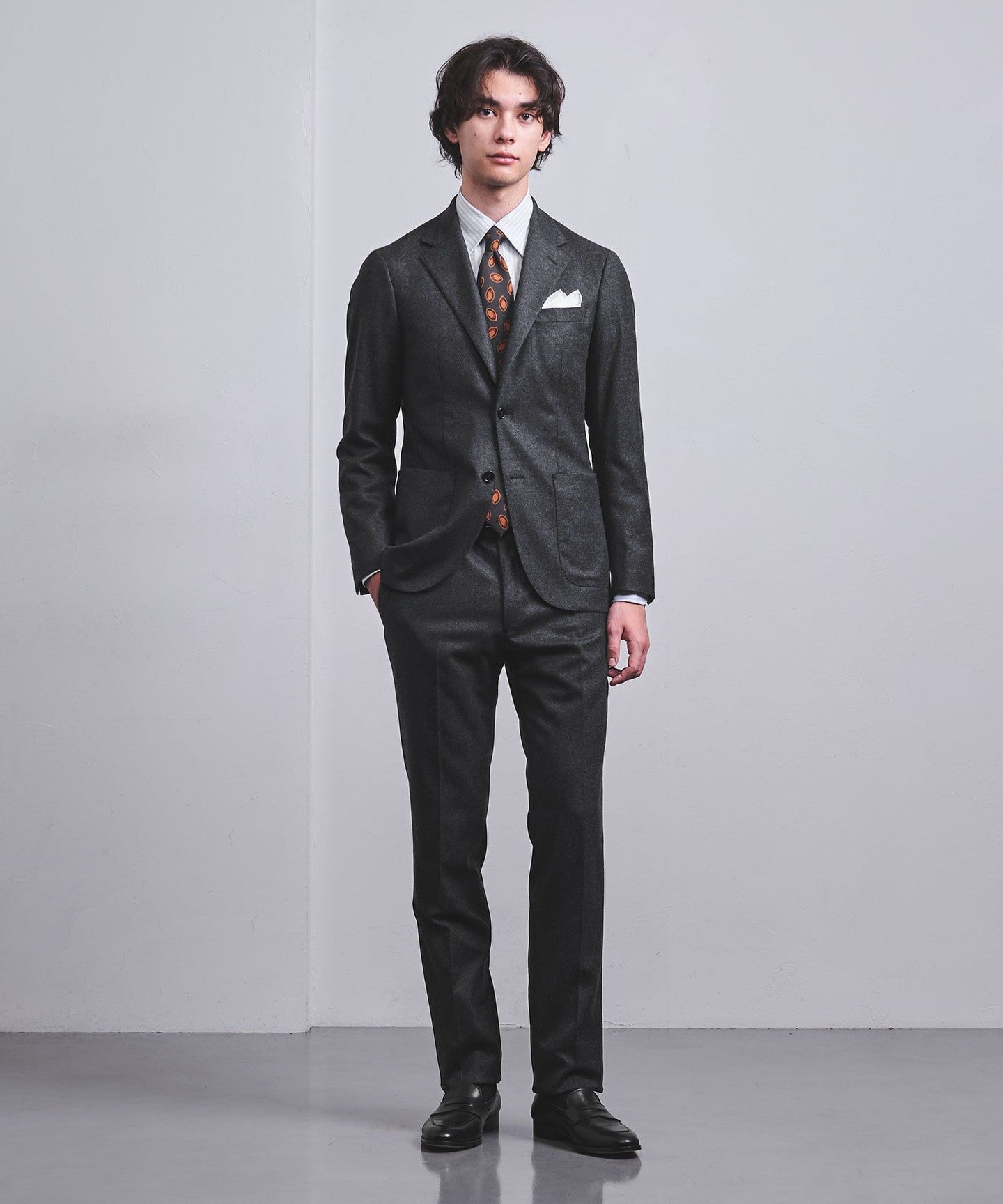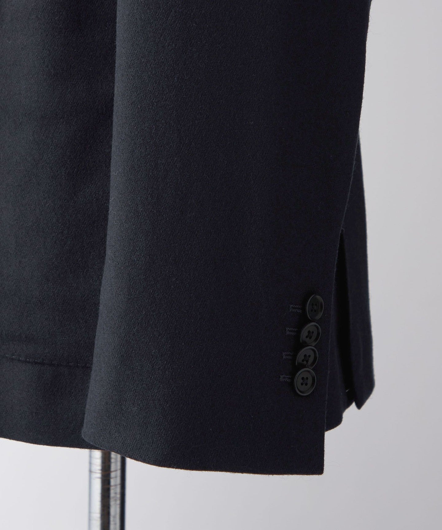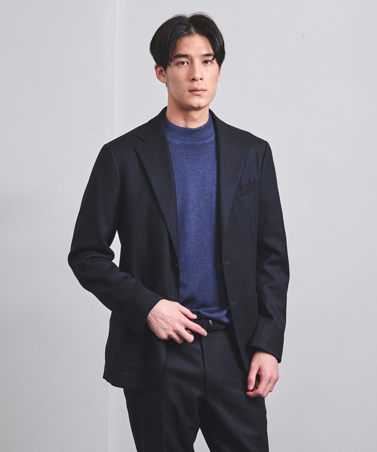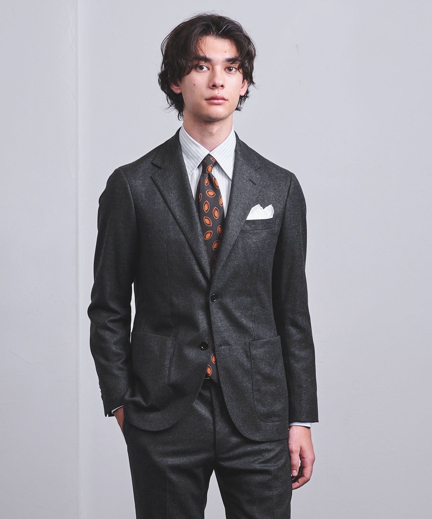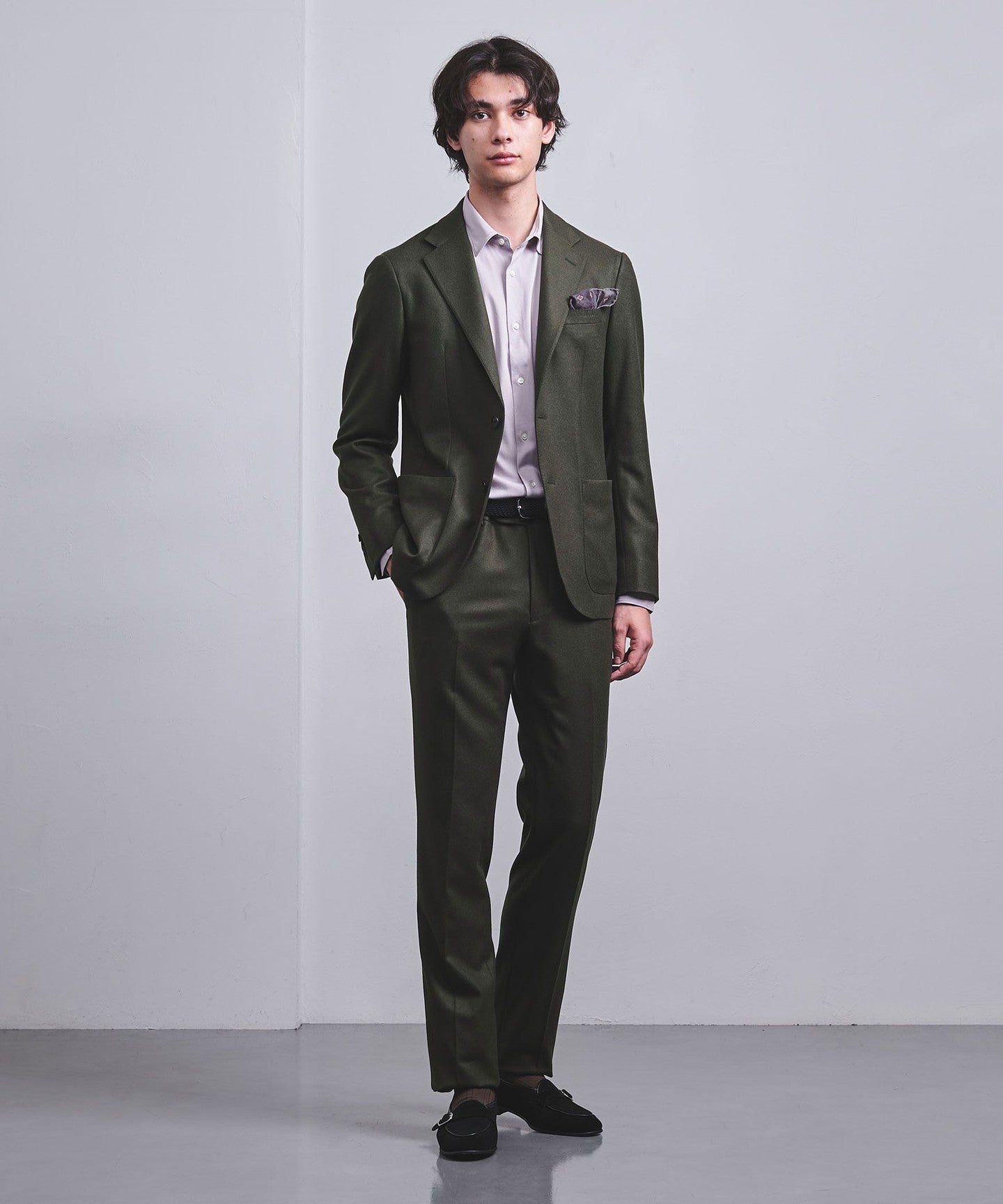 A two-button tailored jacket made from soft flannel material that gives off a soft and warm feel.