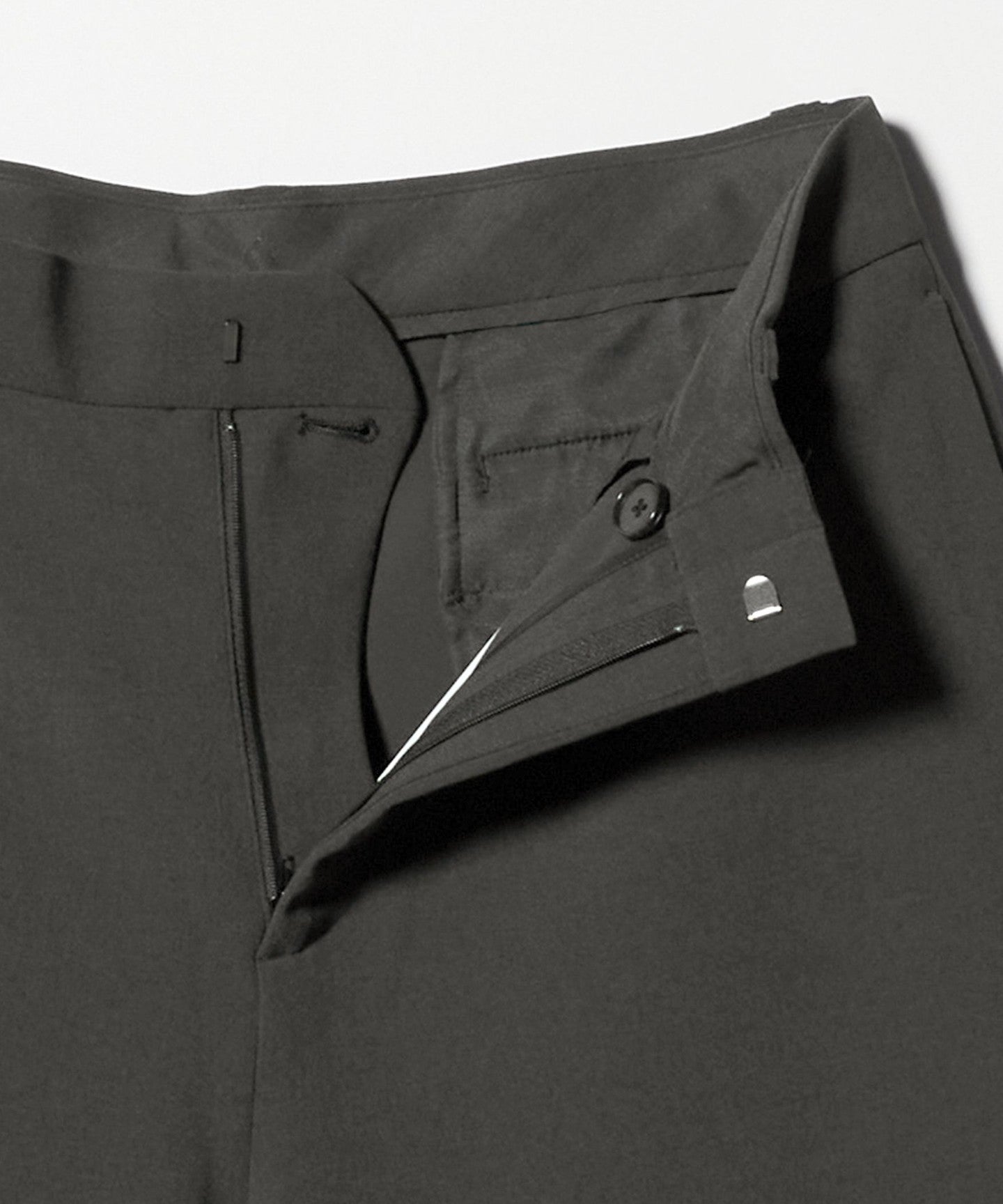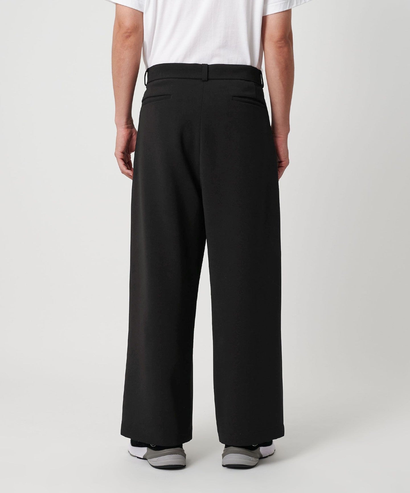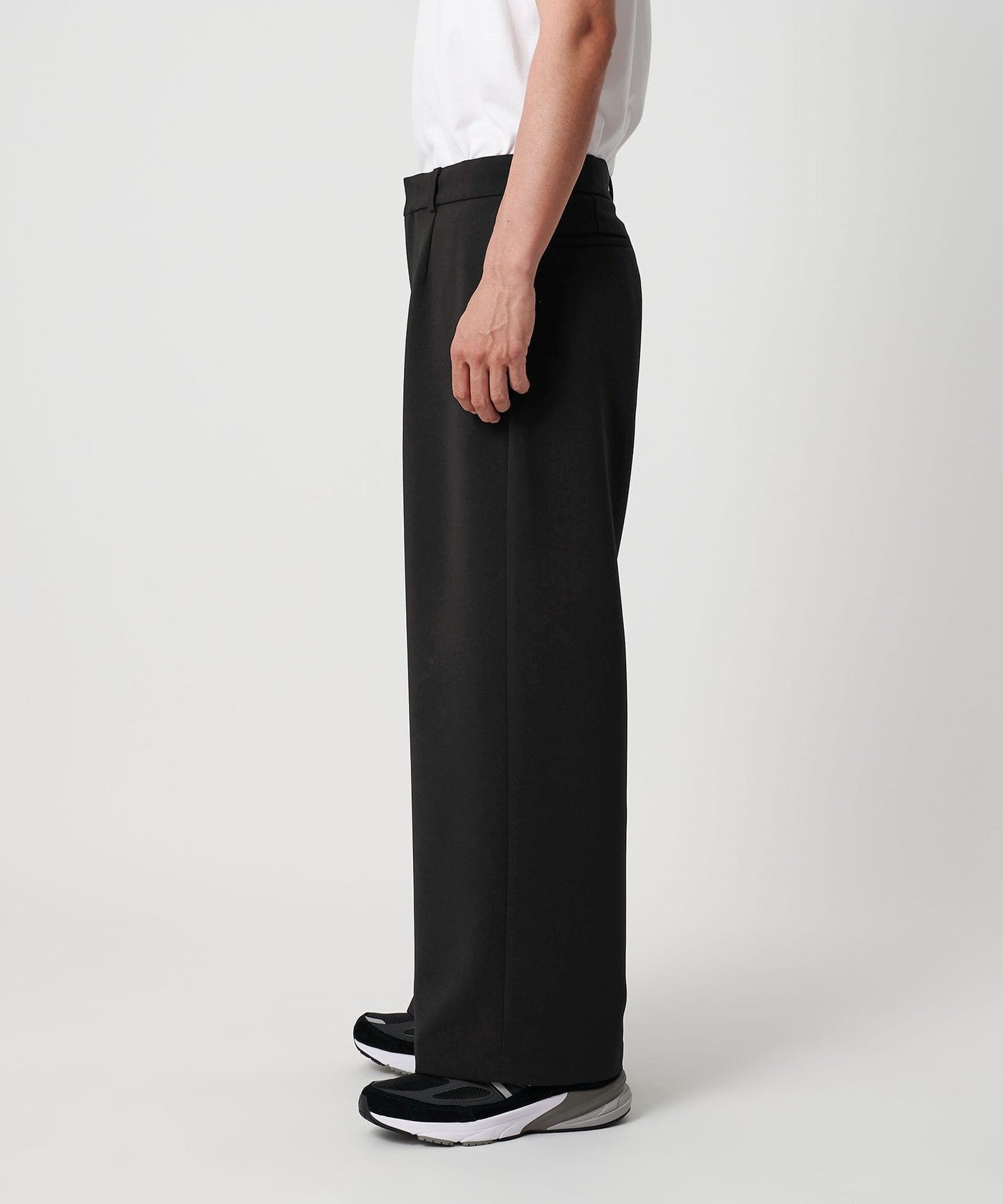 The pants have been modified to a wide straight silhouette based on officer pants.