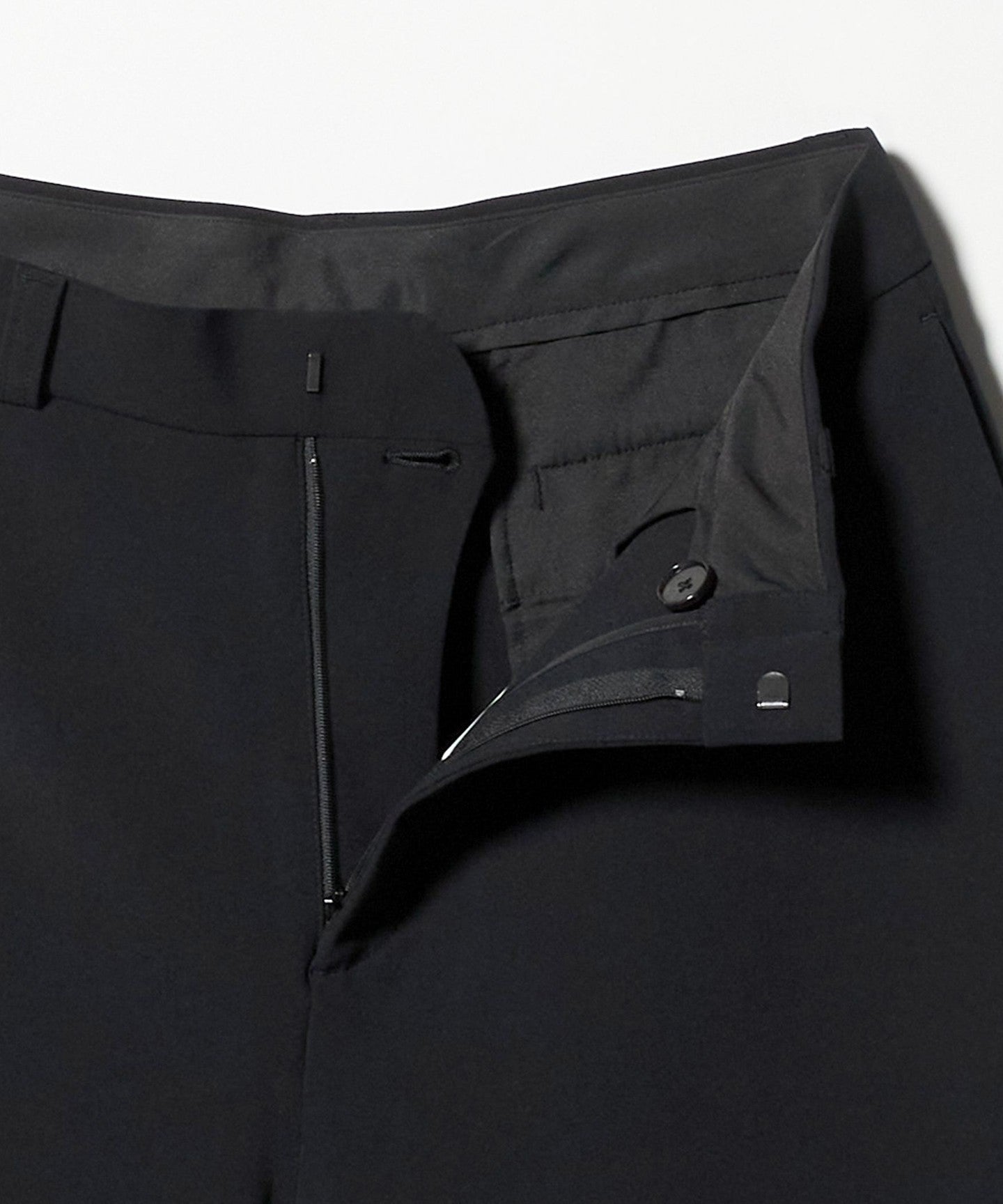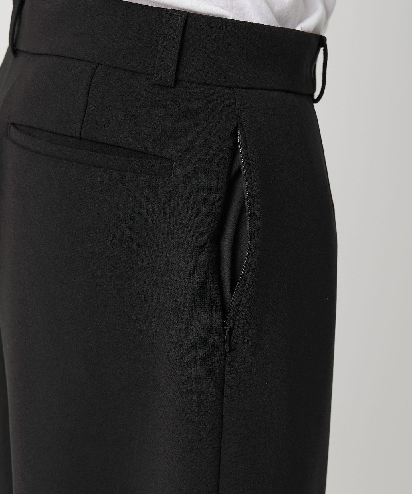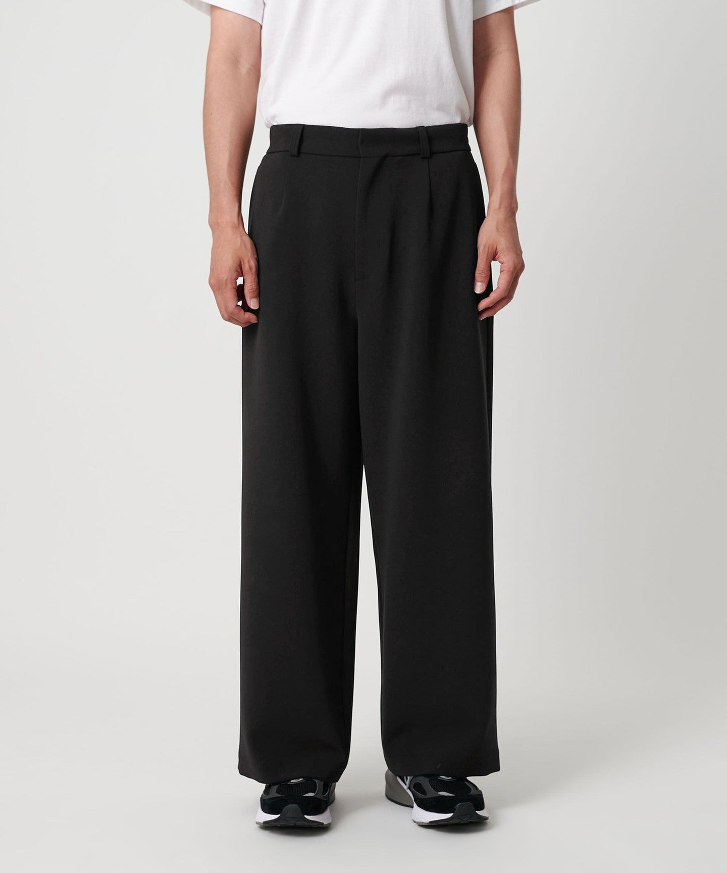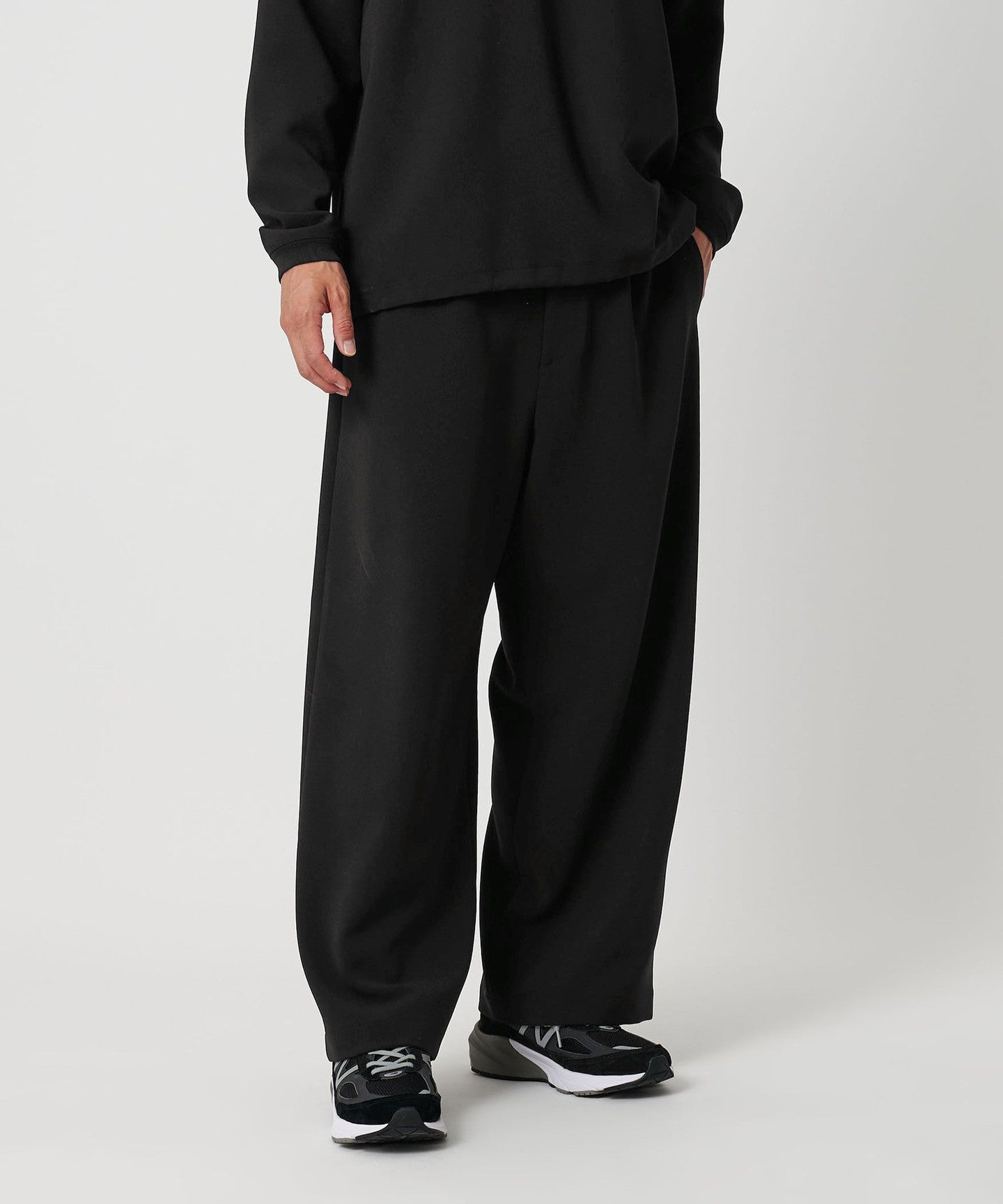 The pants have been modified to a wide straight silhouette based on officer pants.