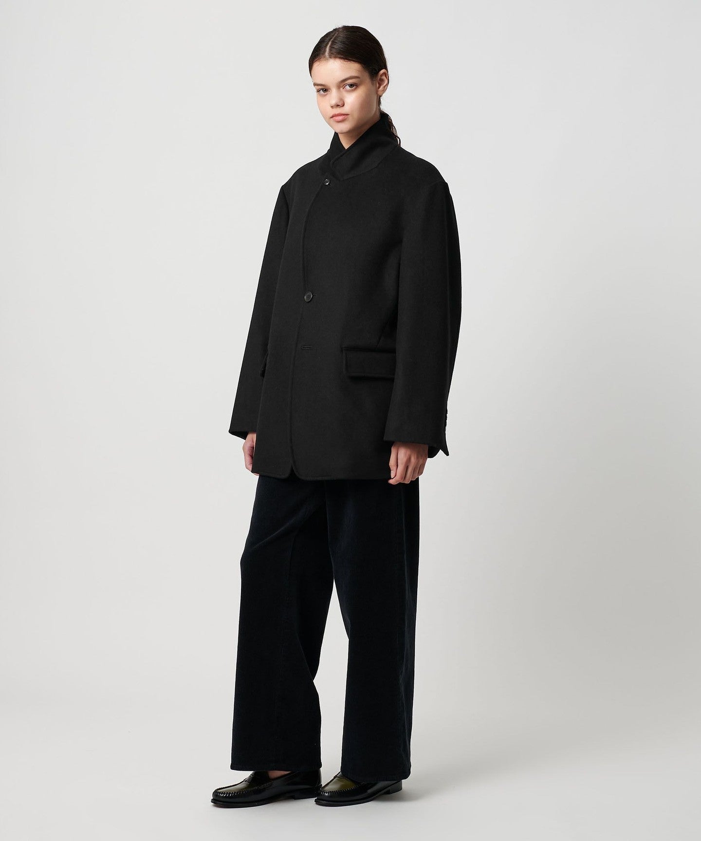 This season, the width of the body has been resized slightly narrower, and the lapel has been updated to have a button closure.