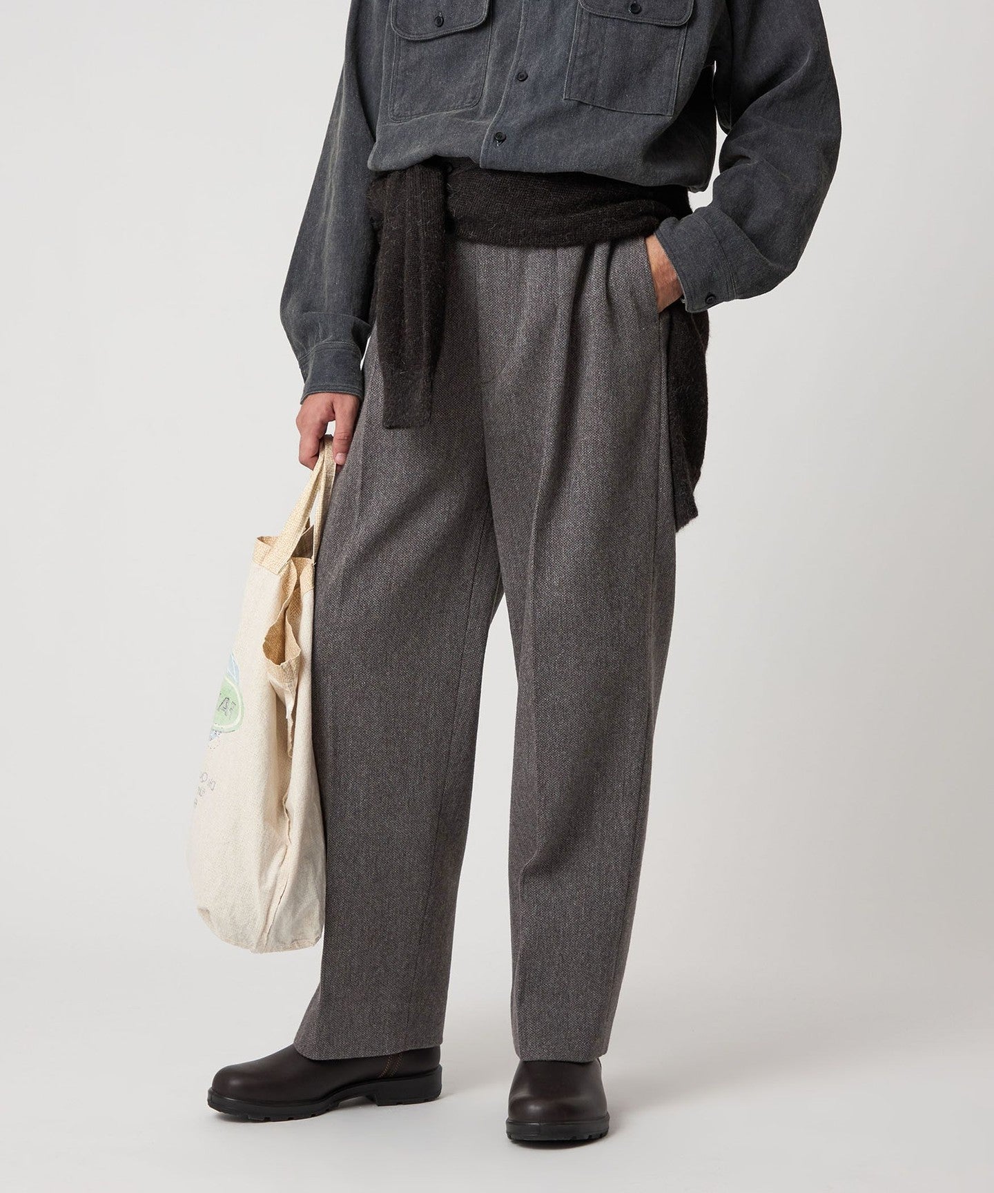股上はゆったりと深めに設定し、緩やかにテーパードしたワイドなシルエット。