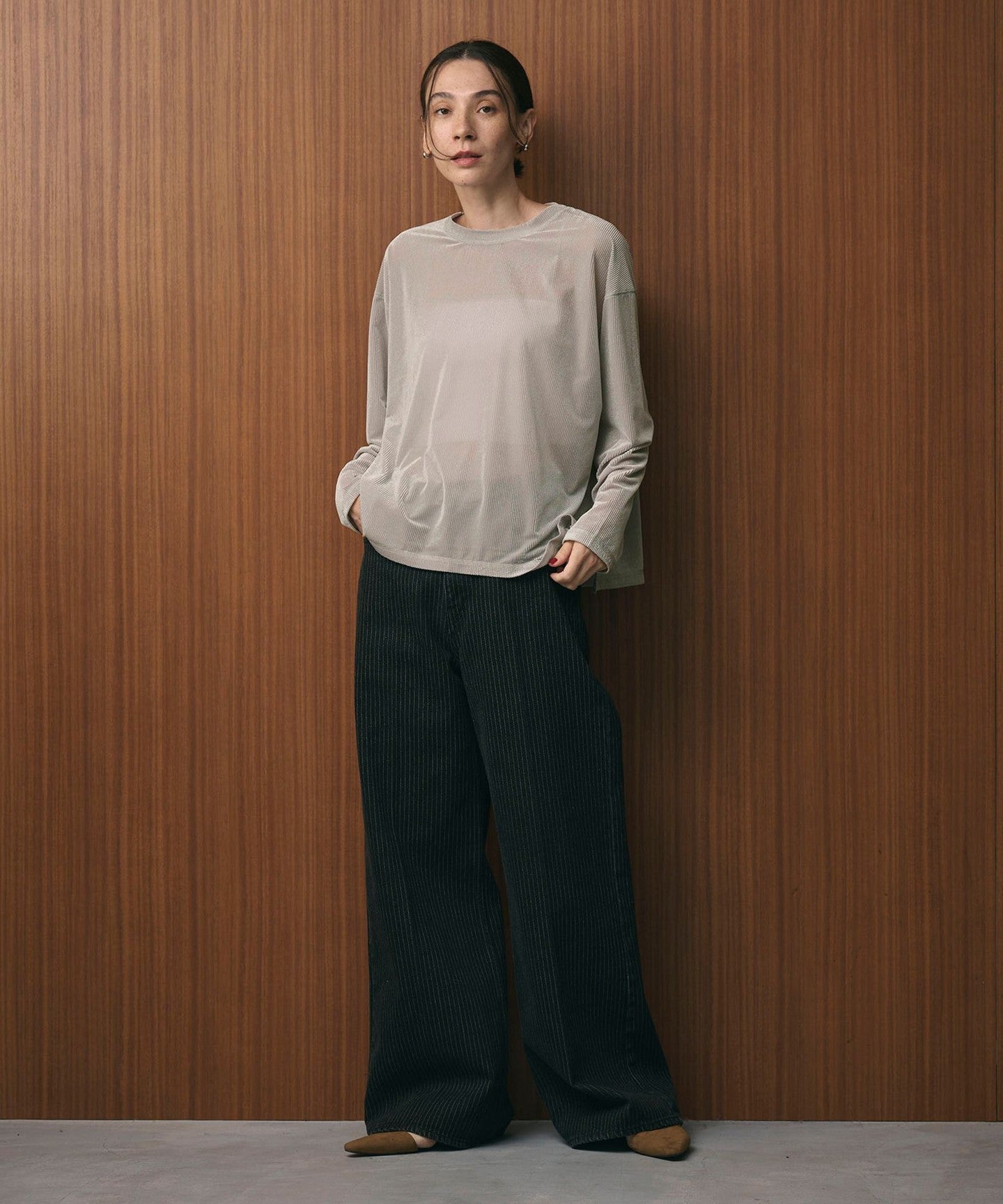 A long-sleeved T-shirt with a wide silhouette and side slits that can be worn loosely. SHIRT .