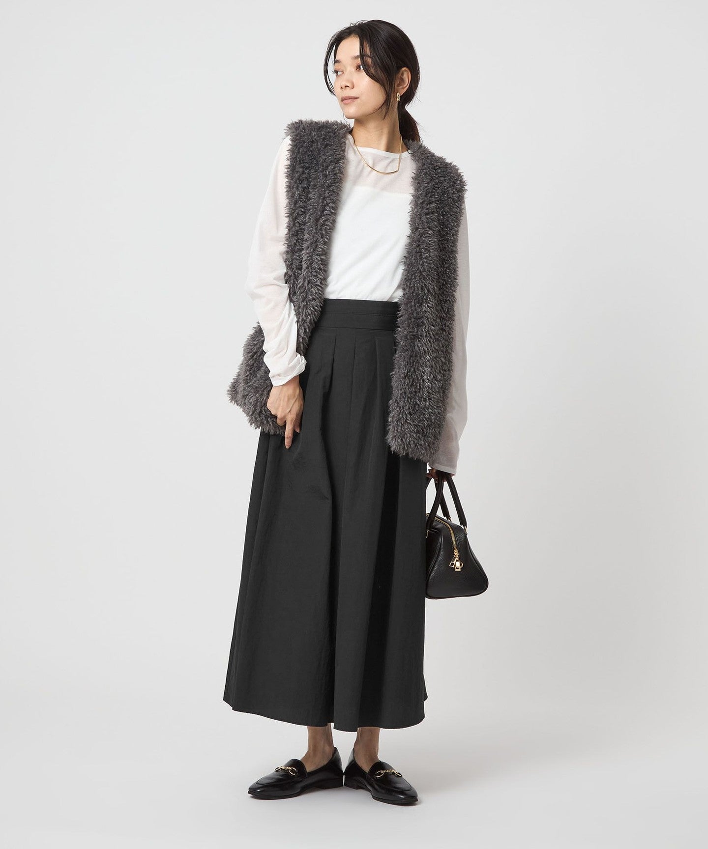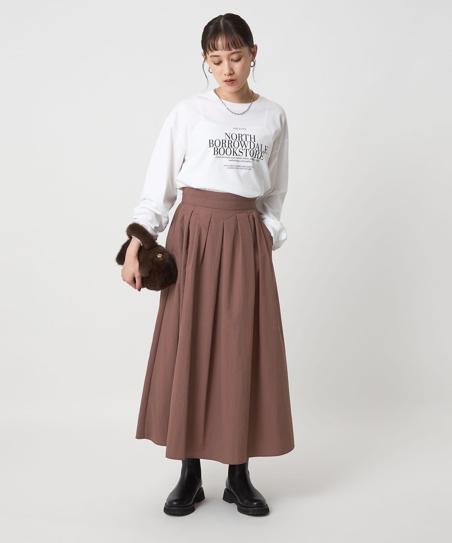 It pairs well with a variety of tops, including logo T-shirts and high-gauge knitwear.