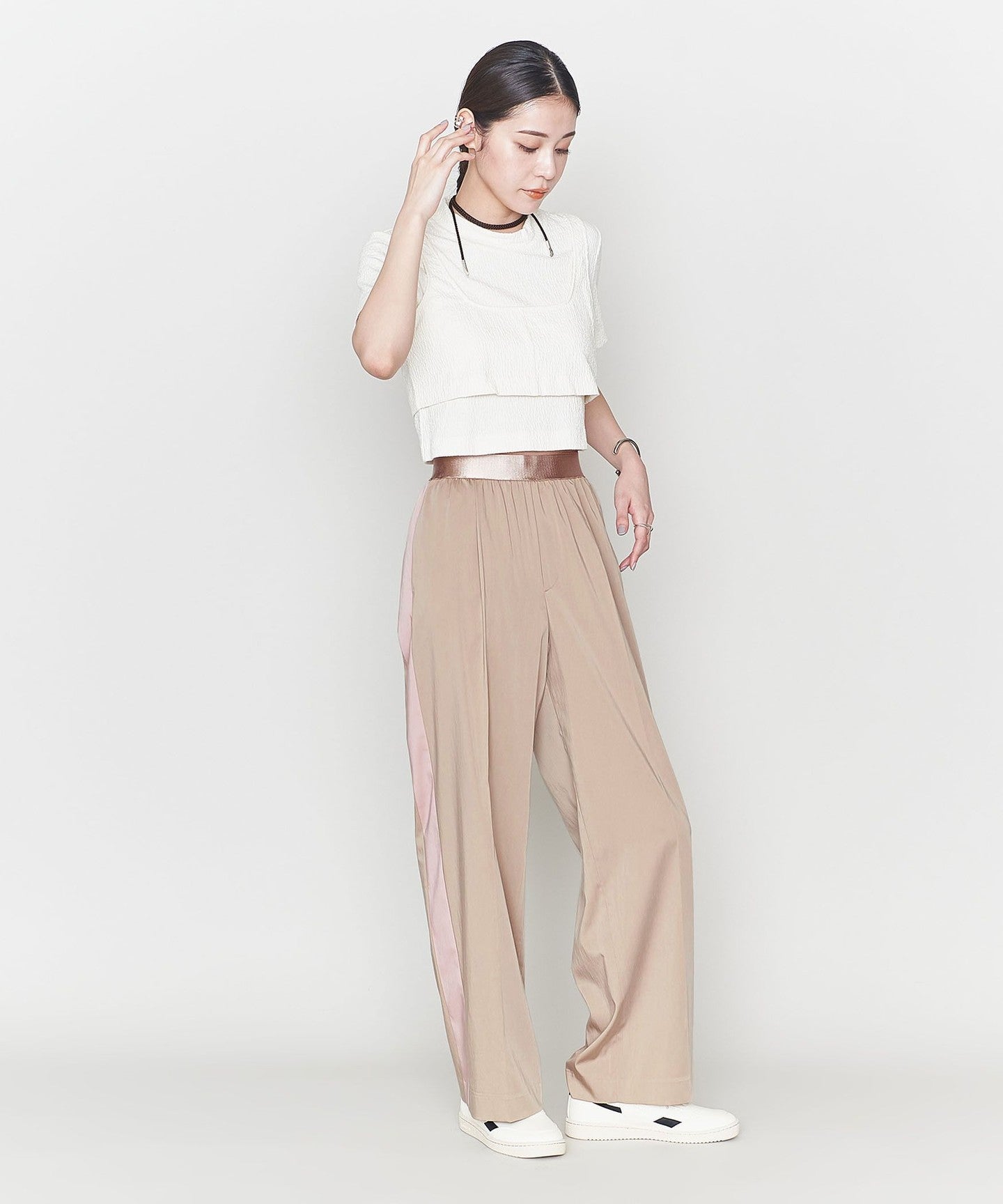 <ASTRAET>CU/N Satin Short Sleeve Wide PANTS