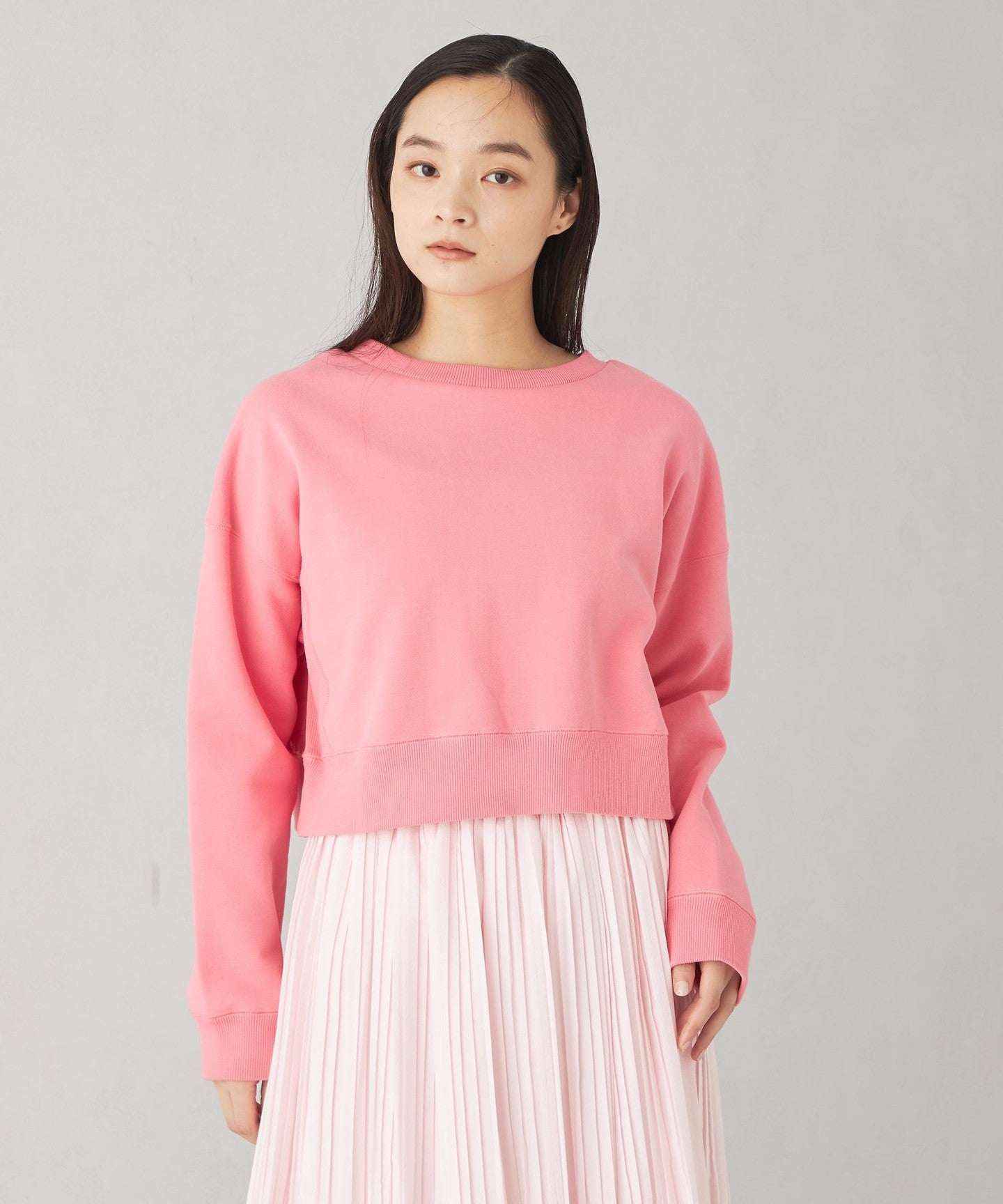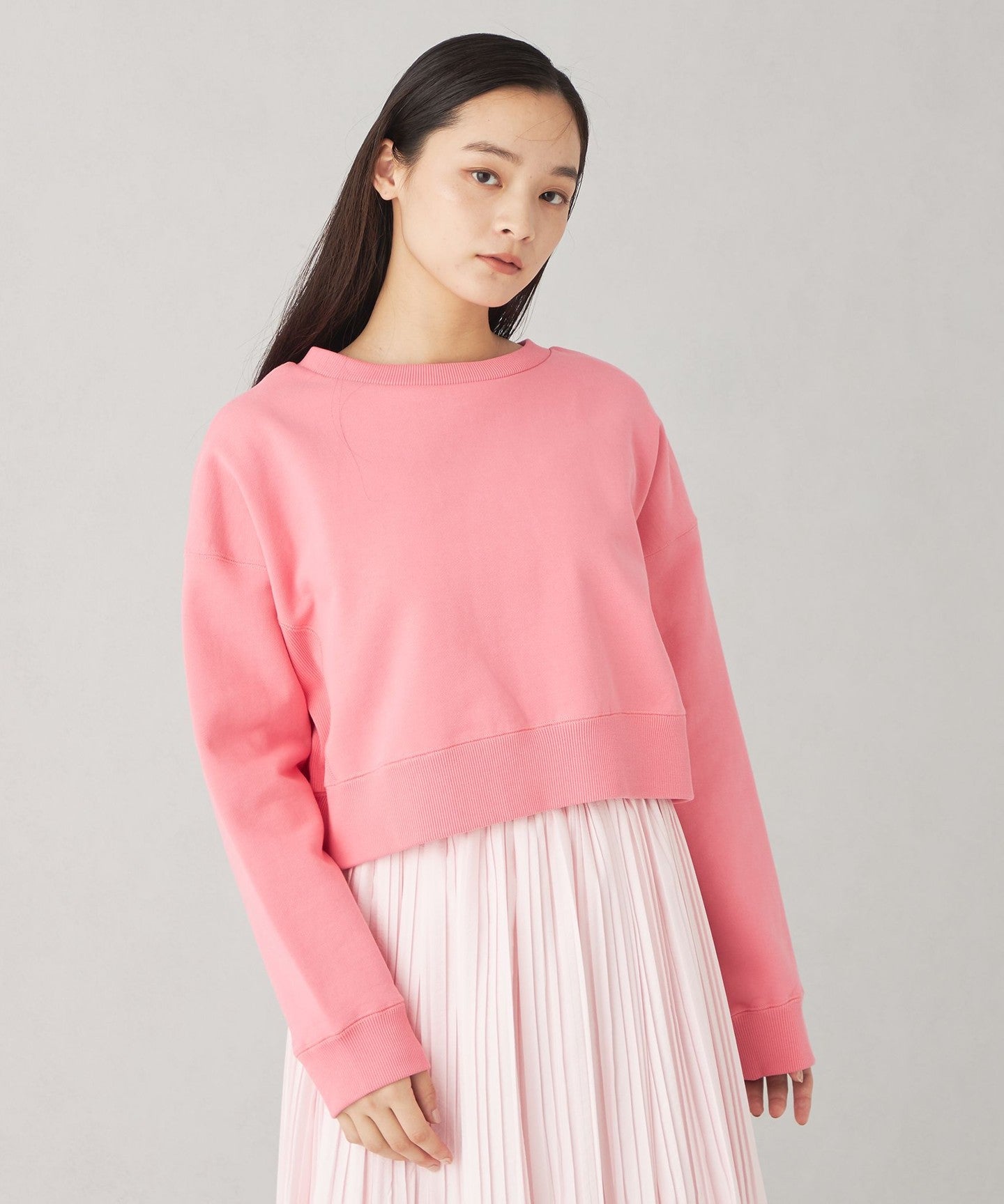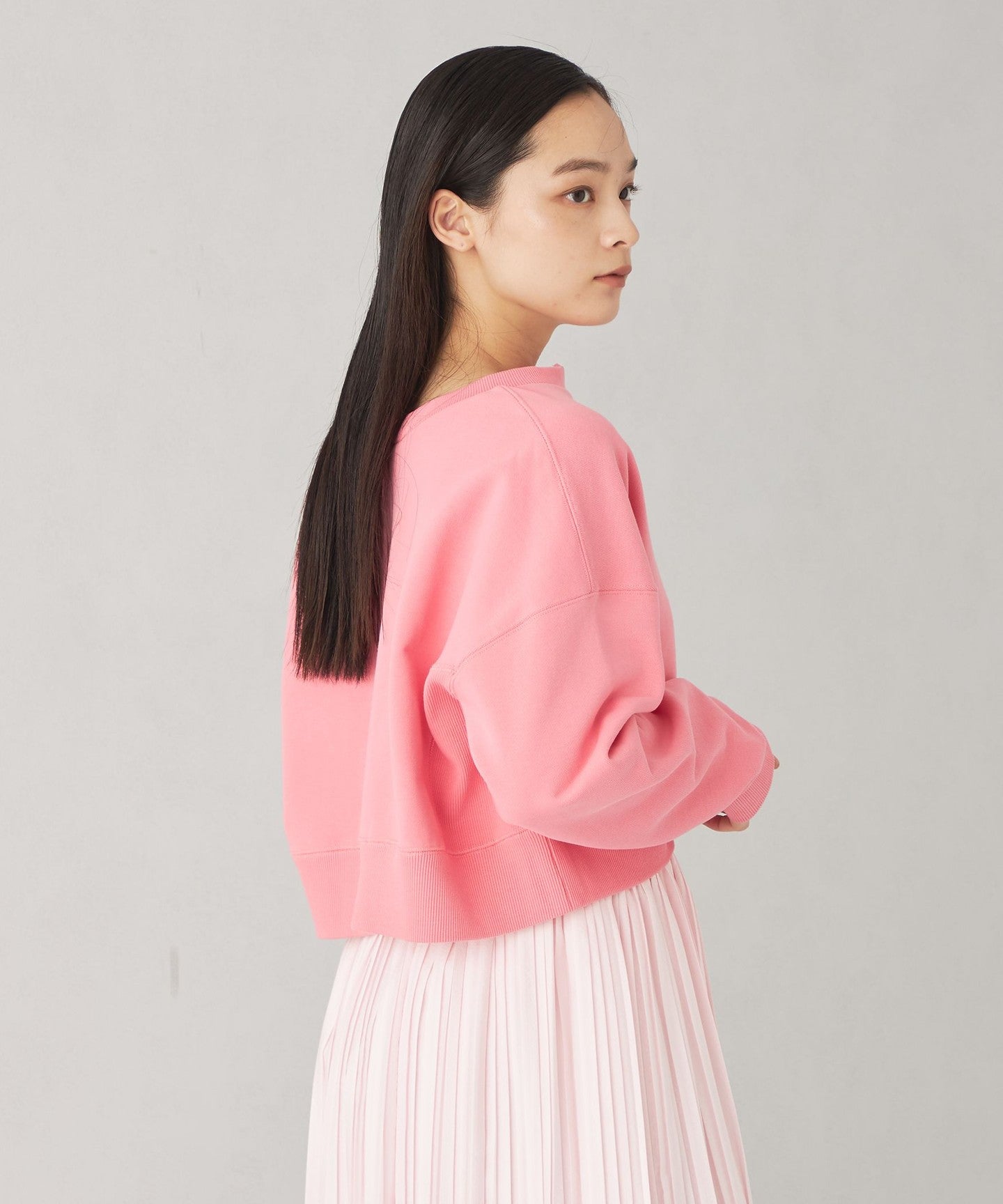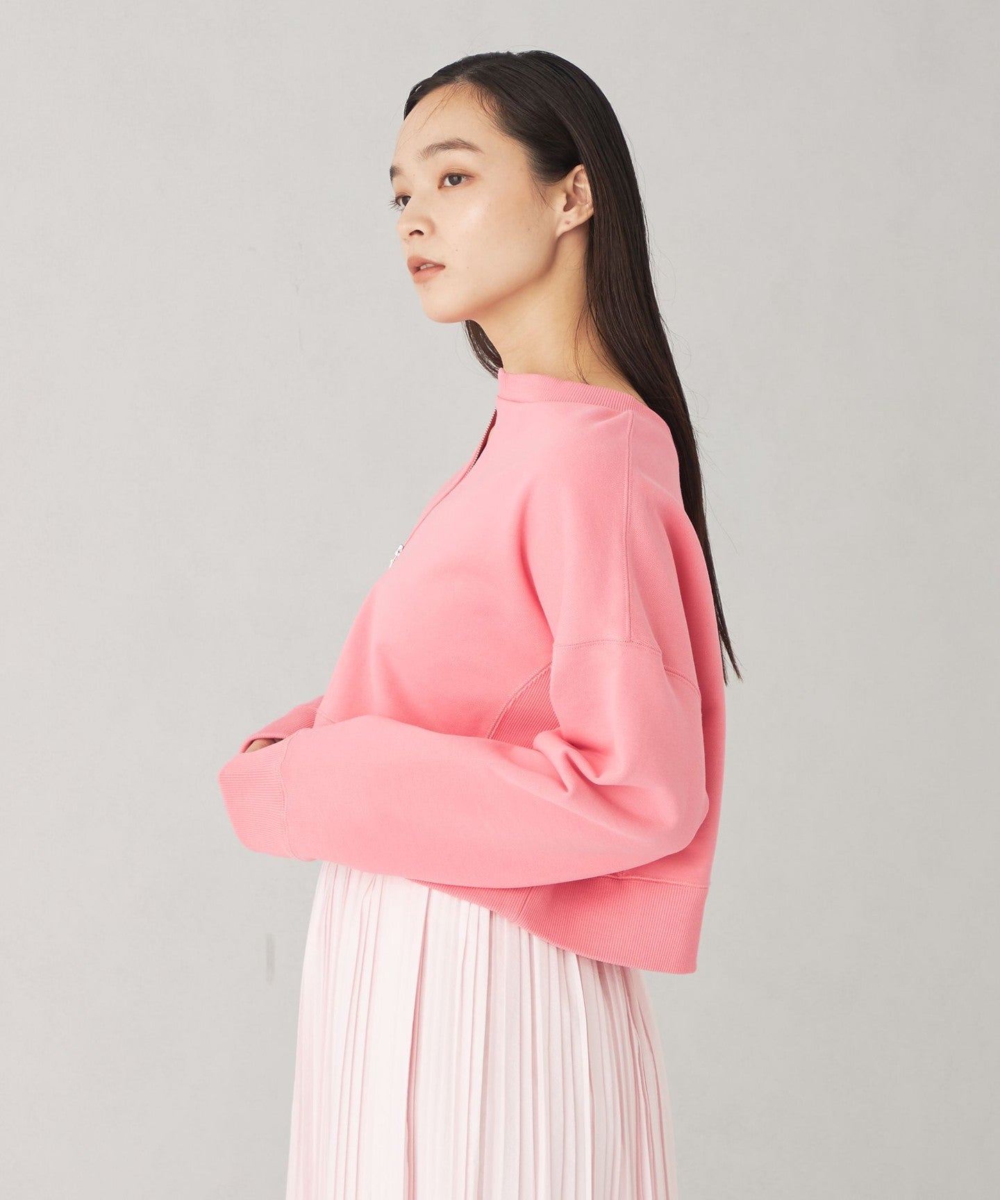 A cute two-way sweatshirt with a short length and wide silhouette.