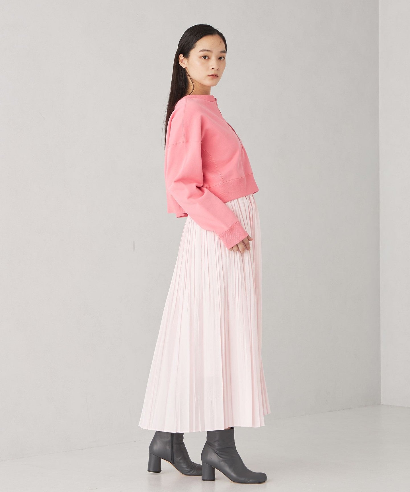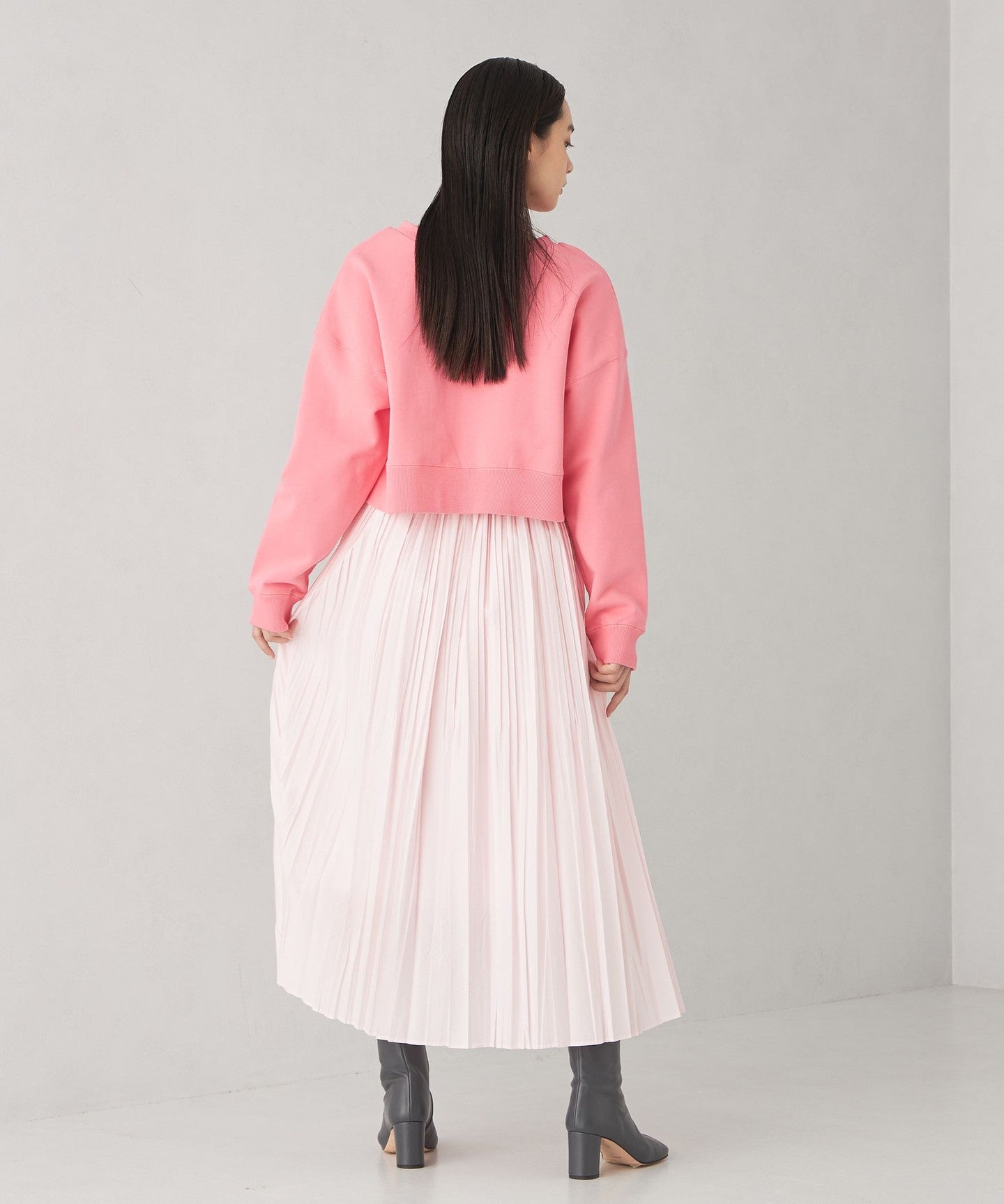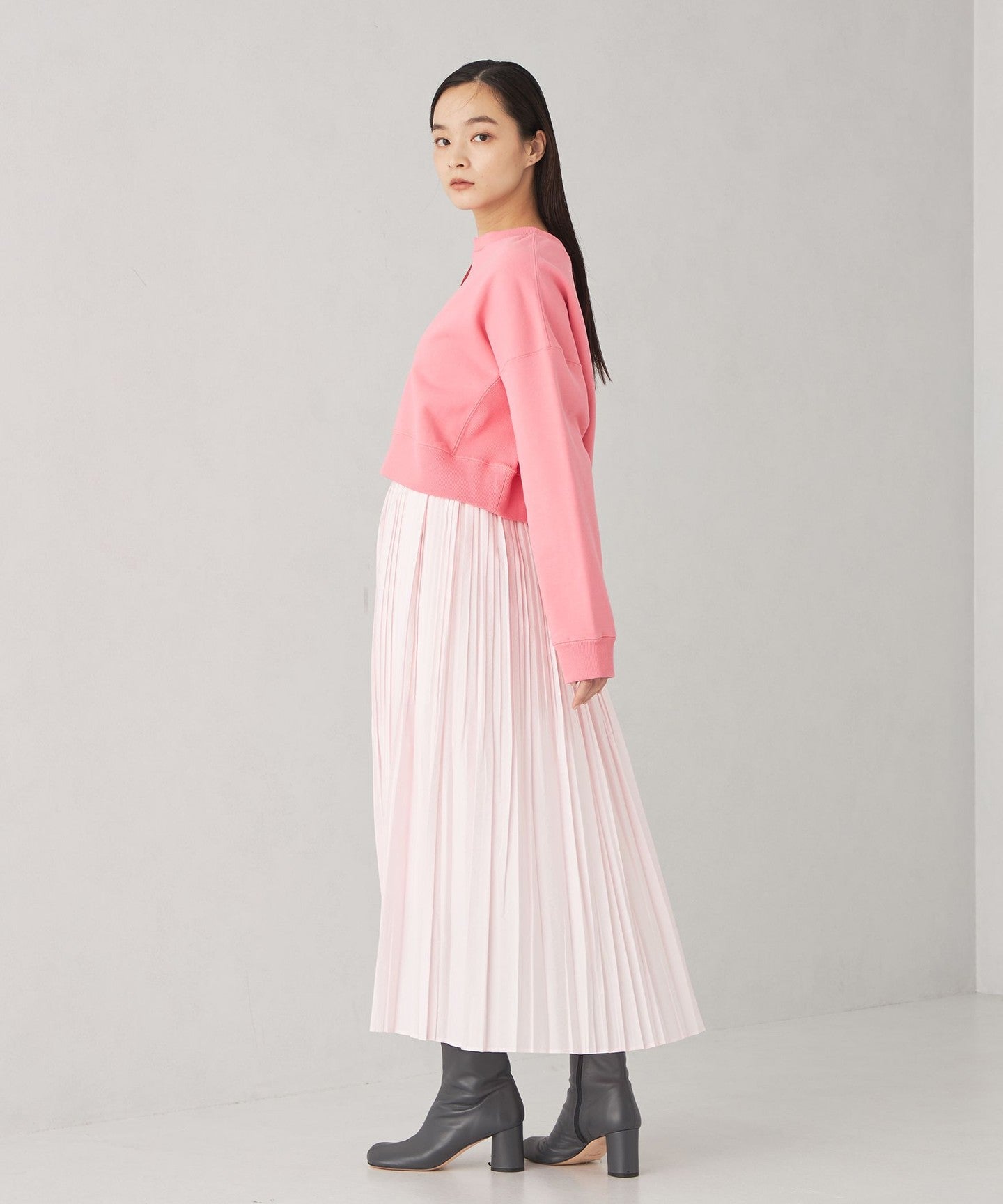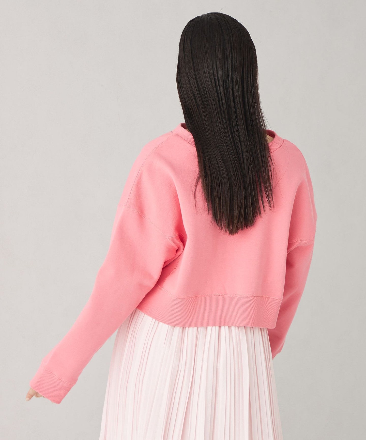 A cute two-way sweatshirt with a short length and wide silhouette.