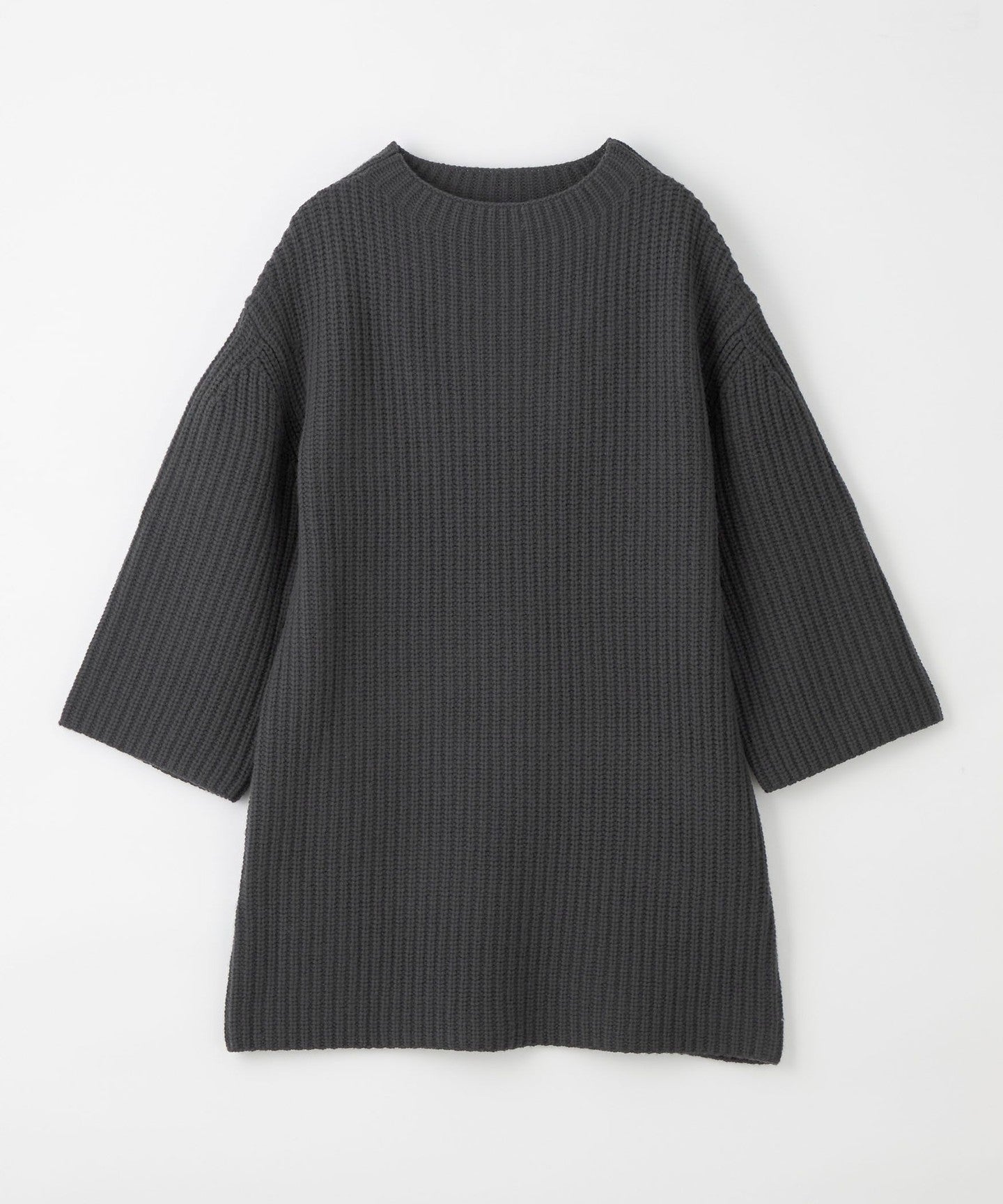 The soft texture of the yarn gives it a feminine feel, SLEEVE OPENING The lack of ribbing gives it a clean look that accentuates the boxy silhouette.