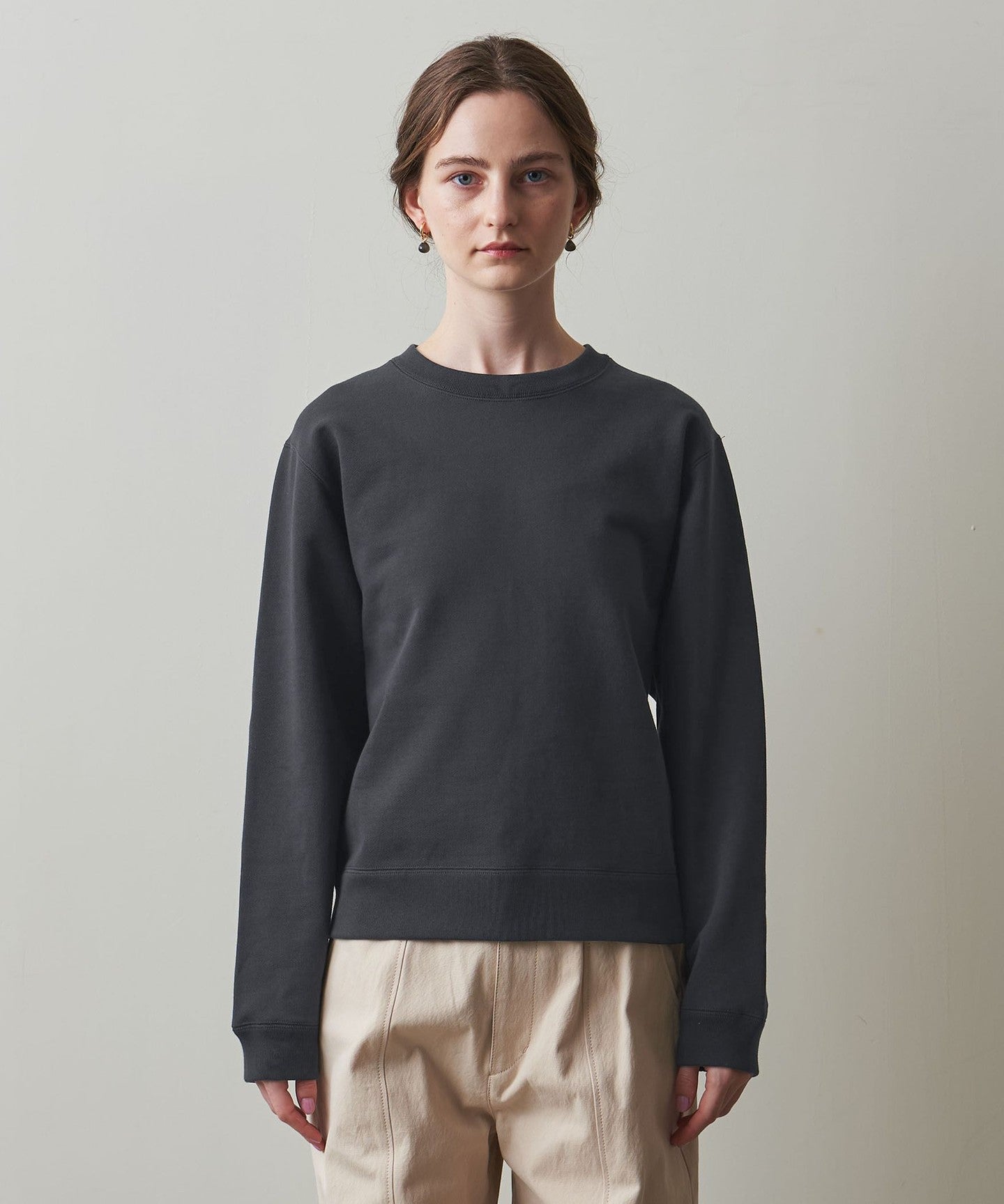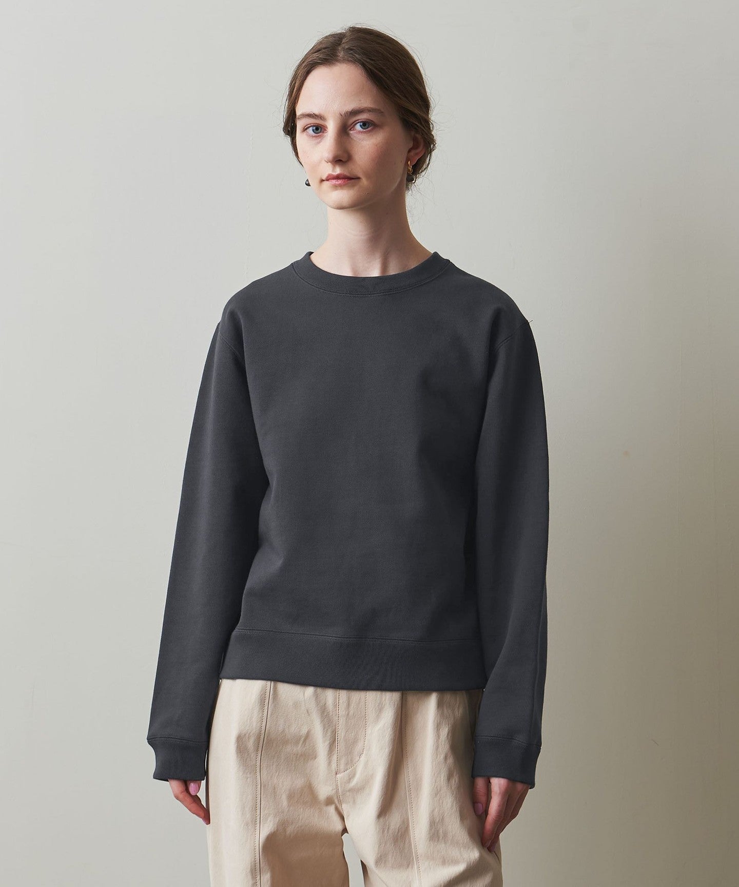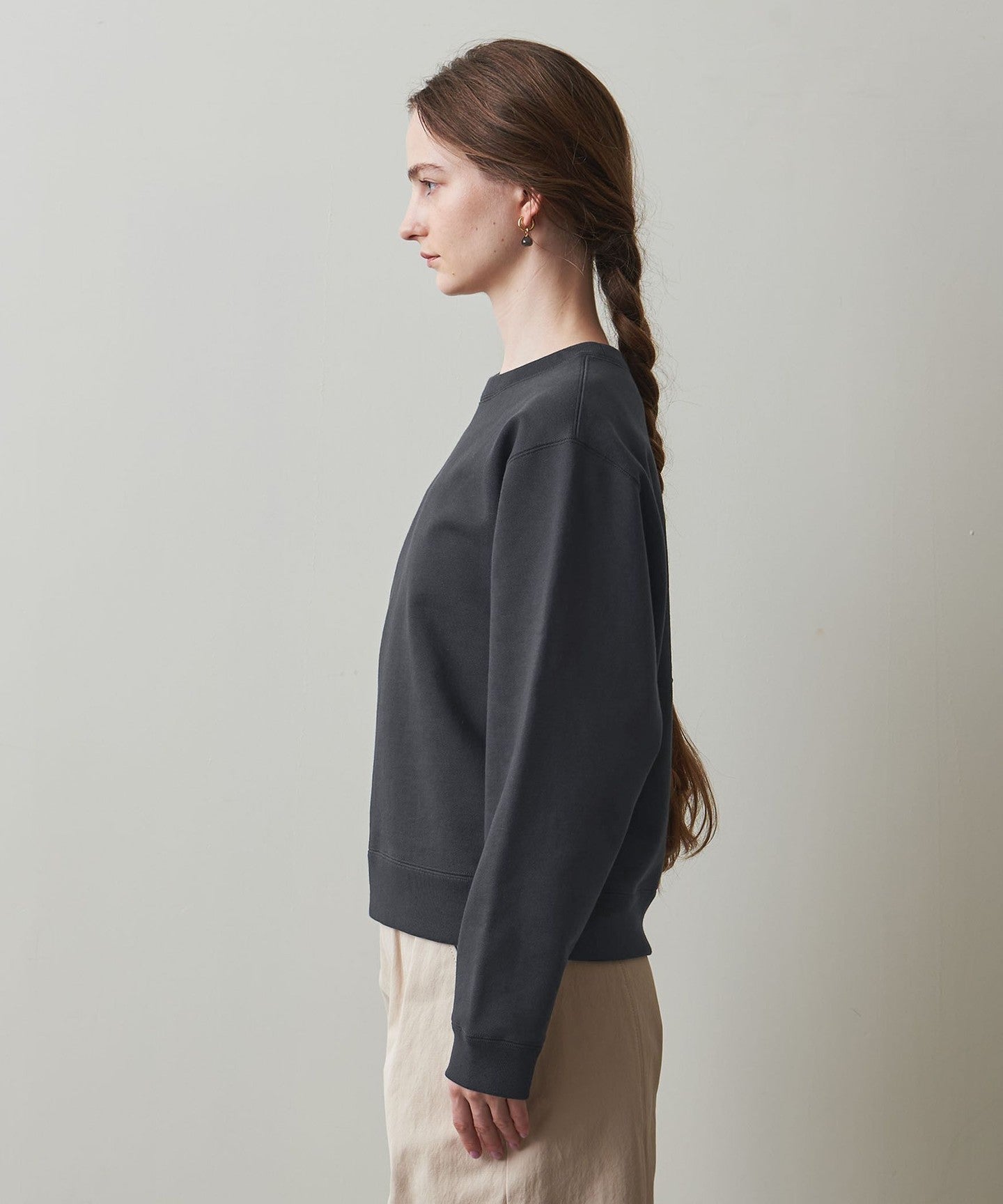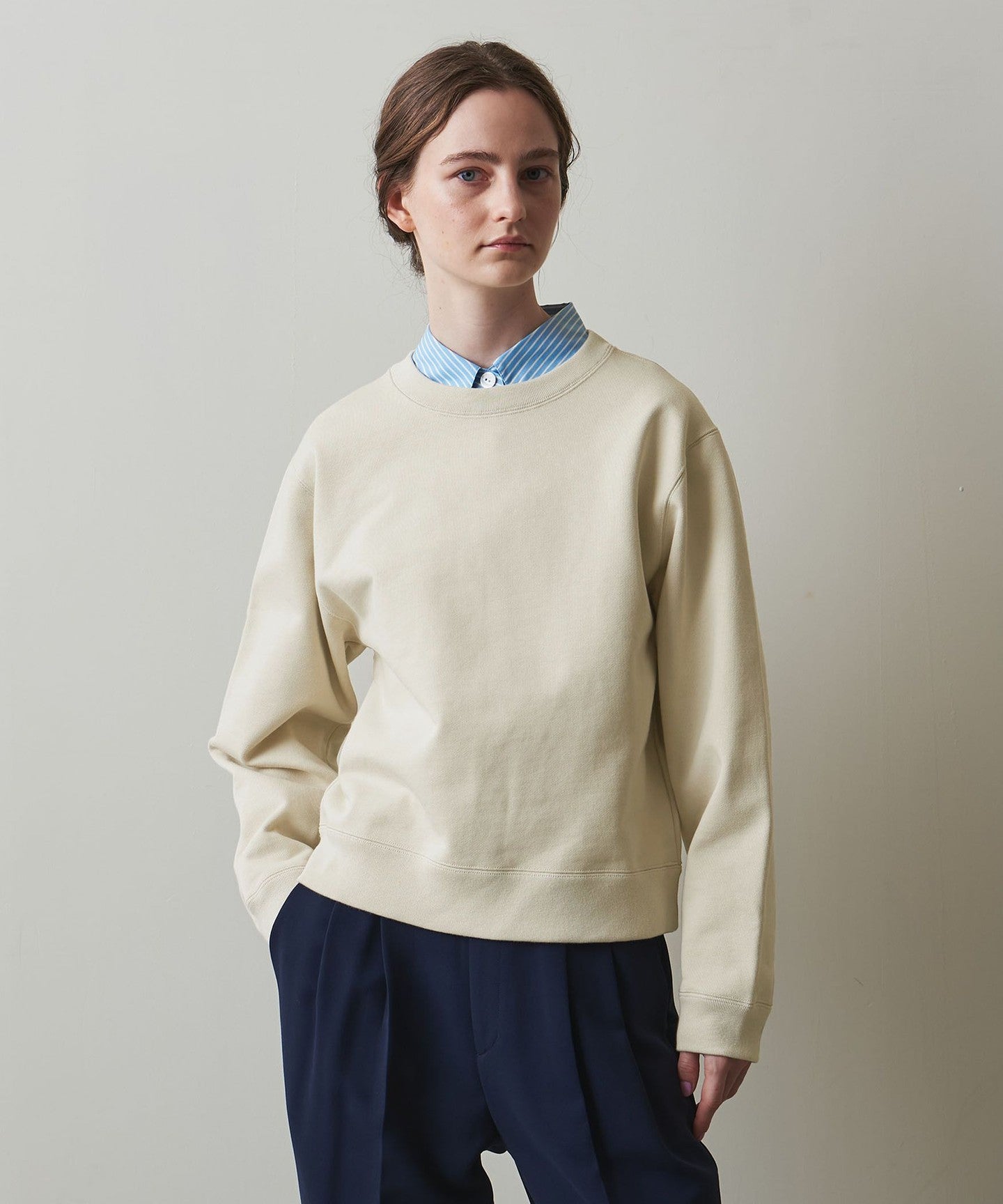 The slightly loose silhouette around the neck makes it easy to wear with a cut-and-sew or shirt underneath, making it versatile for both wearing alone or layering.