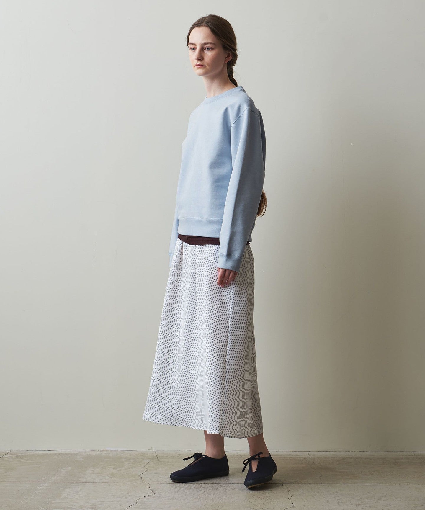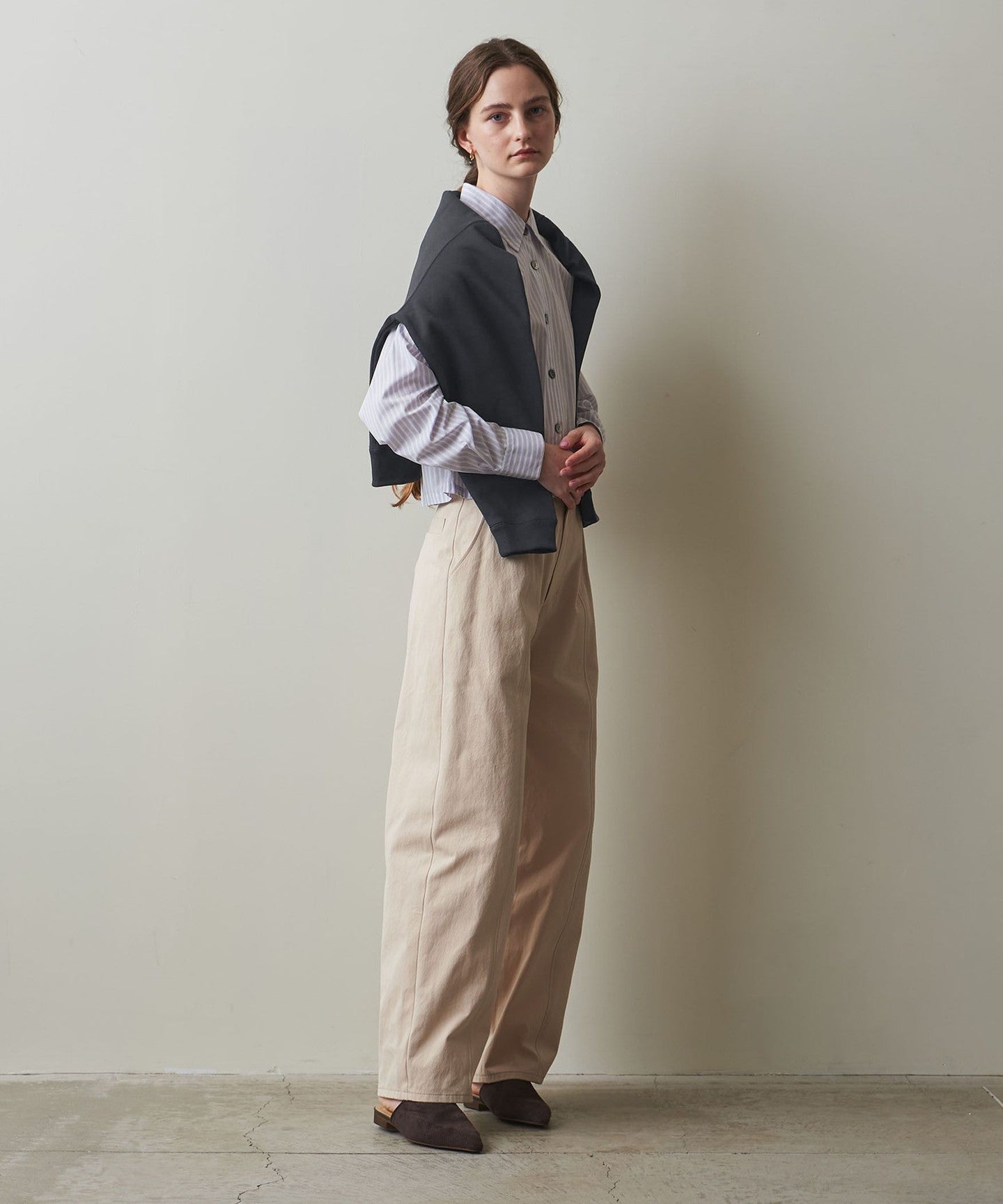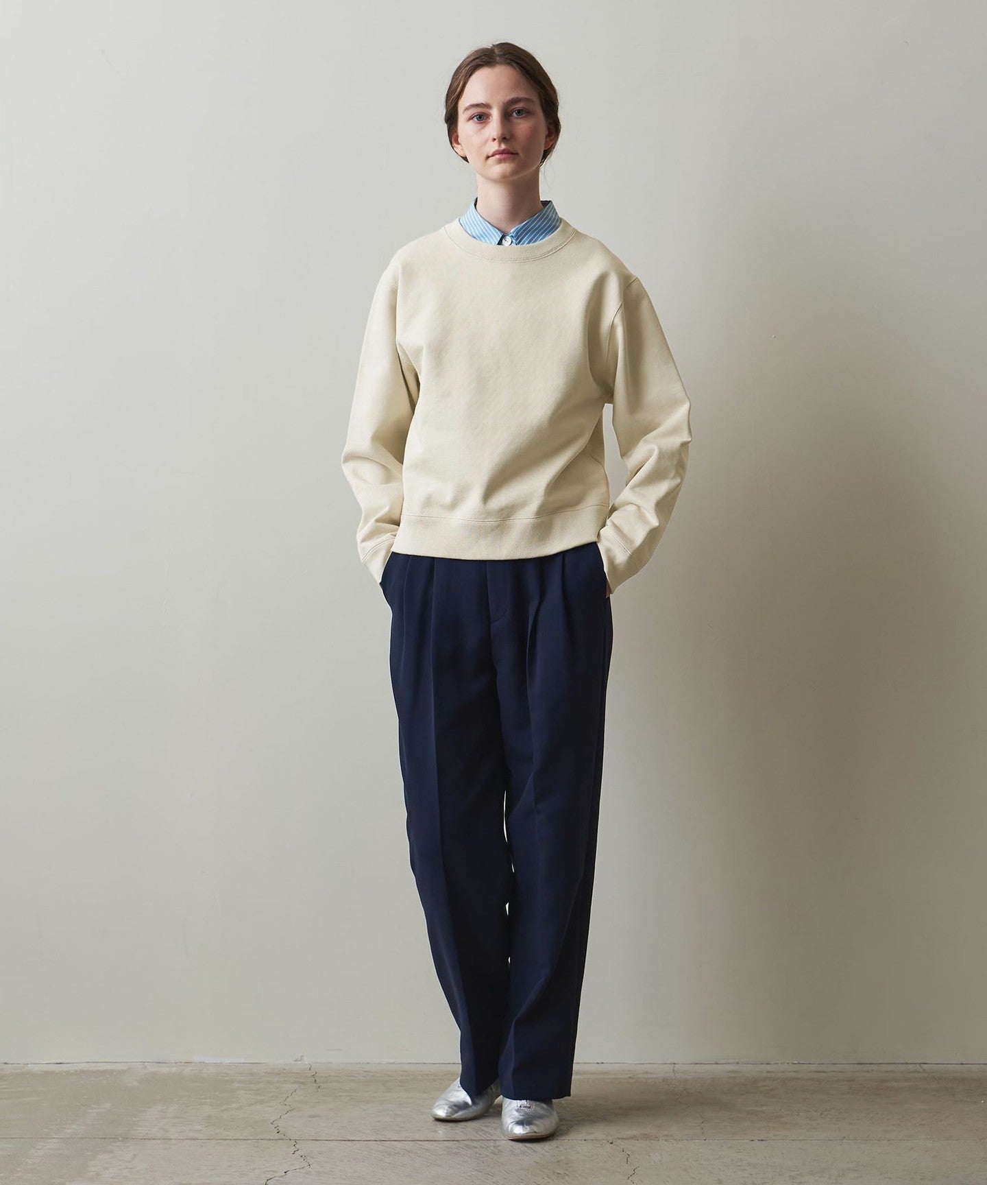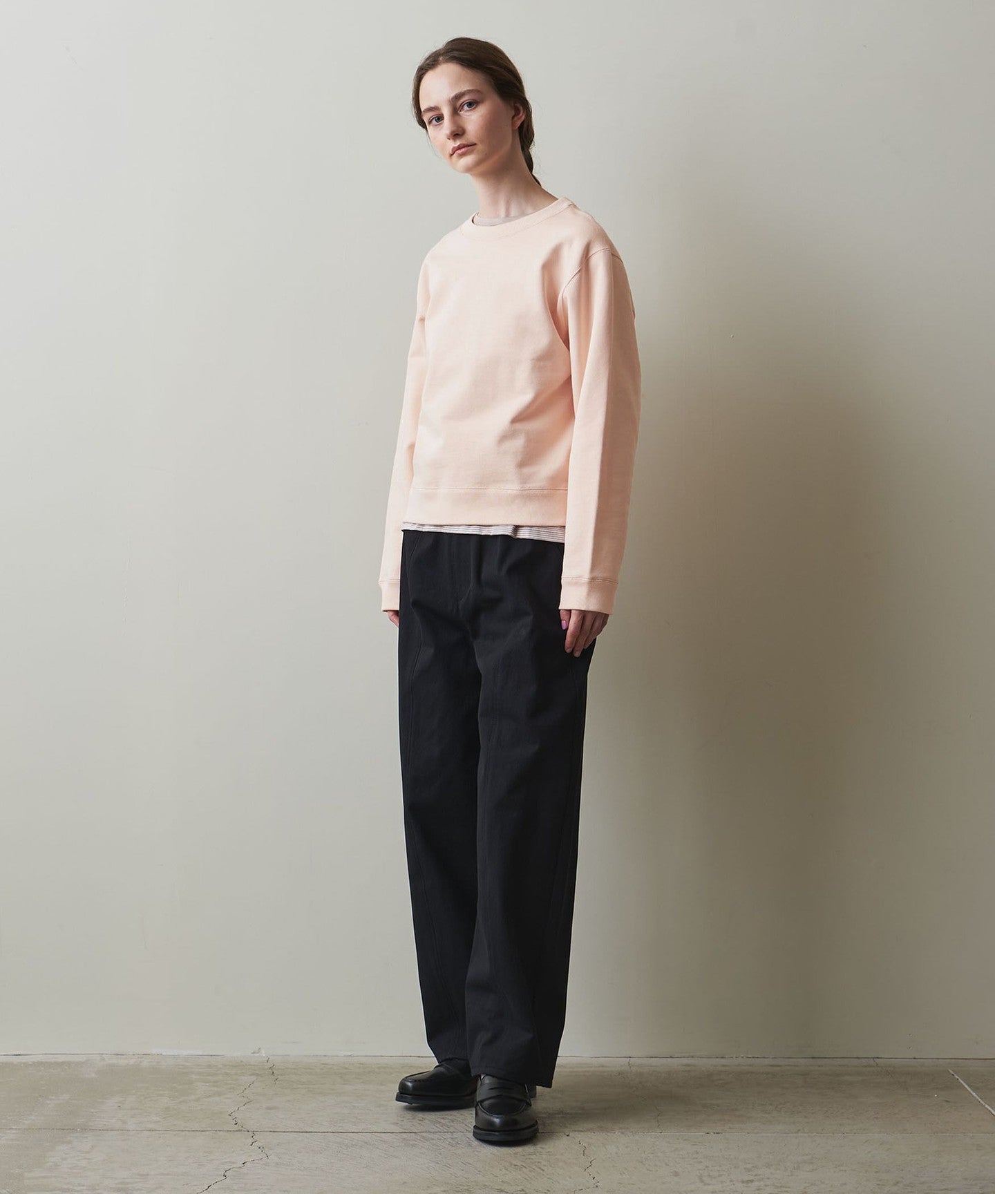 The slightly loose silhouette around the neck makes it easy to wear with a cut-and-sew or shirt underneath, making it versatile for both wearing alone or layering.