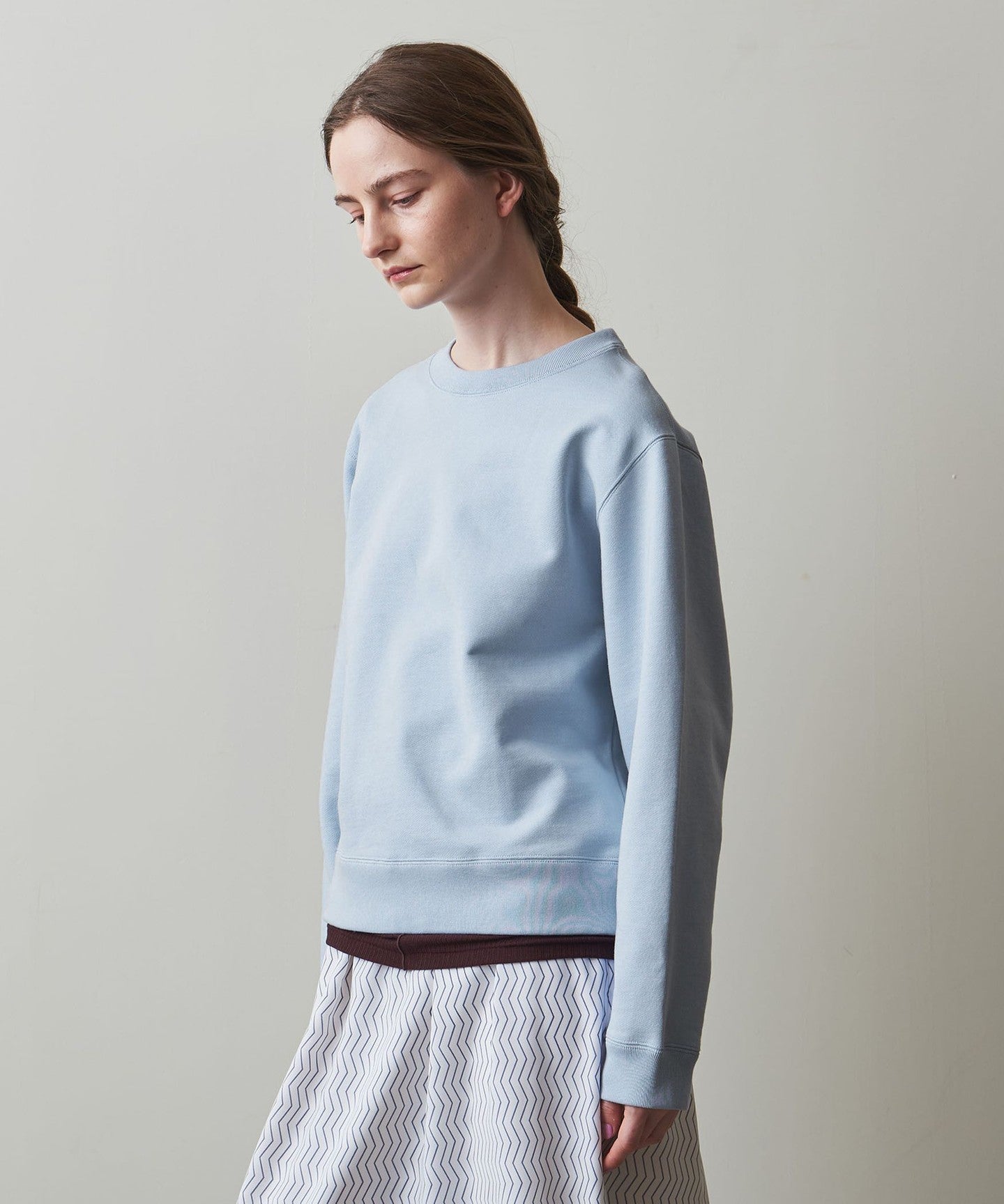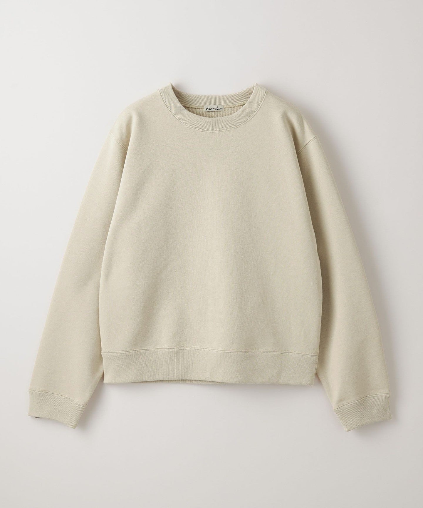 A sweatshirt with a minimalist design and light colors.