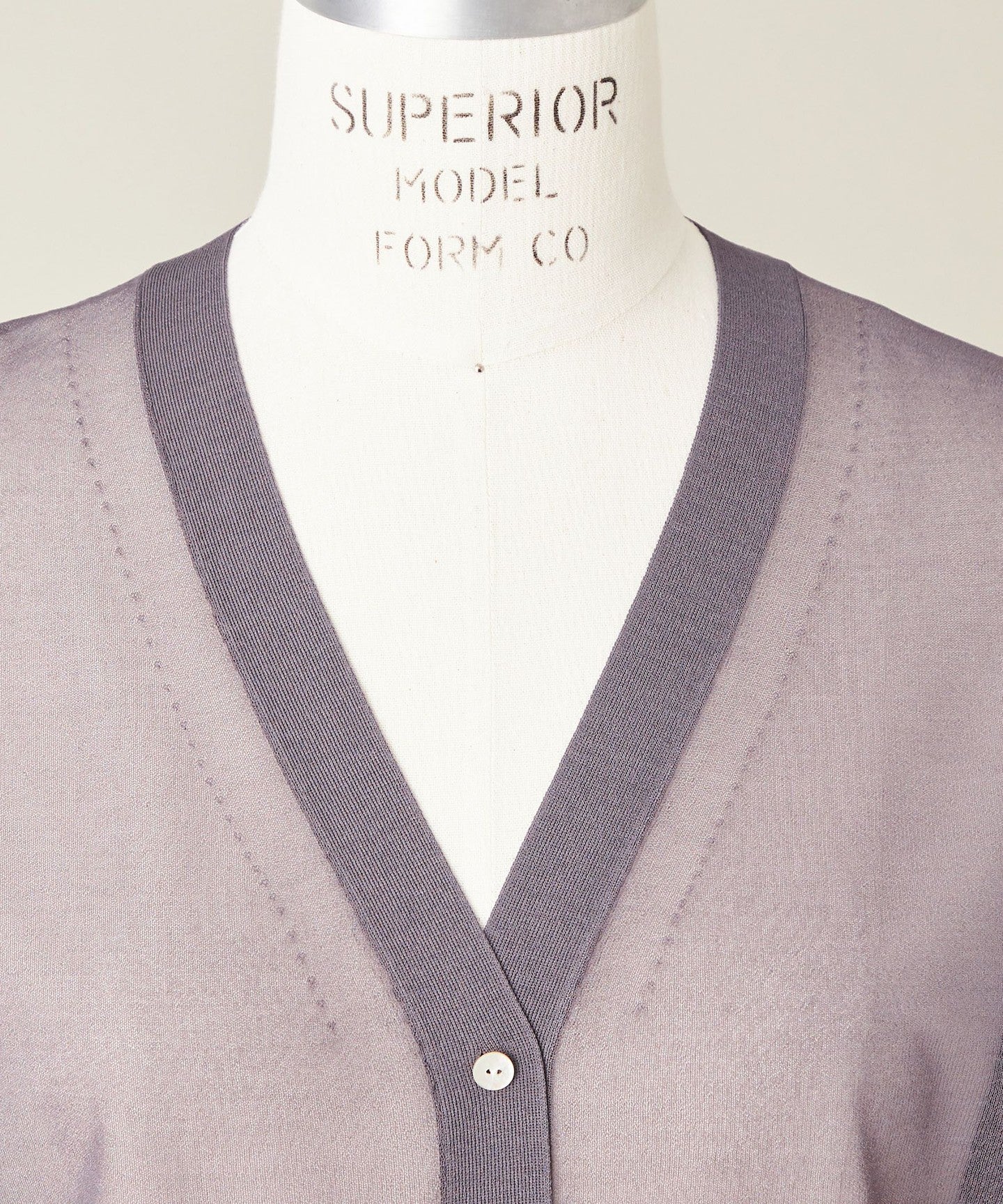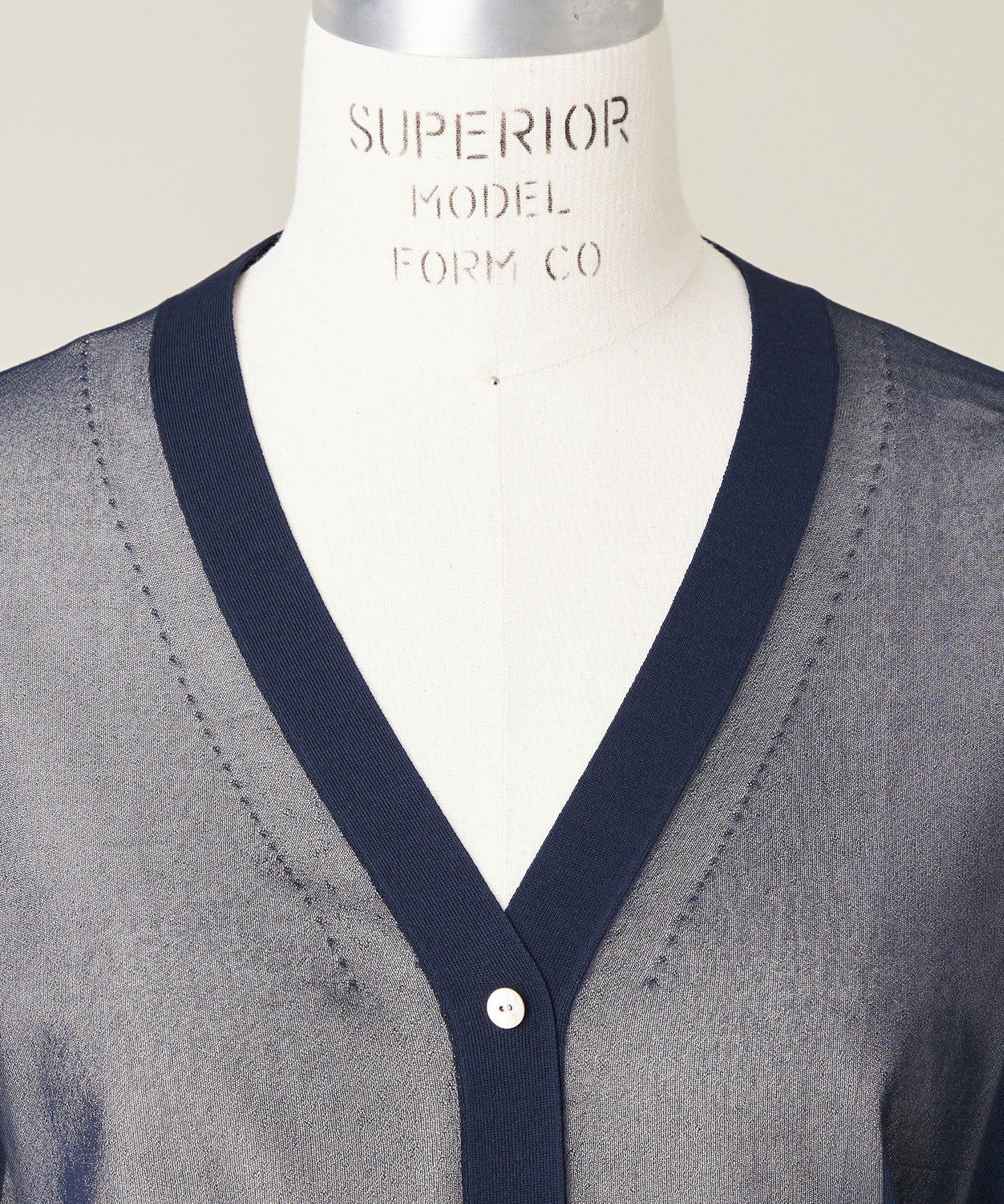 A V-neck cardigan with a simple design that highlights the sheer texture of the material.