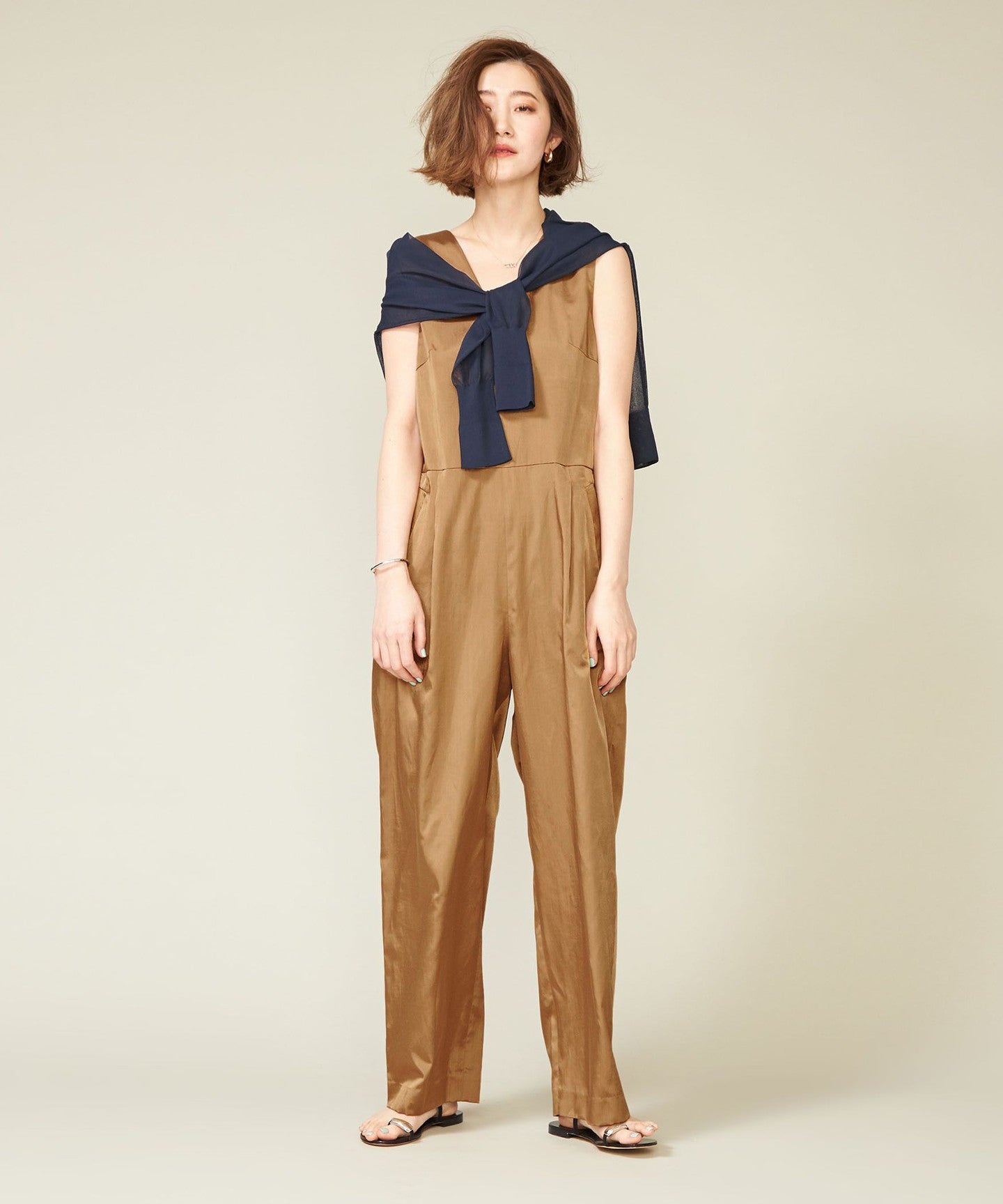 We recommend wearing a lightweight cardigan over the shoulders of a dress or jumpsuit.