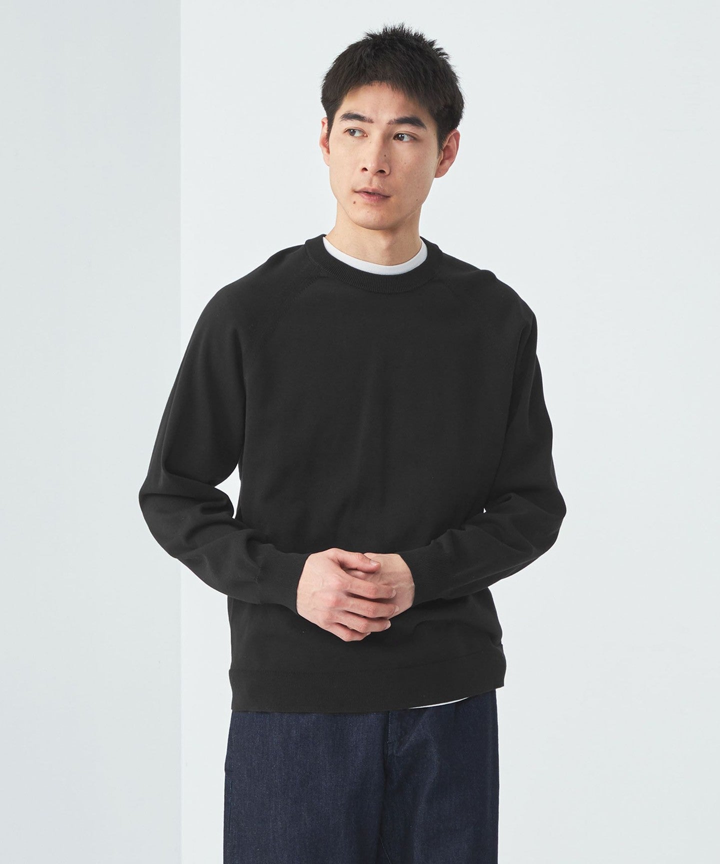 green label relaxingHeight Twist Cotton Raglan Crew Neck Knit