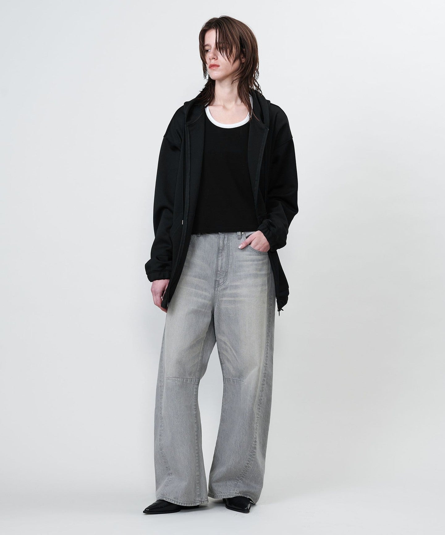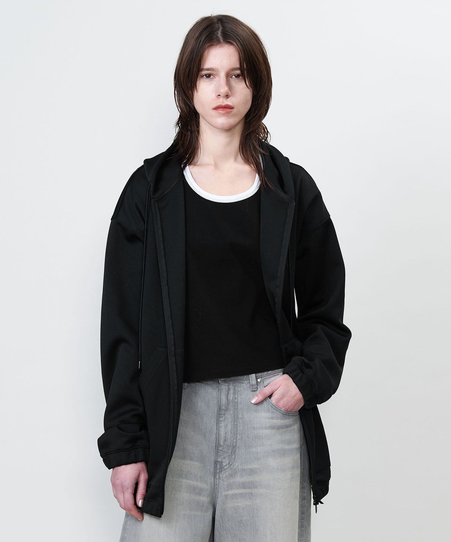 A full-zip hoodie with a relaxed silhouette and drop shoulders.