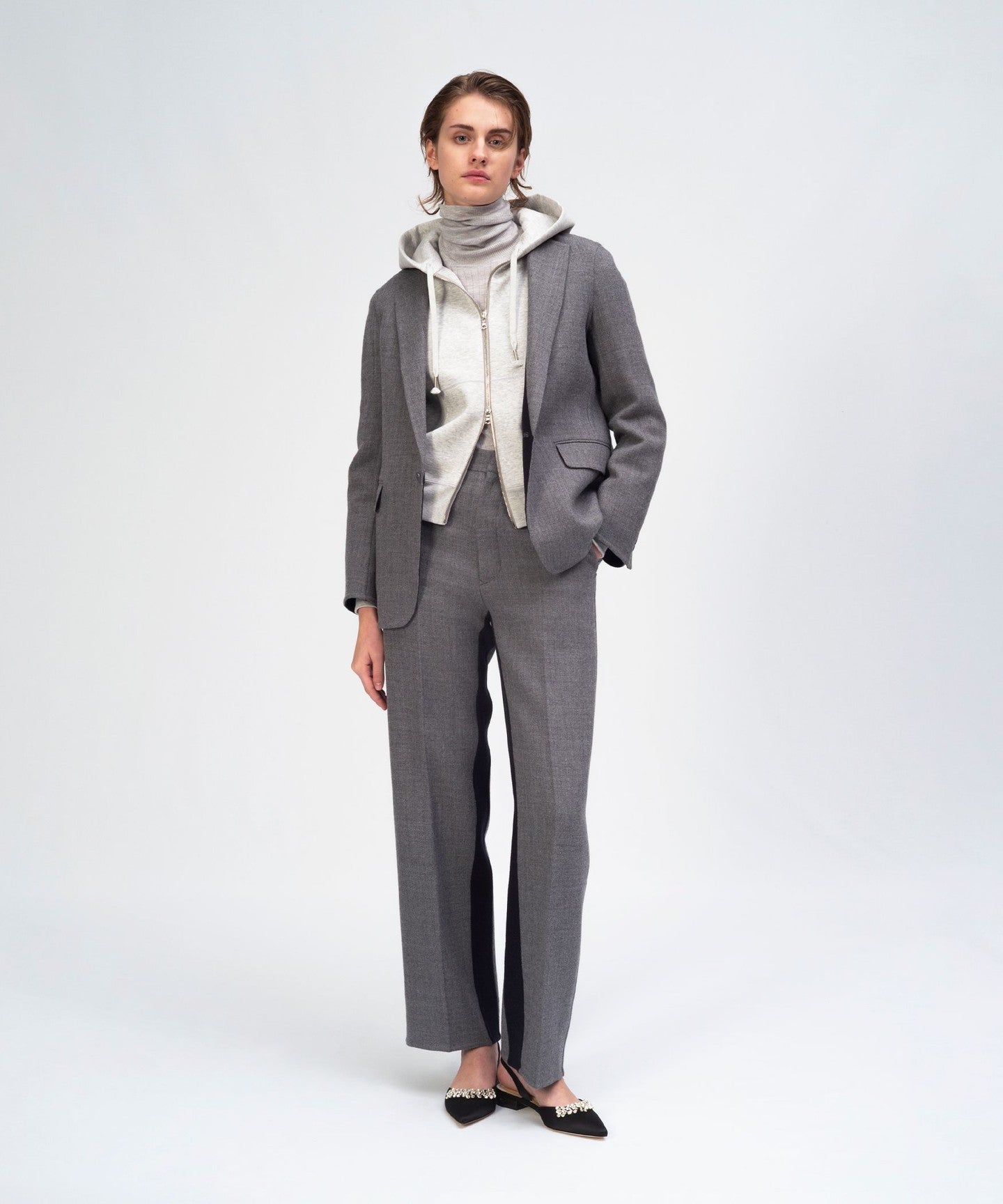 RESORT1 Wool Herringbone Stone Pants