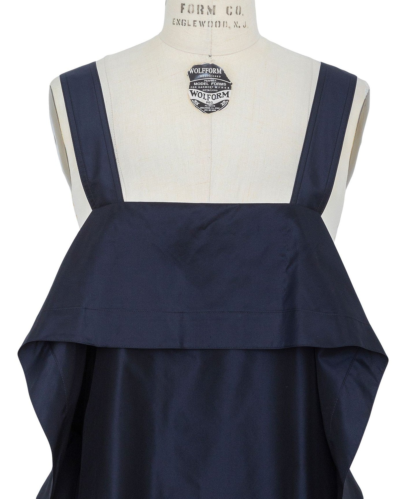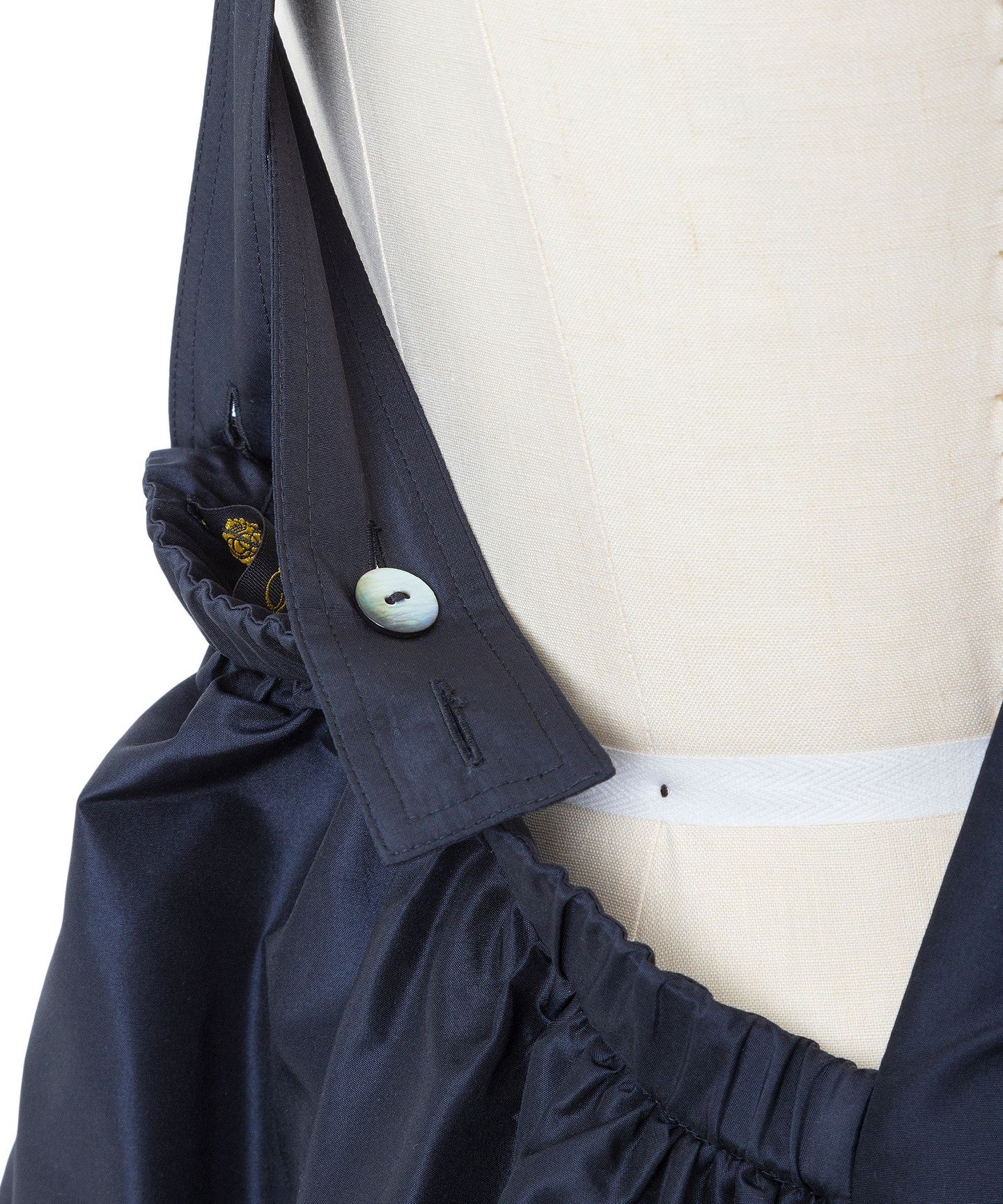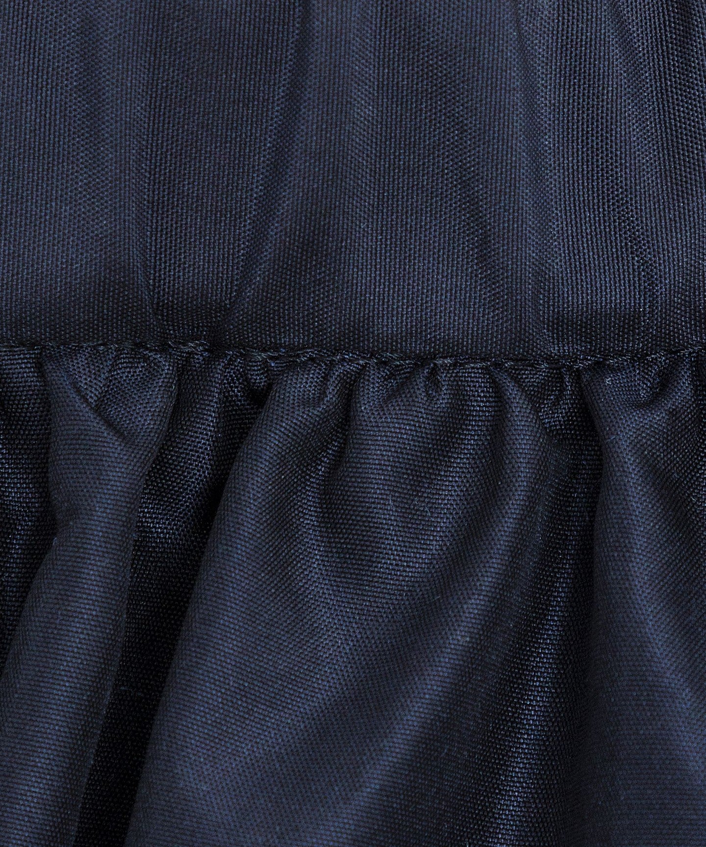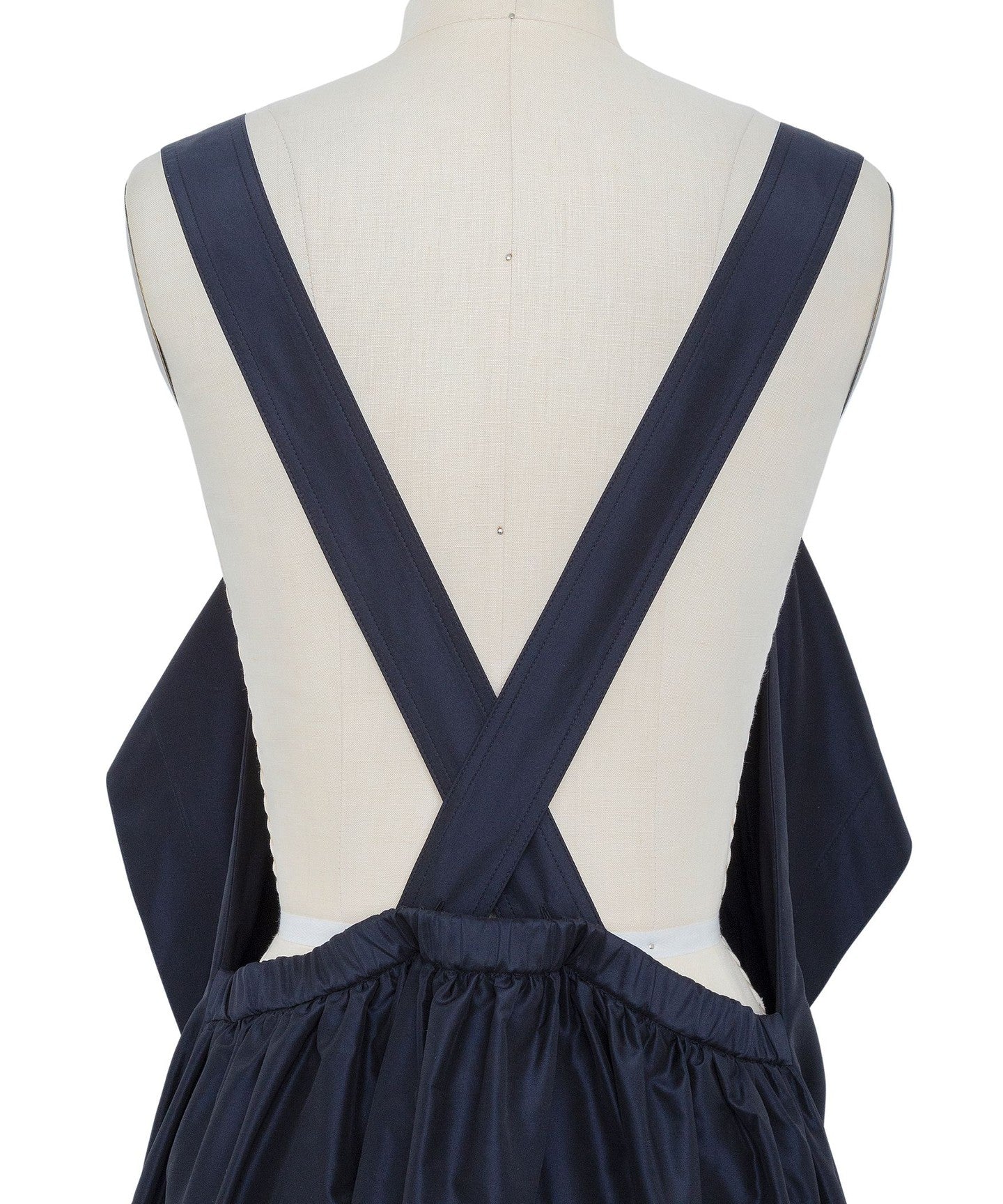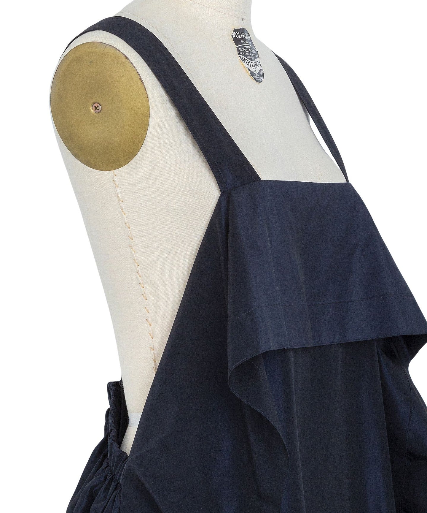 The back of the waist is gathered with elastic, and the straps can be adjusted in length with buttons.