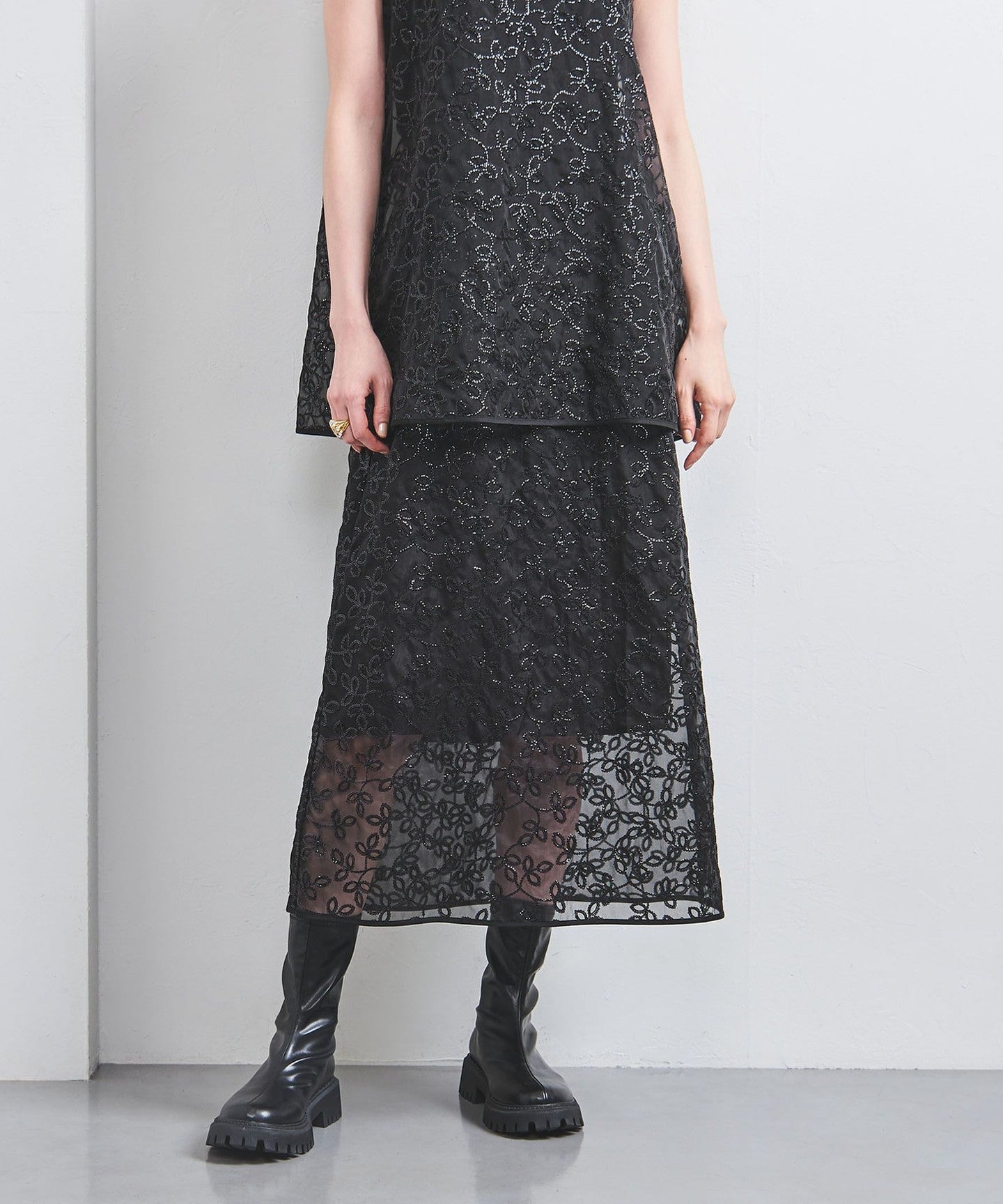 A sheer skirt layered over denim or black pants also looks great.