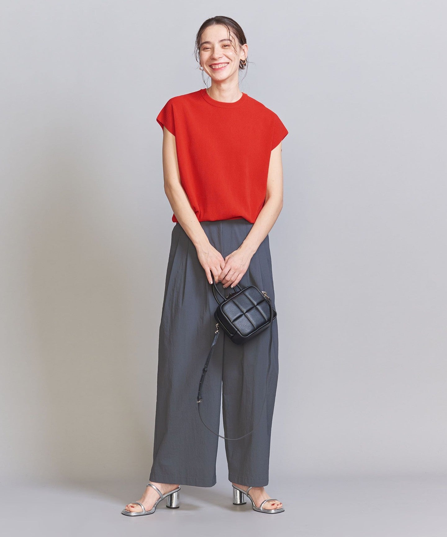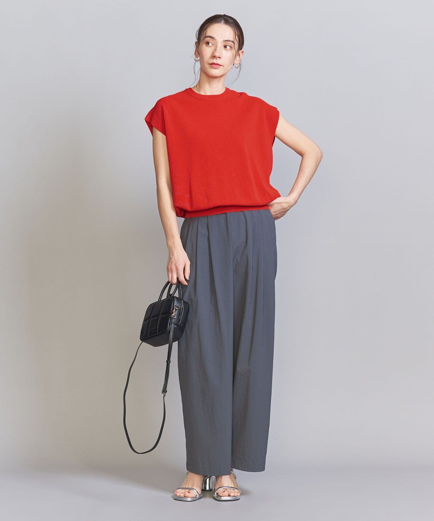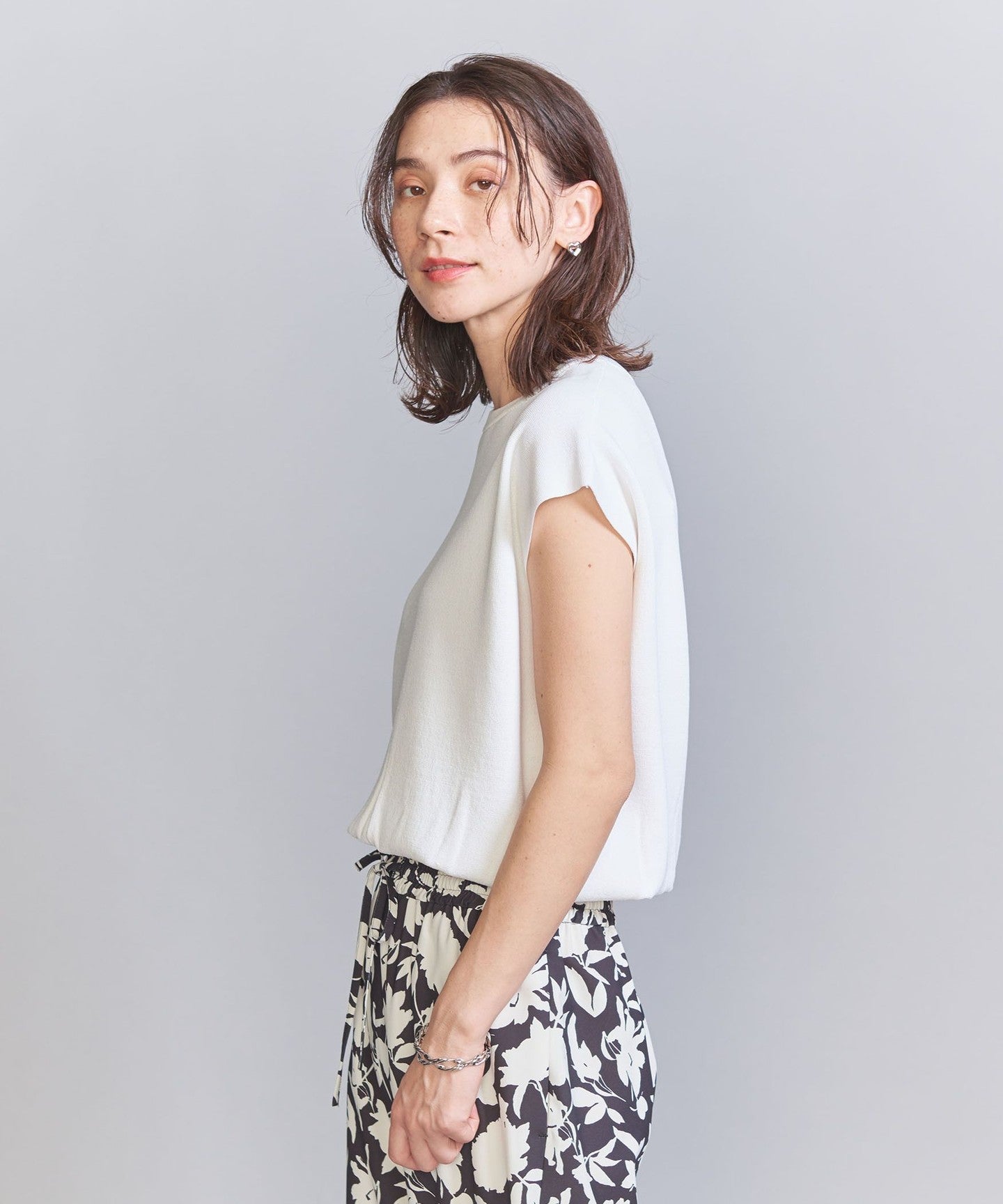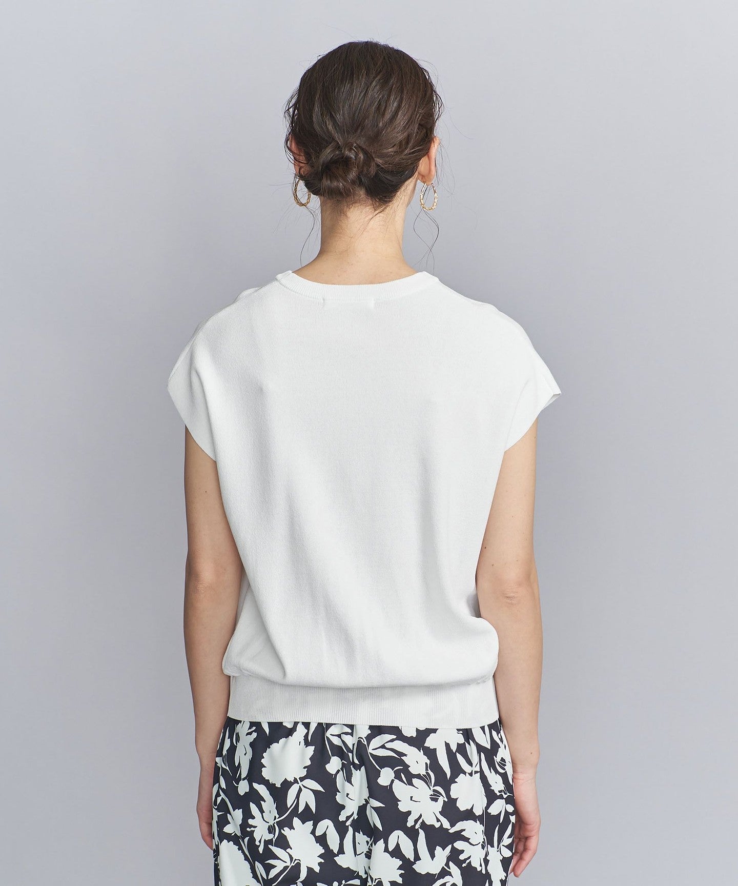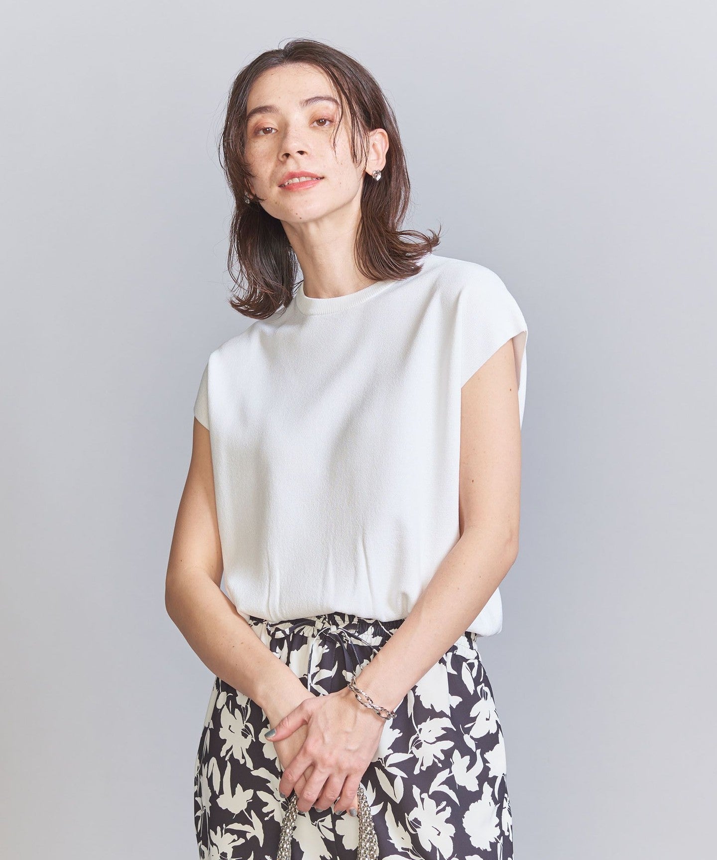 It goes well with a wide range of items, from voluminous pants to patterned bottoms and neat I-line skirts.