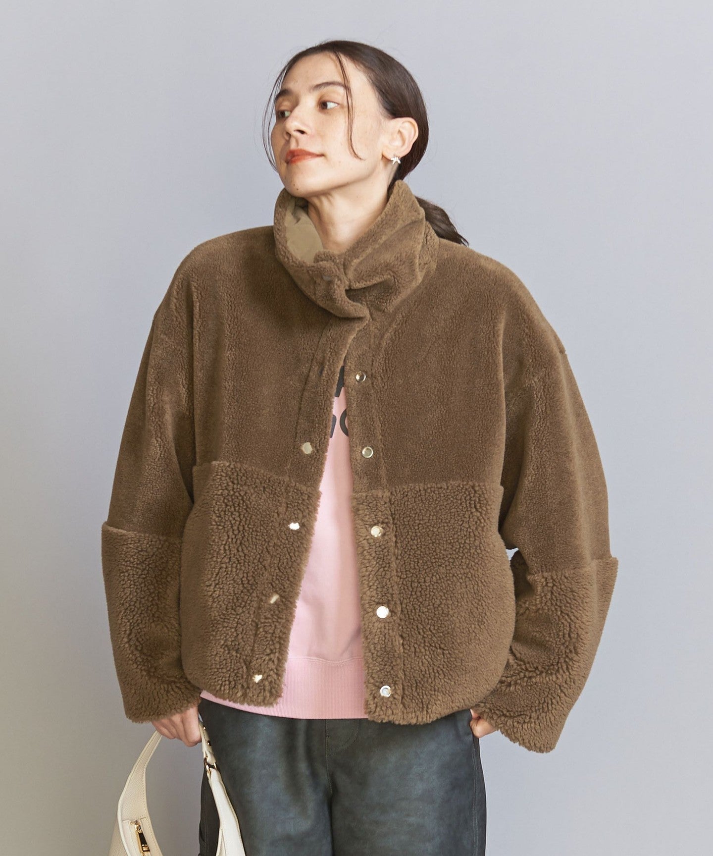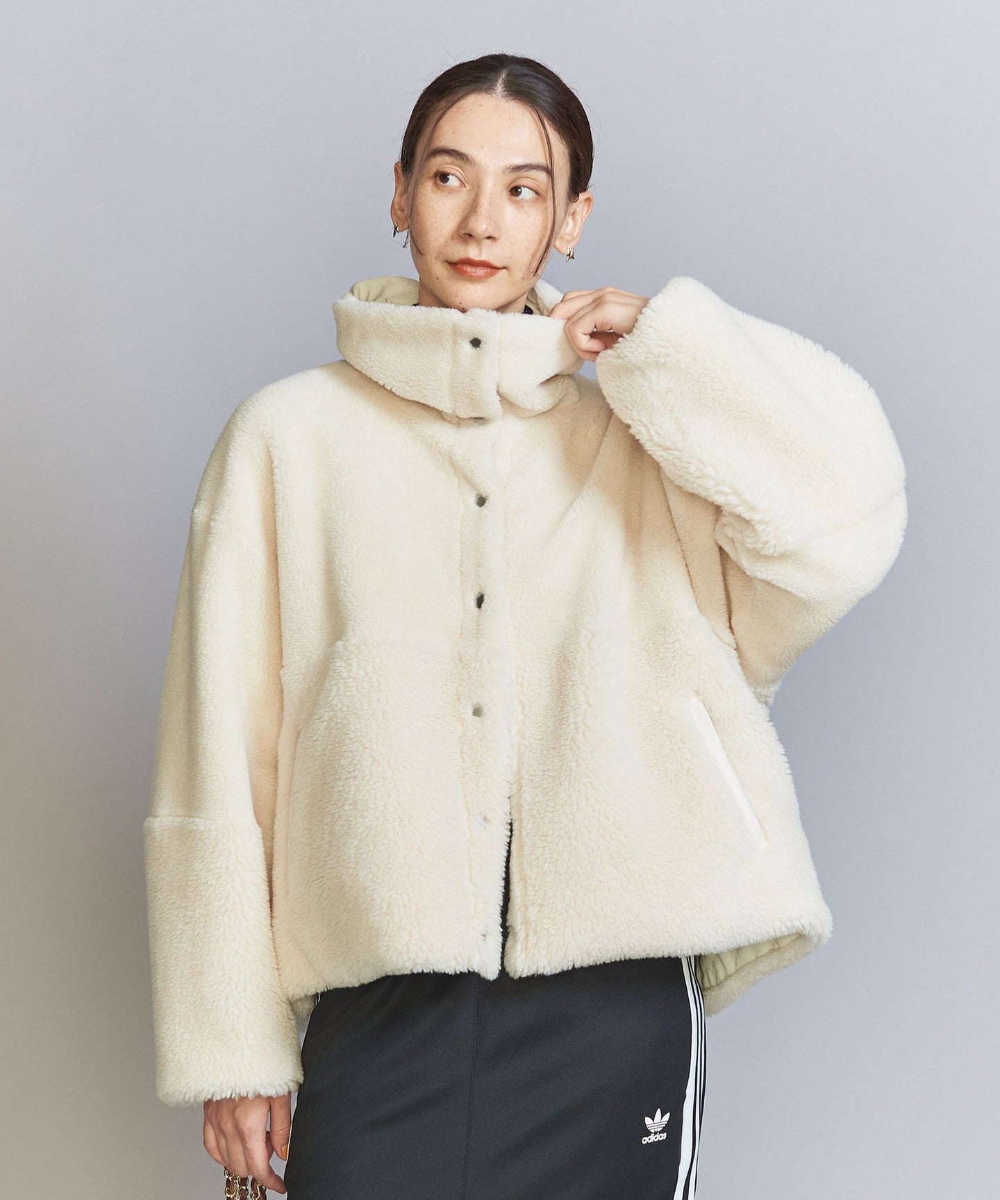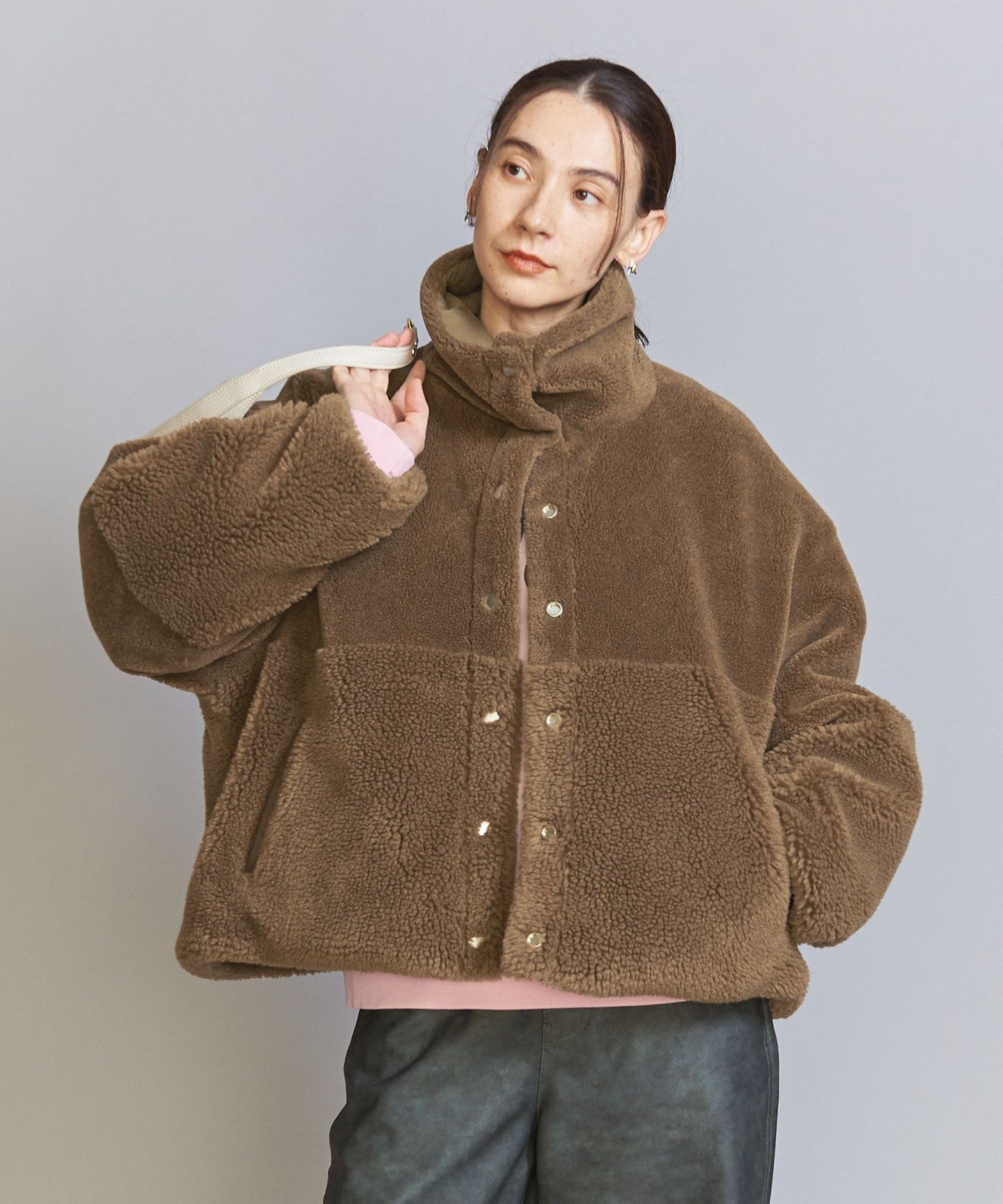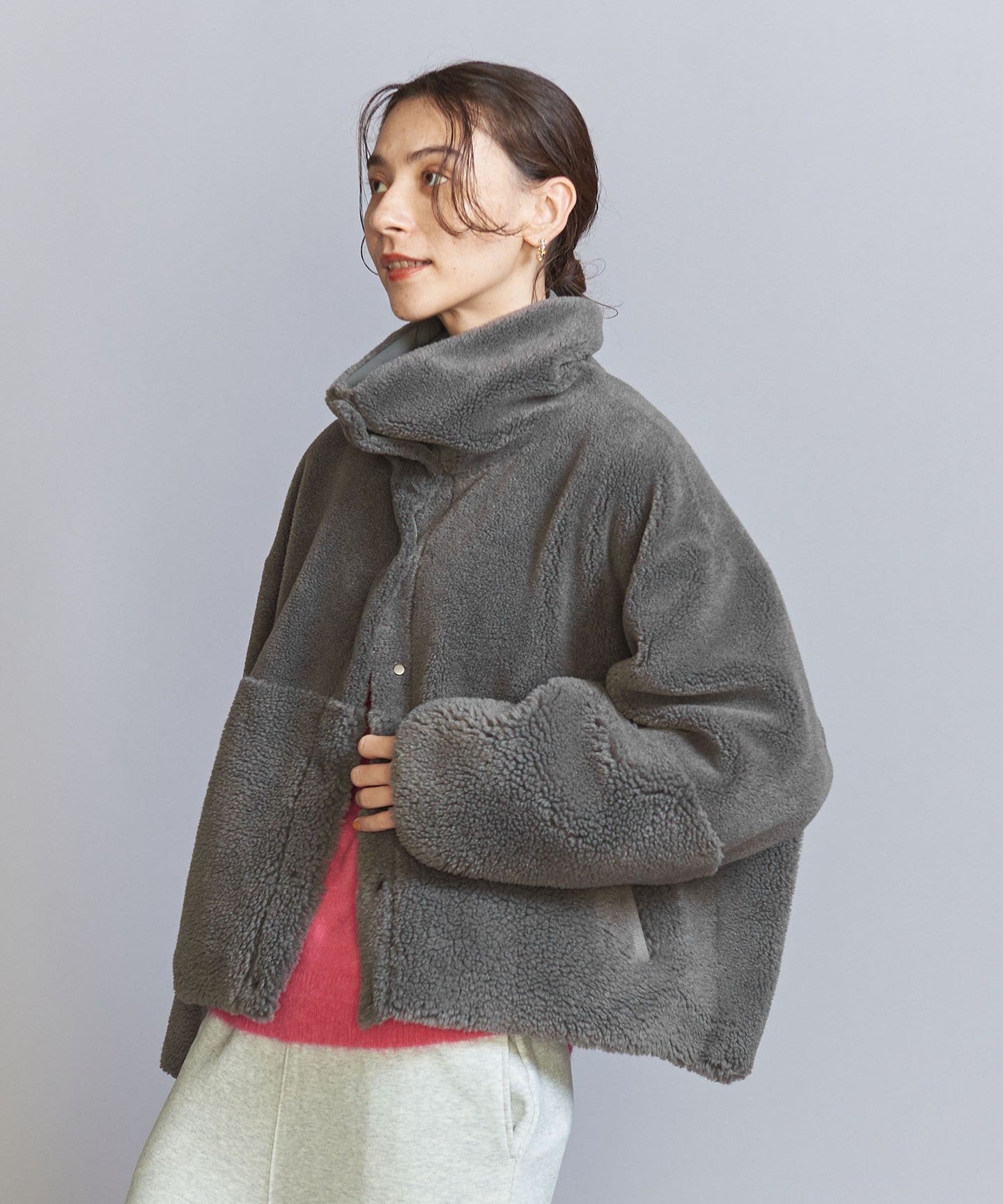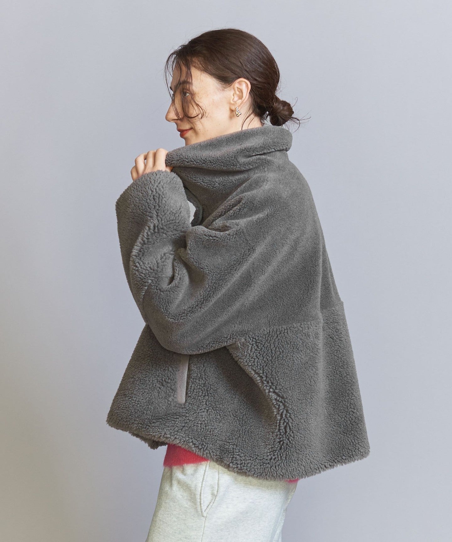 The loose sizing and warm boa material remain the same, but the length, neck design, and inner fabric have been changed to create a fresh look.