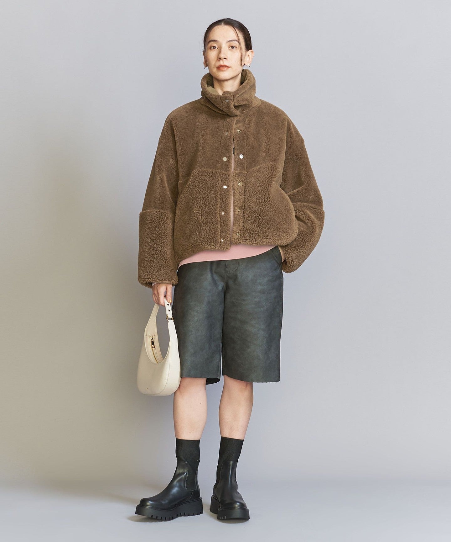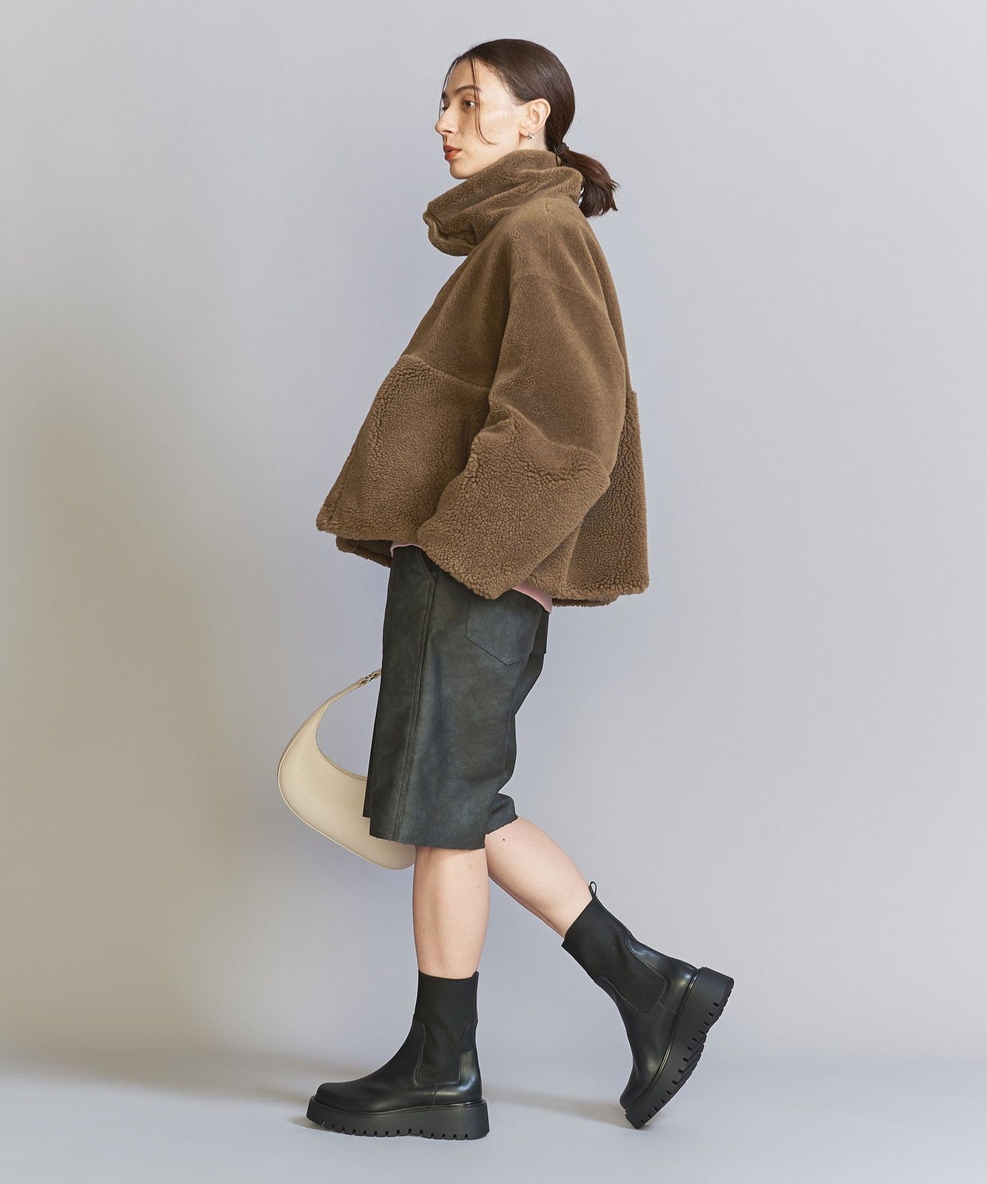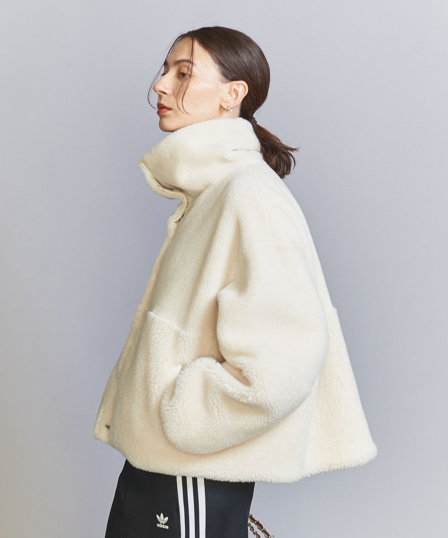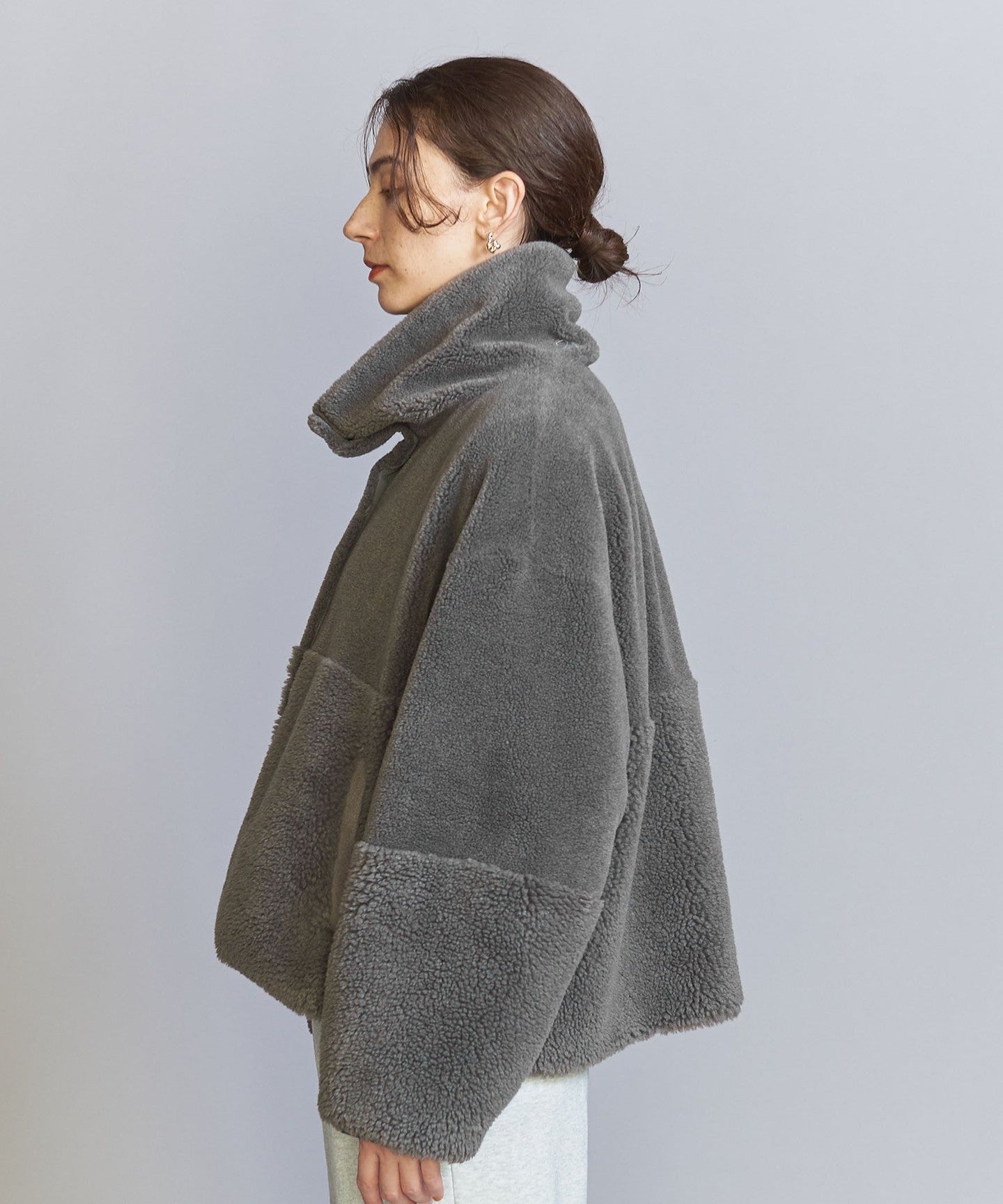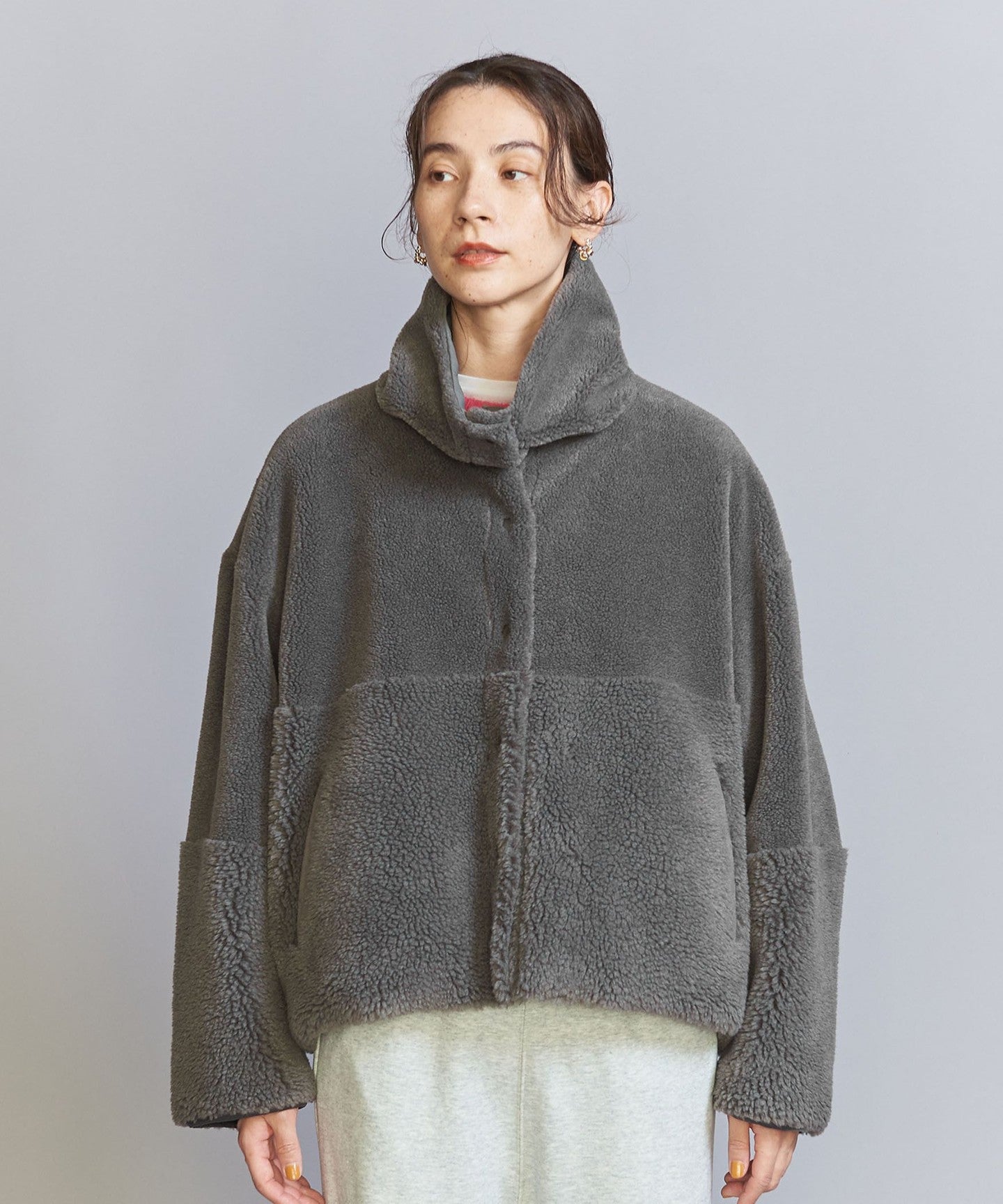 The loose sizing and warm boa material remain the same, but the length, neck design, and inner fabric have been changed to create a fresh look.