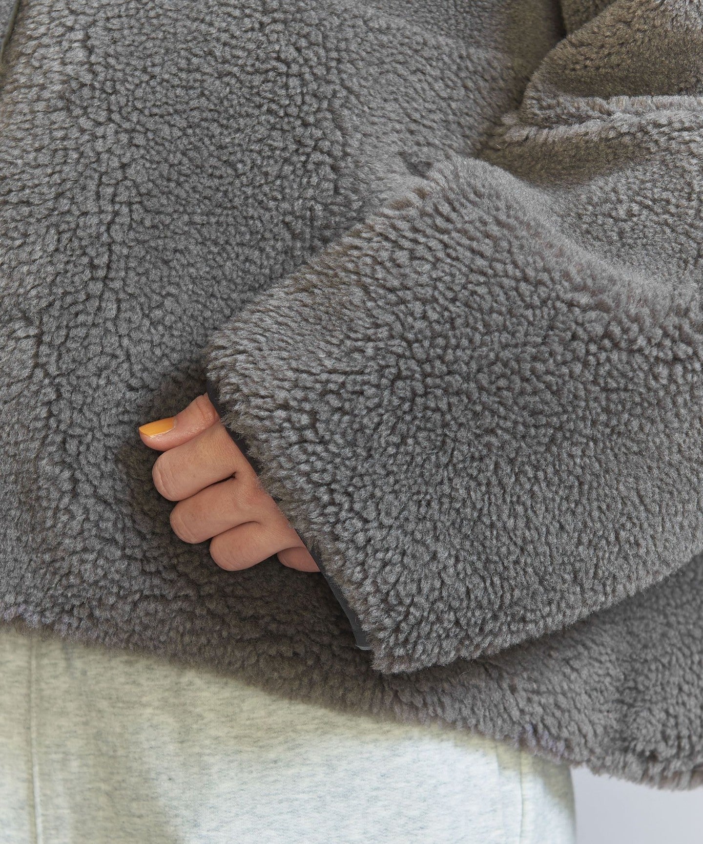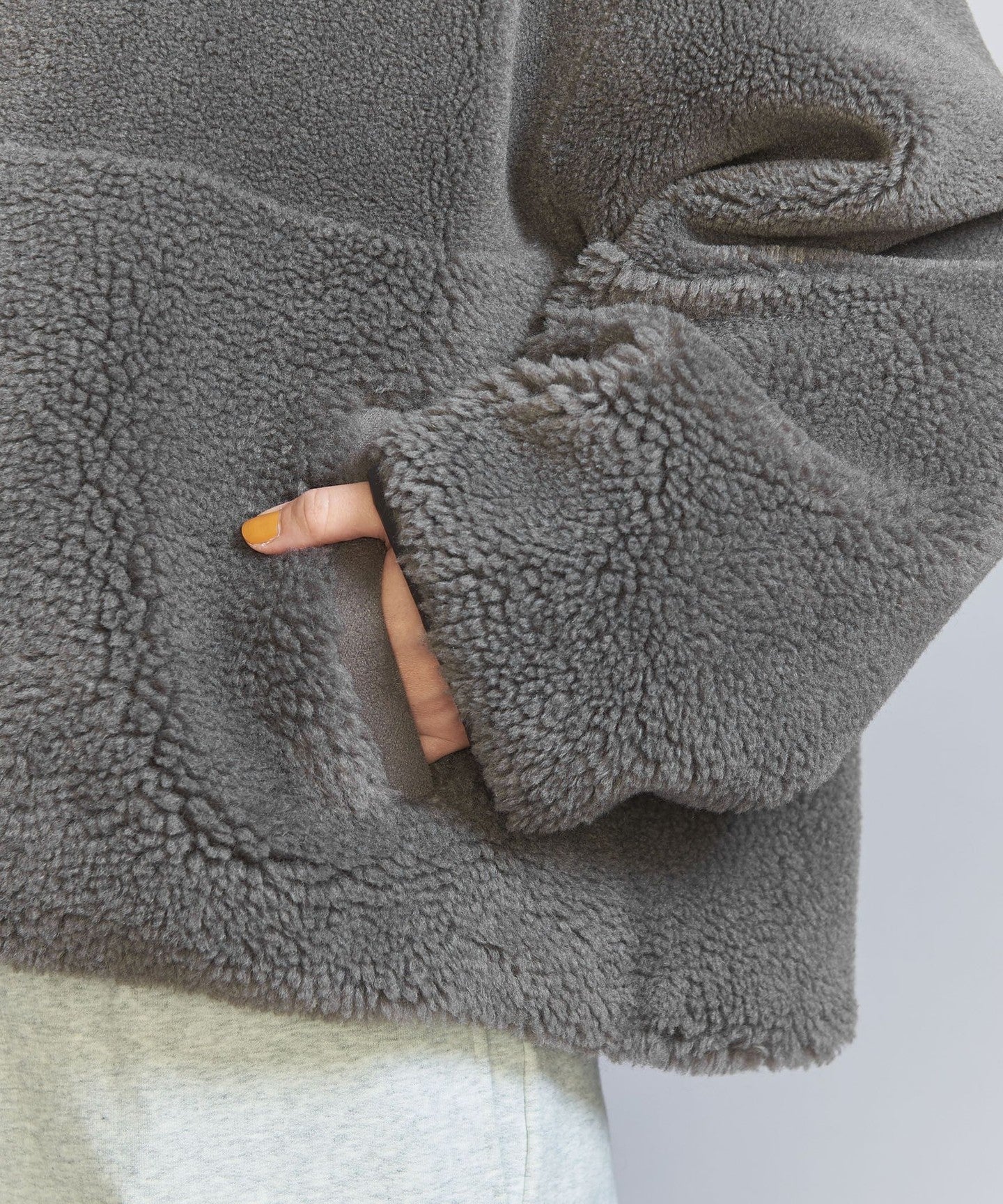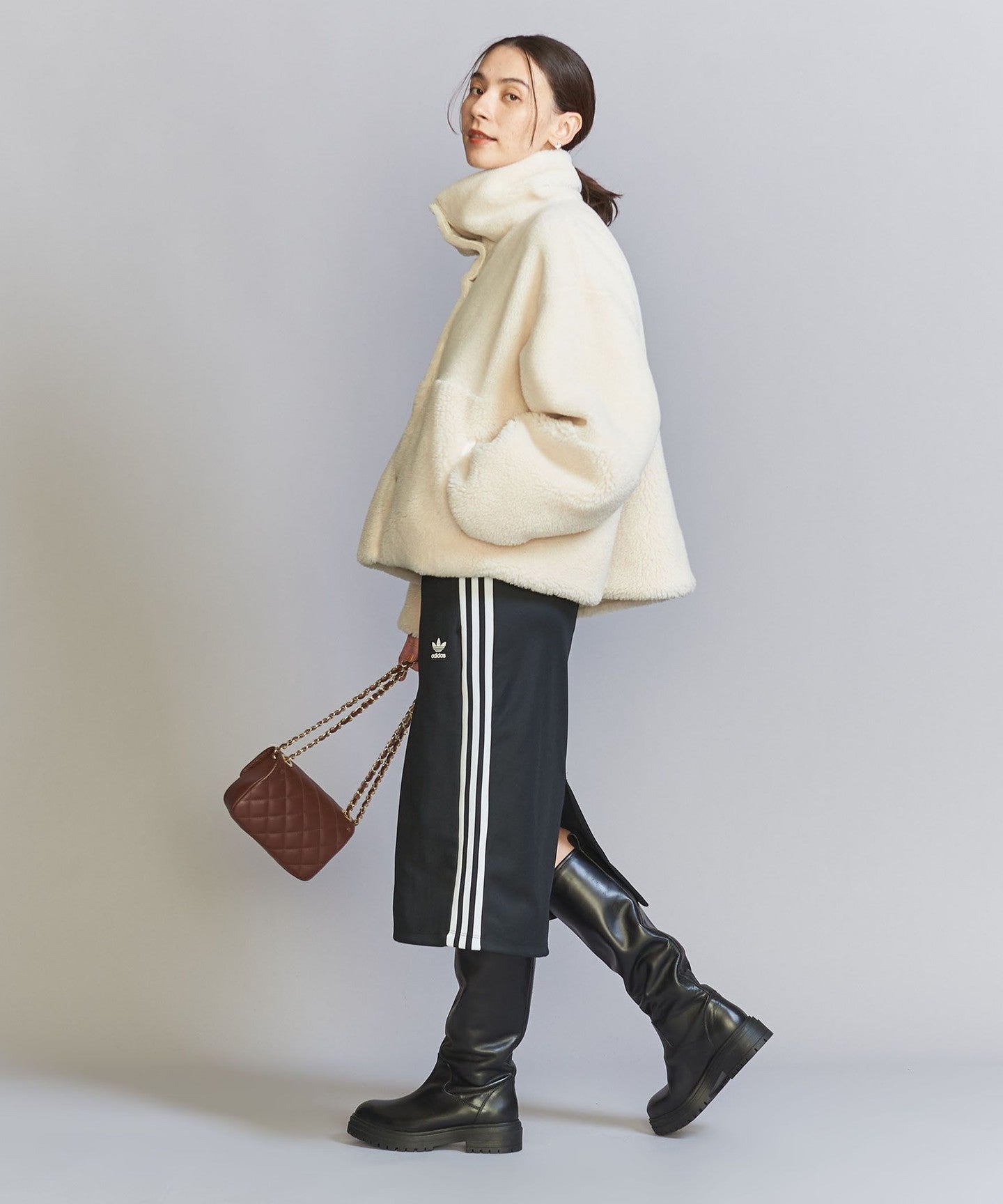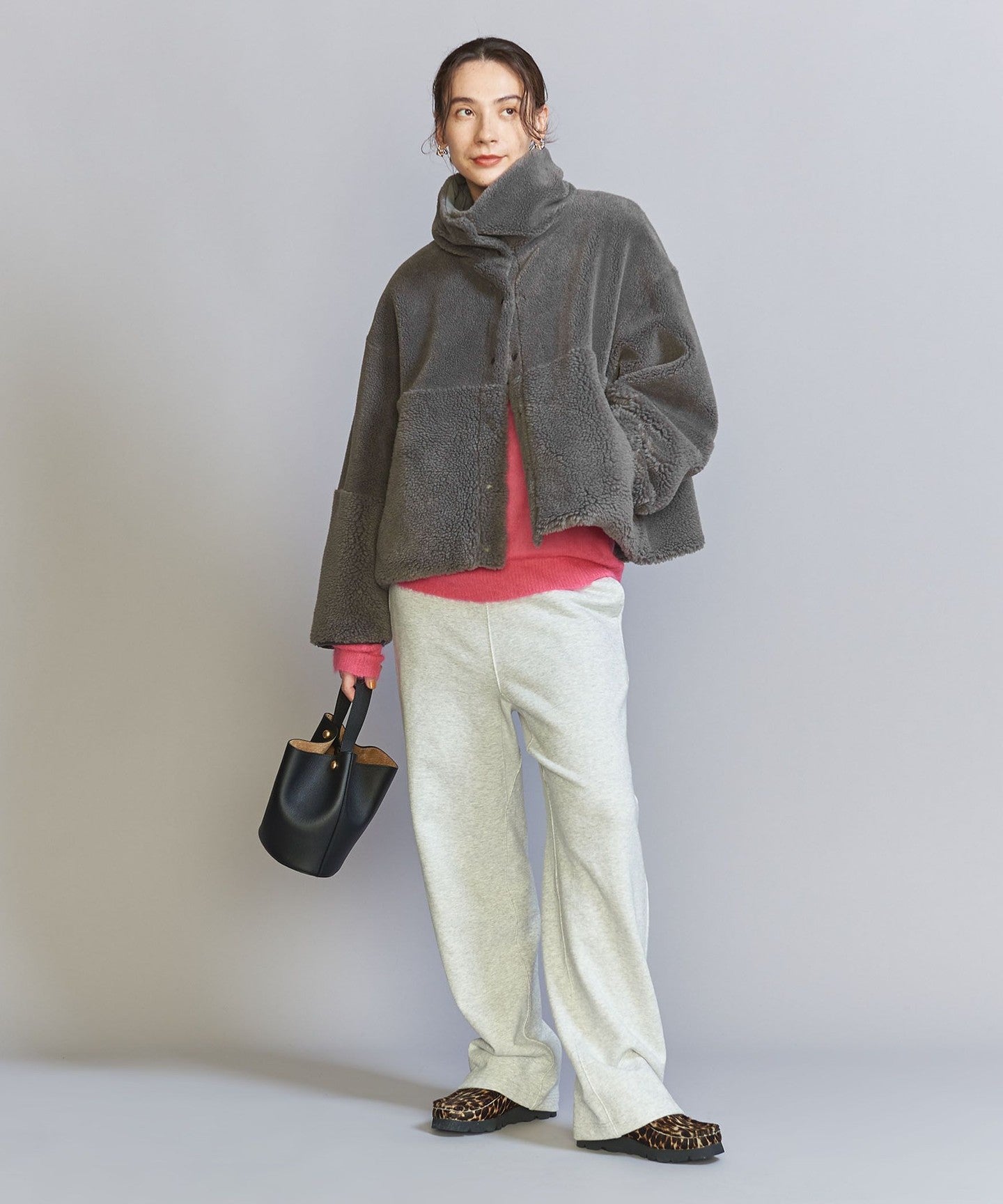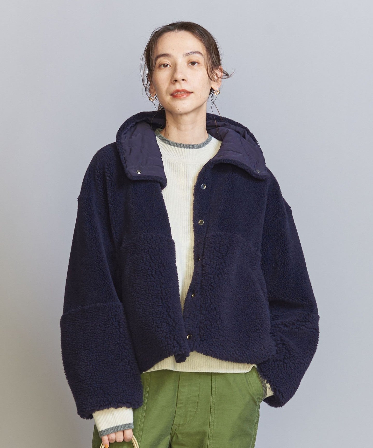 The loose sizing and warm boa material remain the same, but the length, neck design, and inner fabric have been changed to create a fresh look.