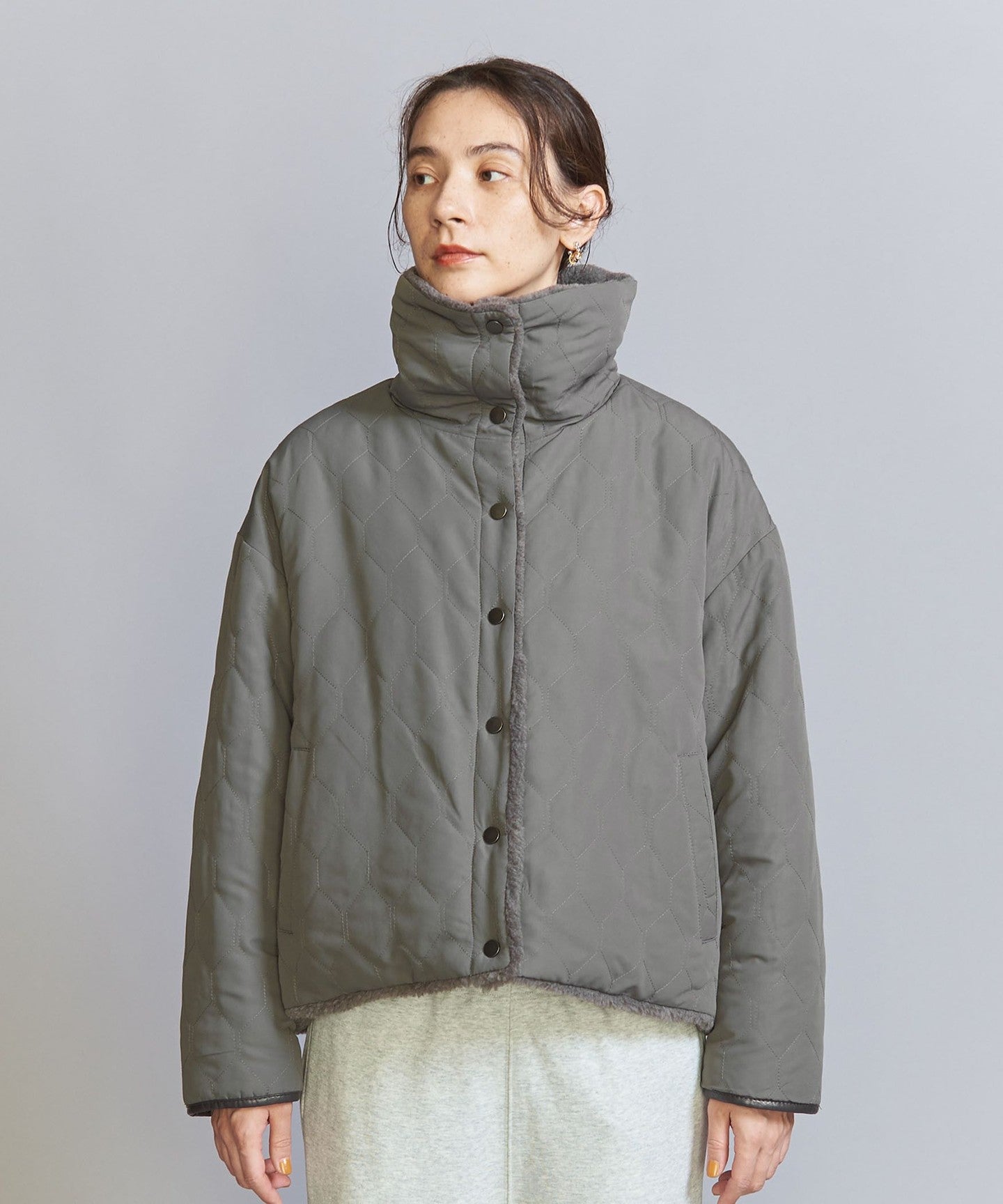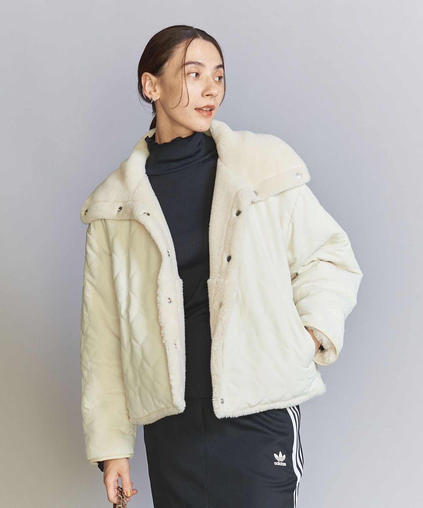 Boa x Quilted Reversible Short Coat -2WAY-