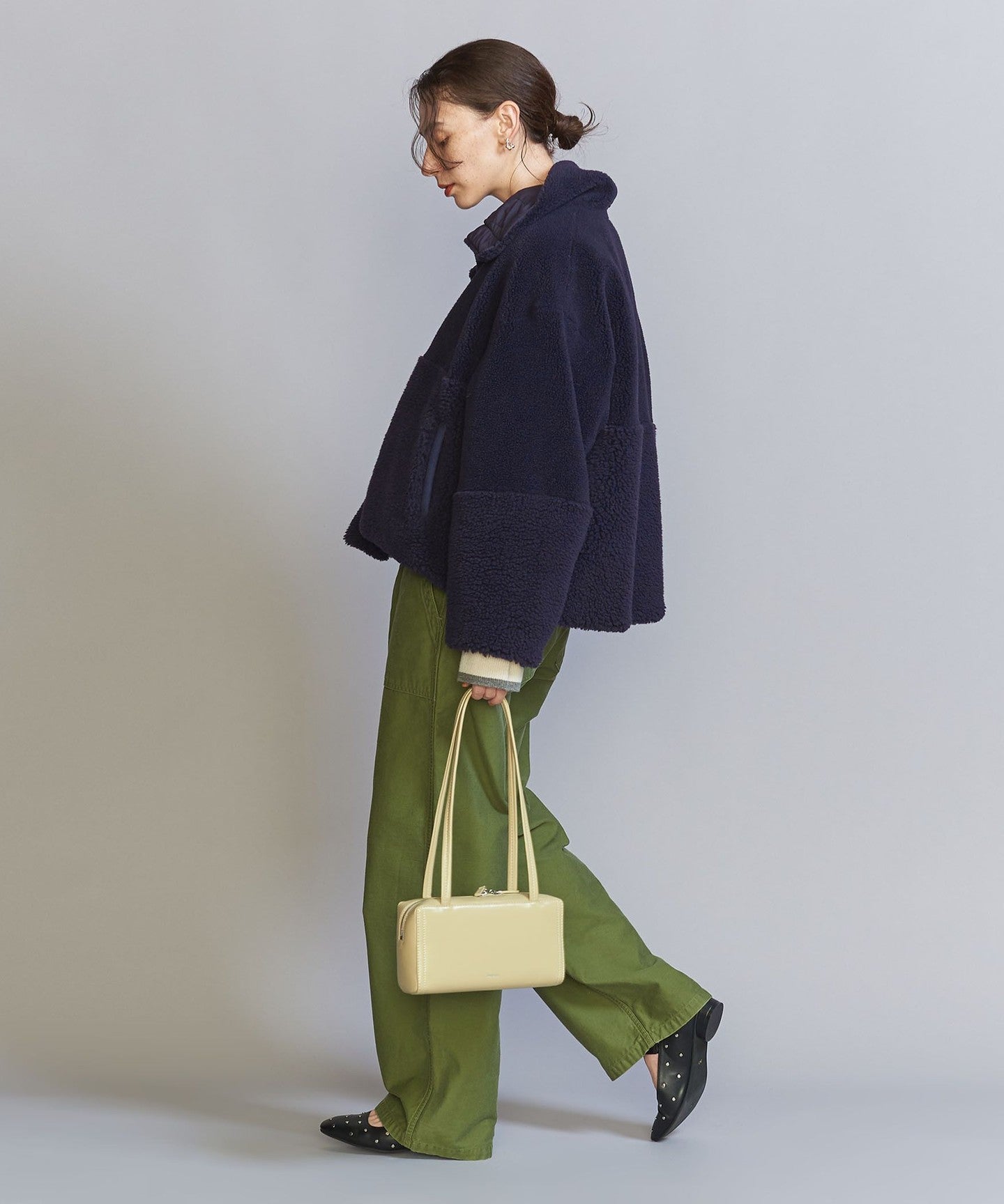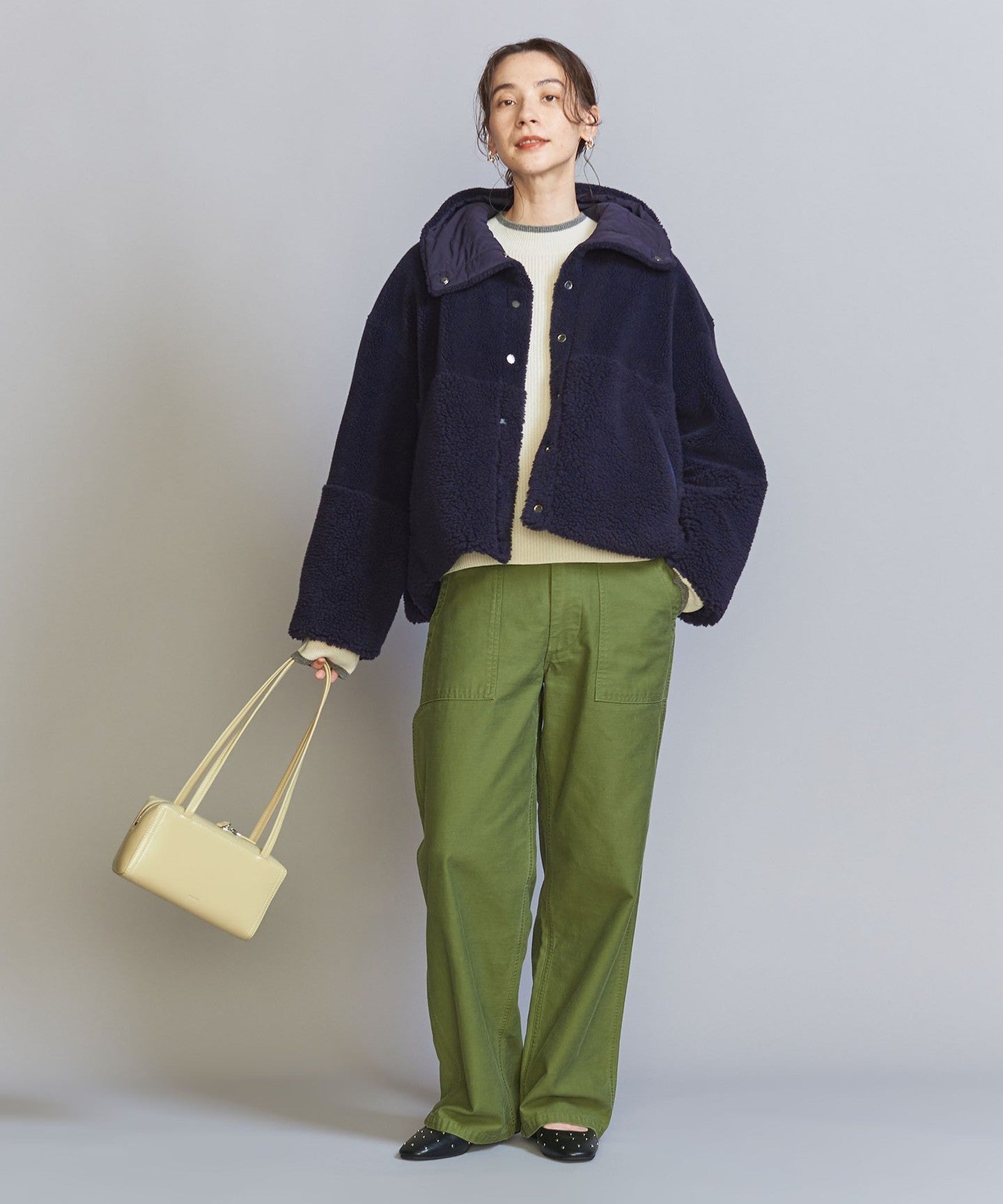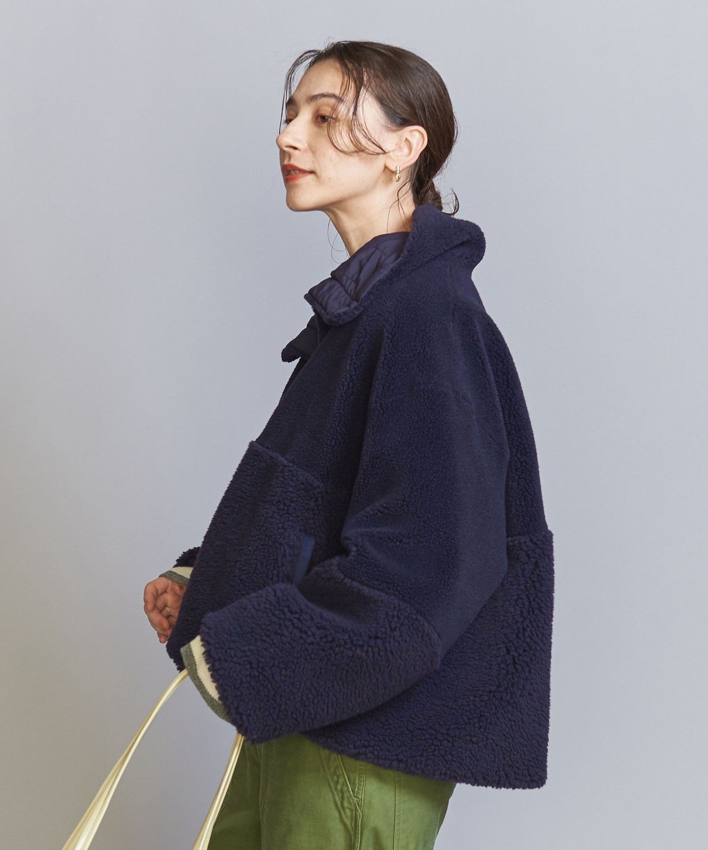 This waist-length boxy silhouette goes well with any bottoms and is a highly convenient piece that can be worn on either side.