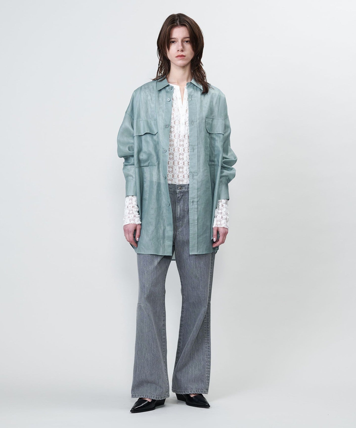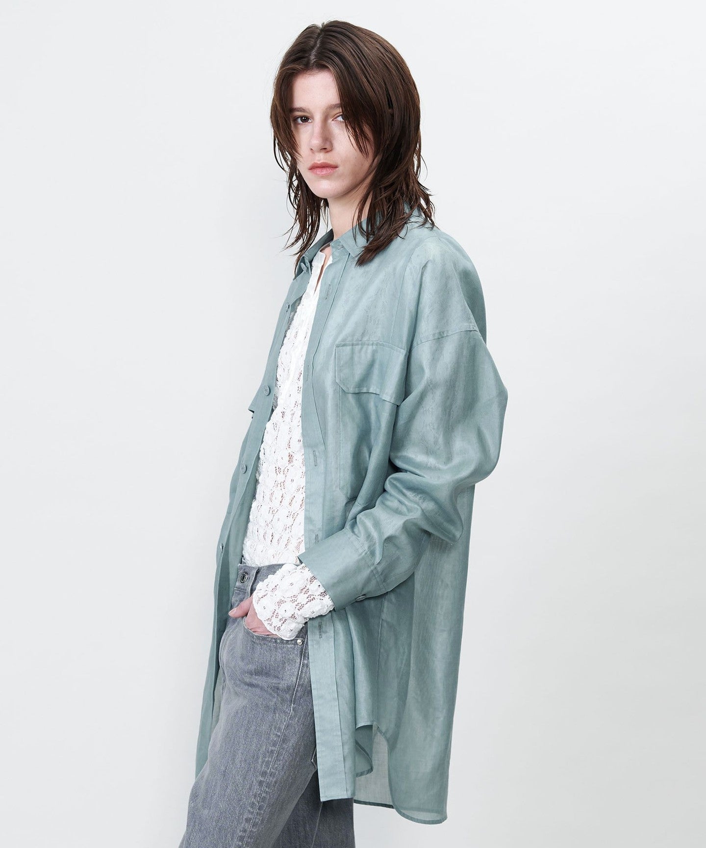 A big-sized shirt with a sheer, light impression that is easy to incorporate into your outfit.