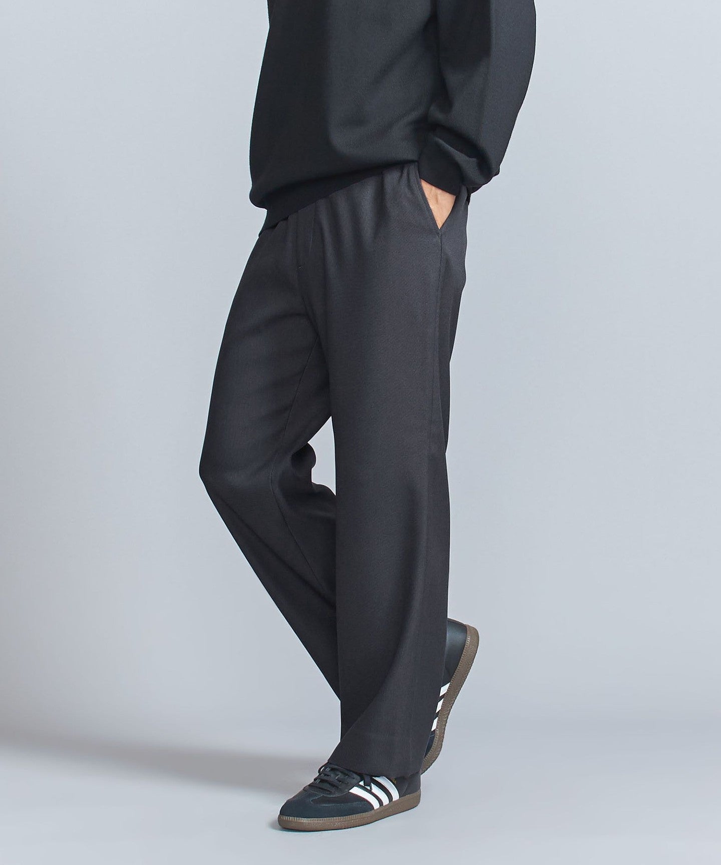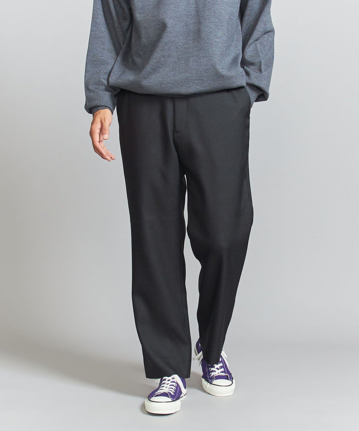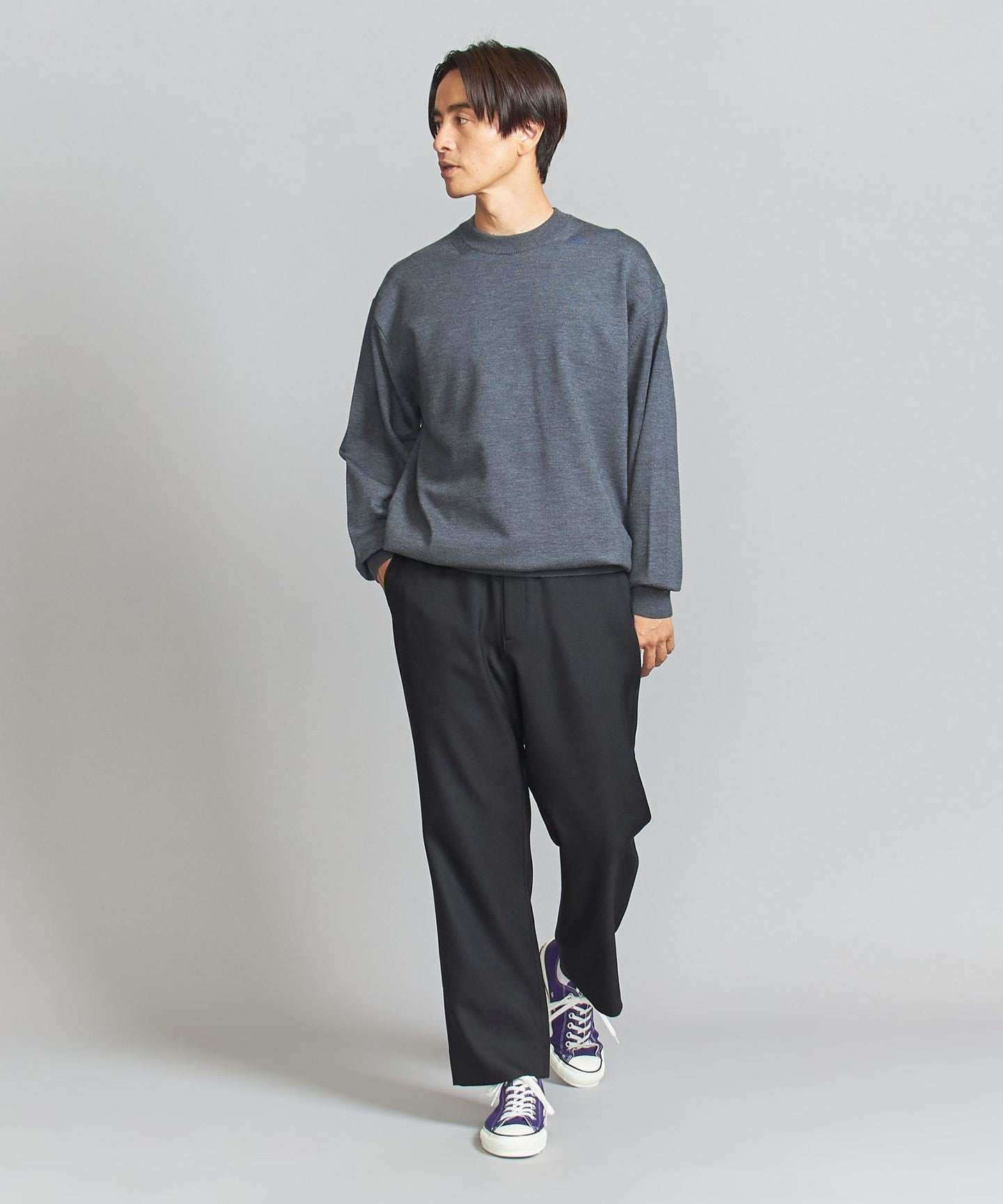 It also goes well with casual styles such as sweatshirts and sneakers.