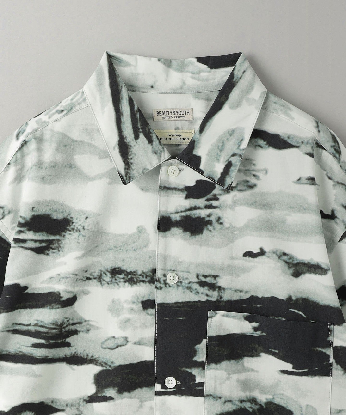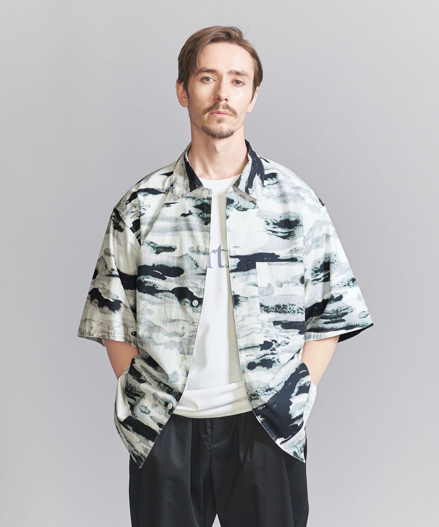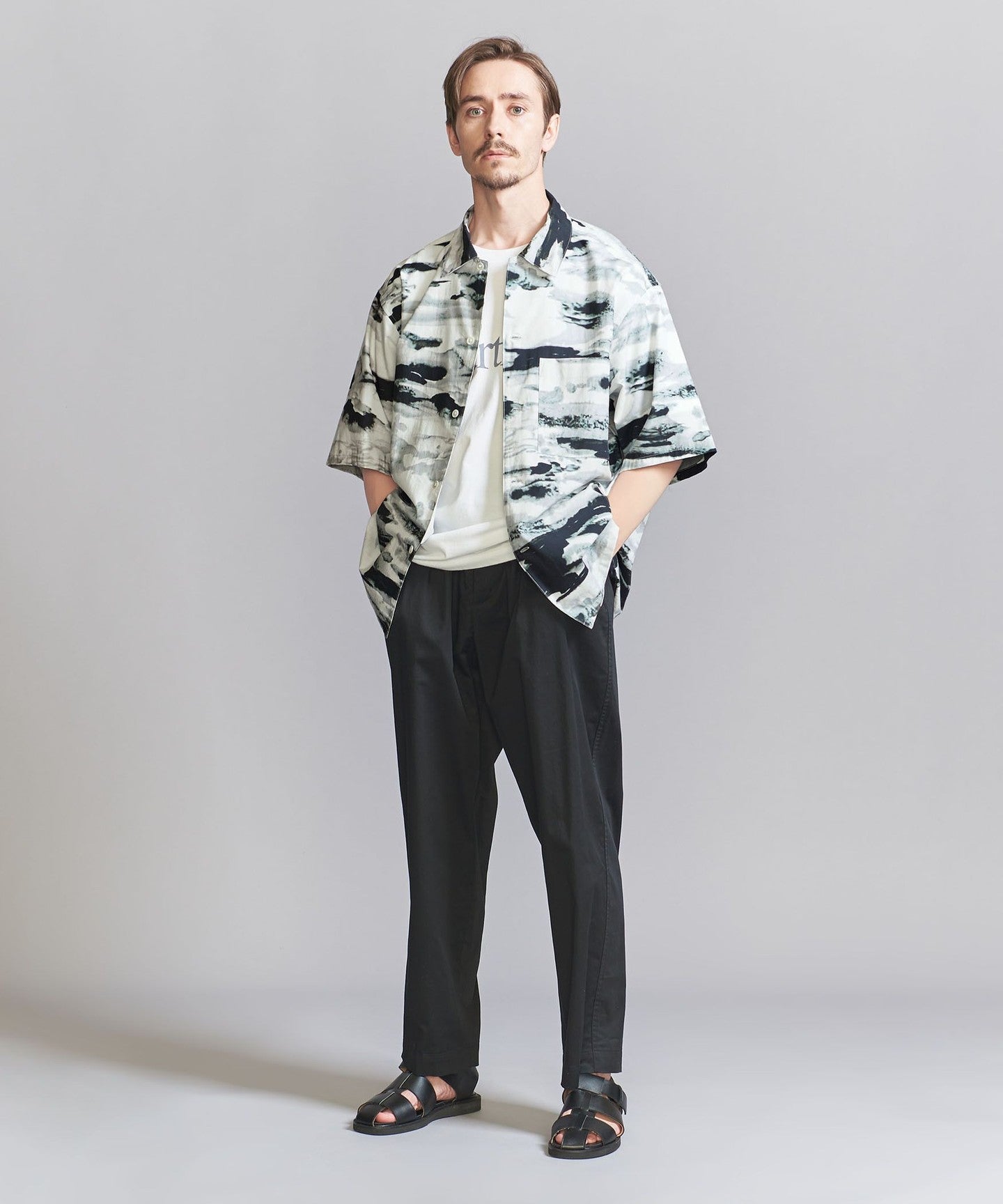 It looks great on its own, so pair it with neat slacks or easy pants and Gurkha sandals or leather sandals for a relaxed look, or take advantage of the monochrome pattern to create a chic, dark-toned color coordination.