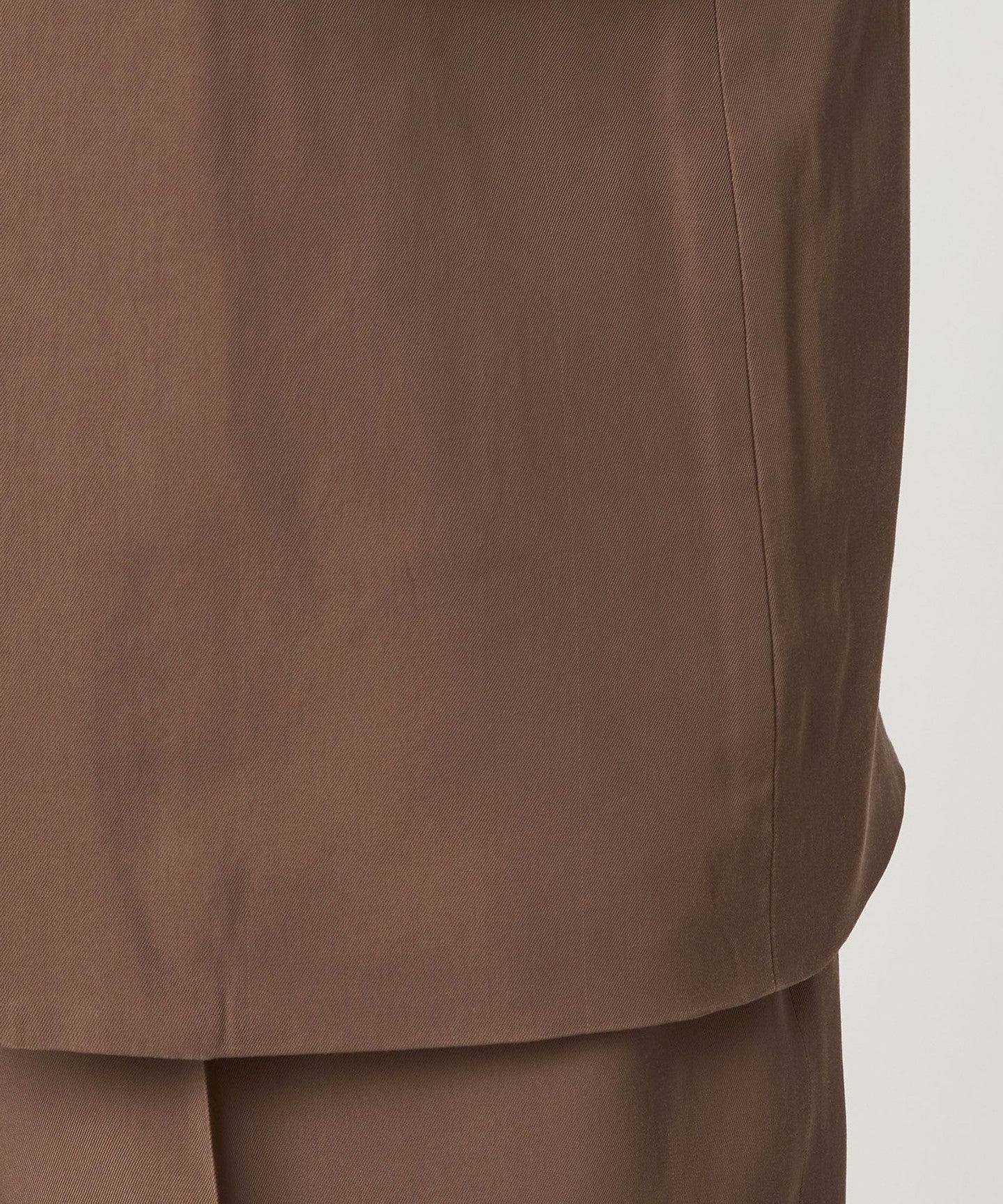 This drapey gabardine material is woven in the Hokuriku region and has undergone various processes using a liquid dyeing machine in Oshu.