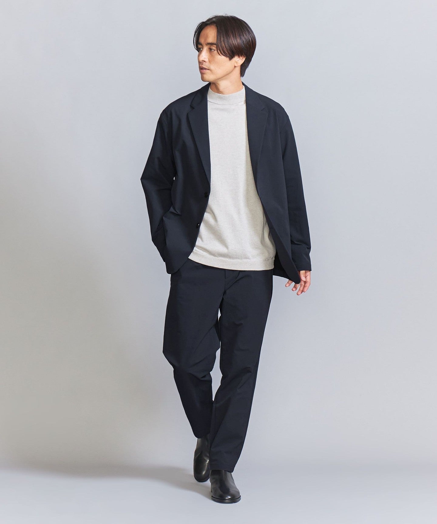 The fabric is processed by Komatsu Matere to give the surface a moderate nylon look and the back side a brushed finish for warmth, making it perfect for the autumn and winter seasons.