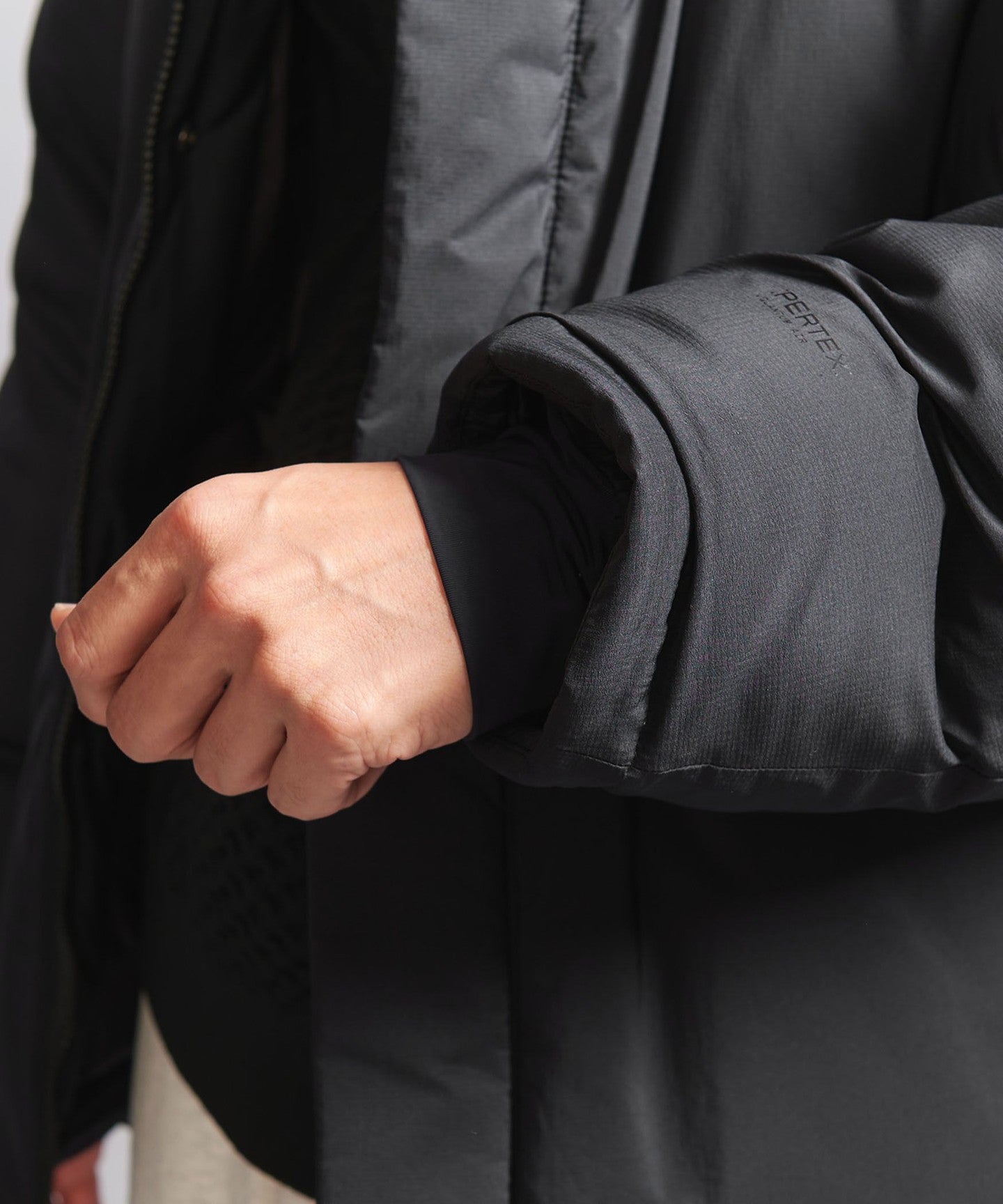 This is a 700 fill power down jacket that uses the functional material "PERTEX QUAMTUM ATR" for the outer material.