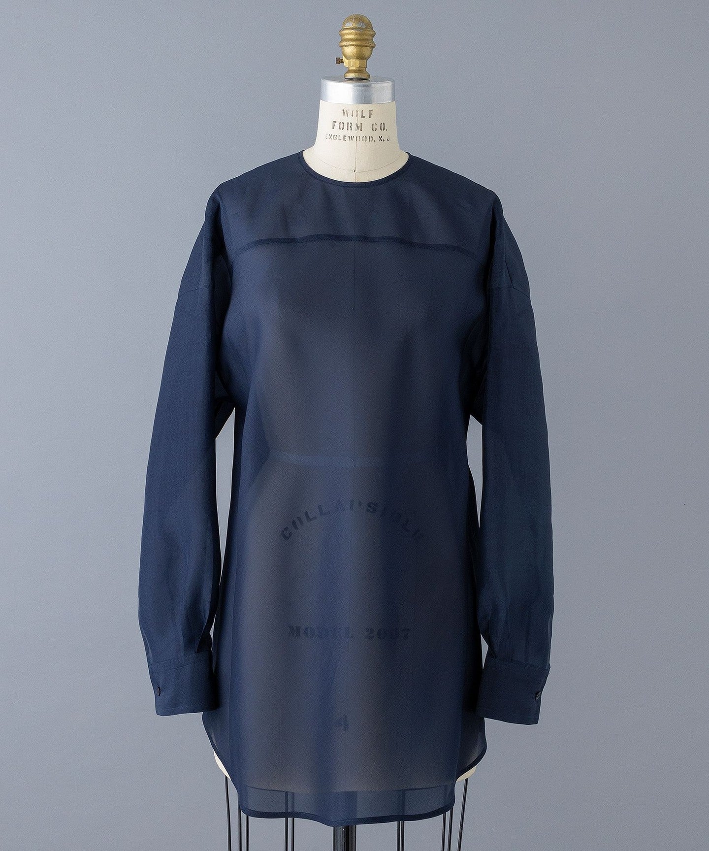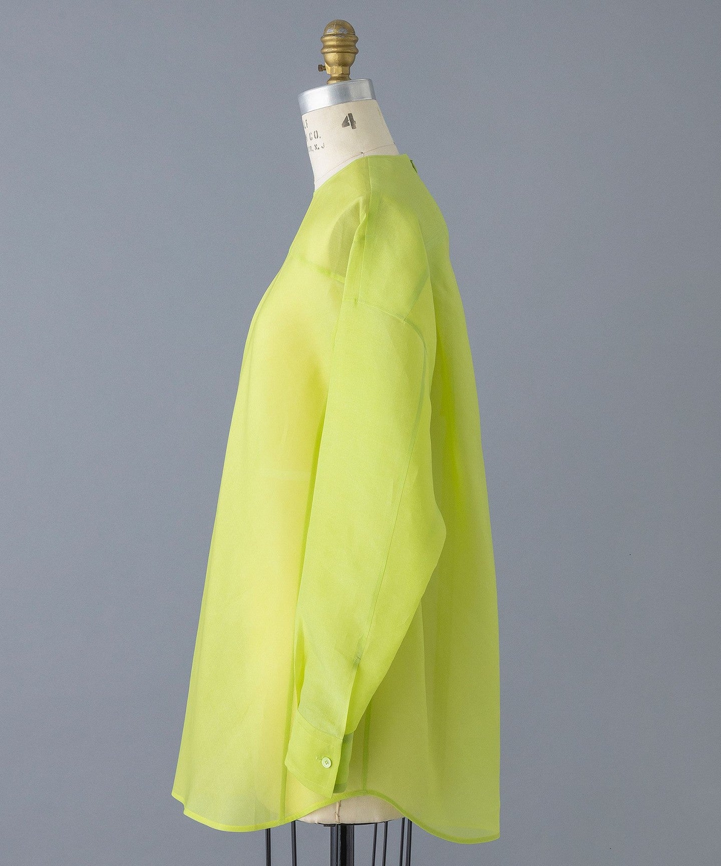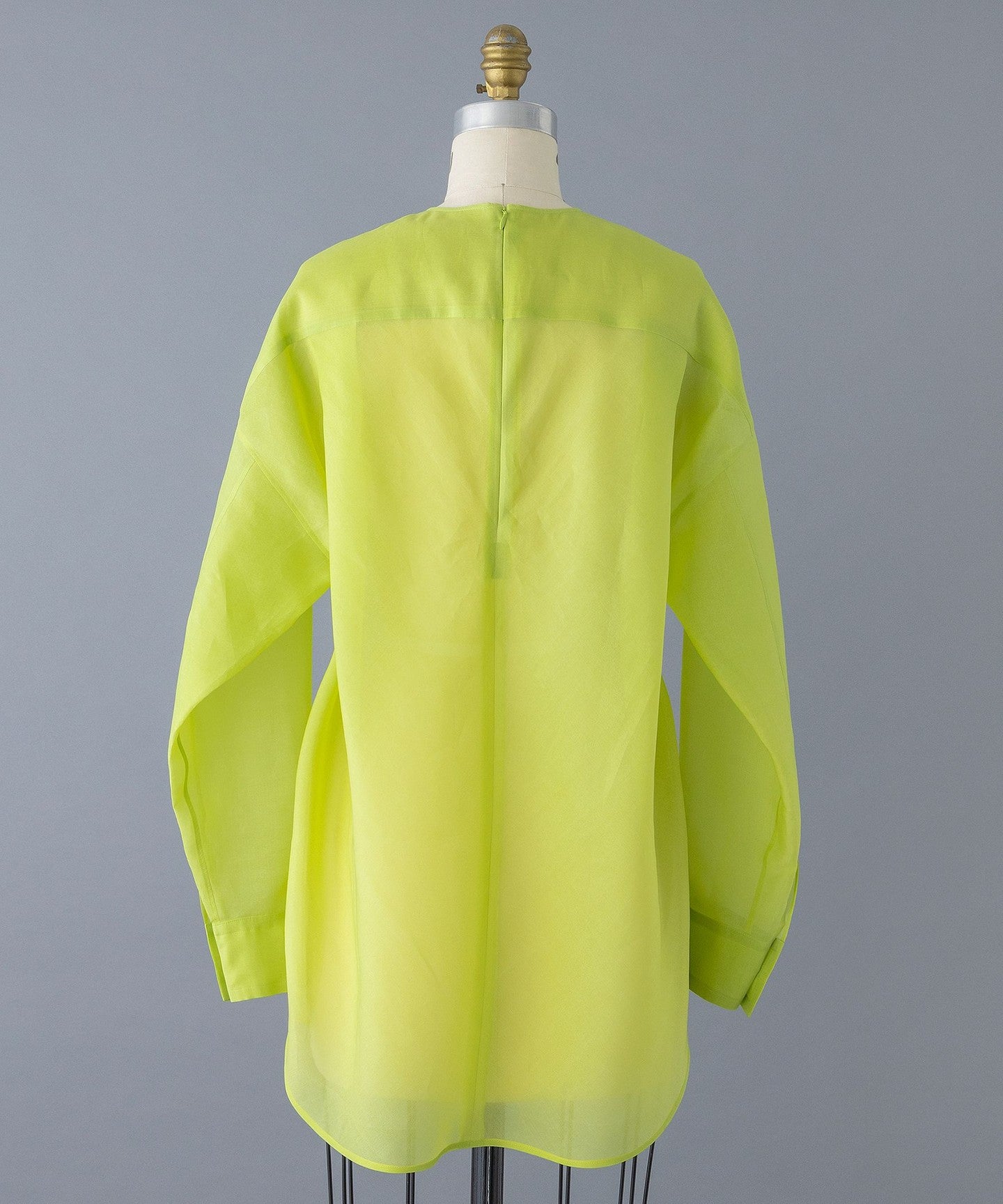 This blouse features a beautiful, transparent color created by the firm silk material.