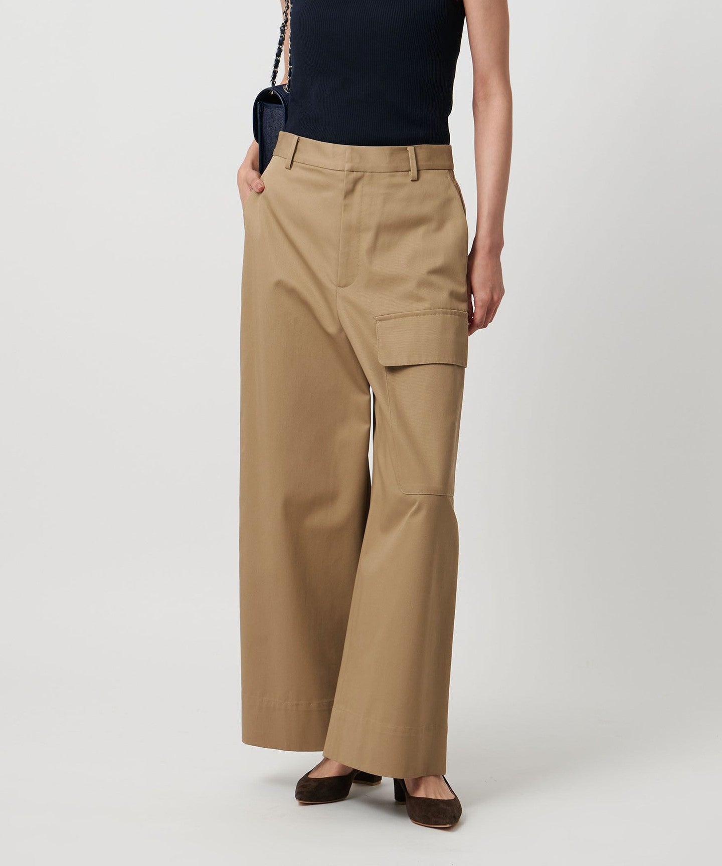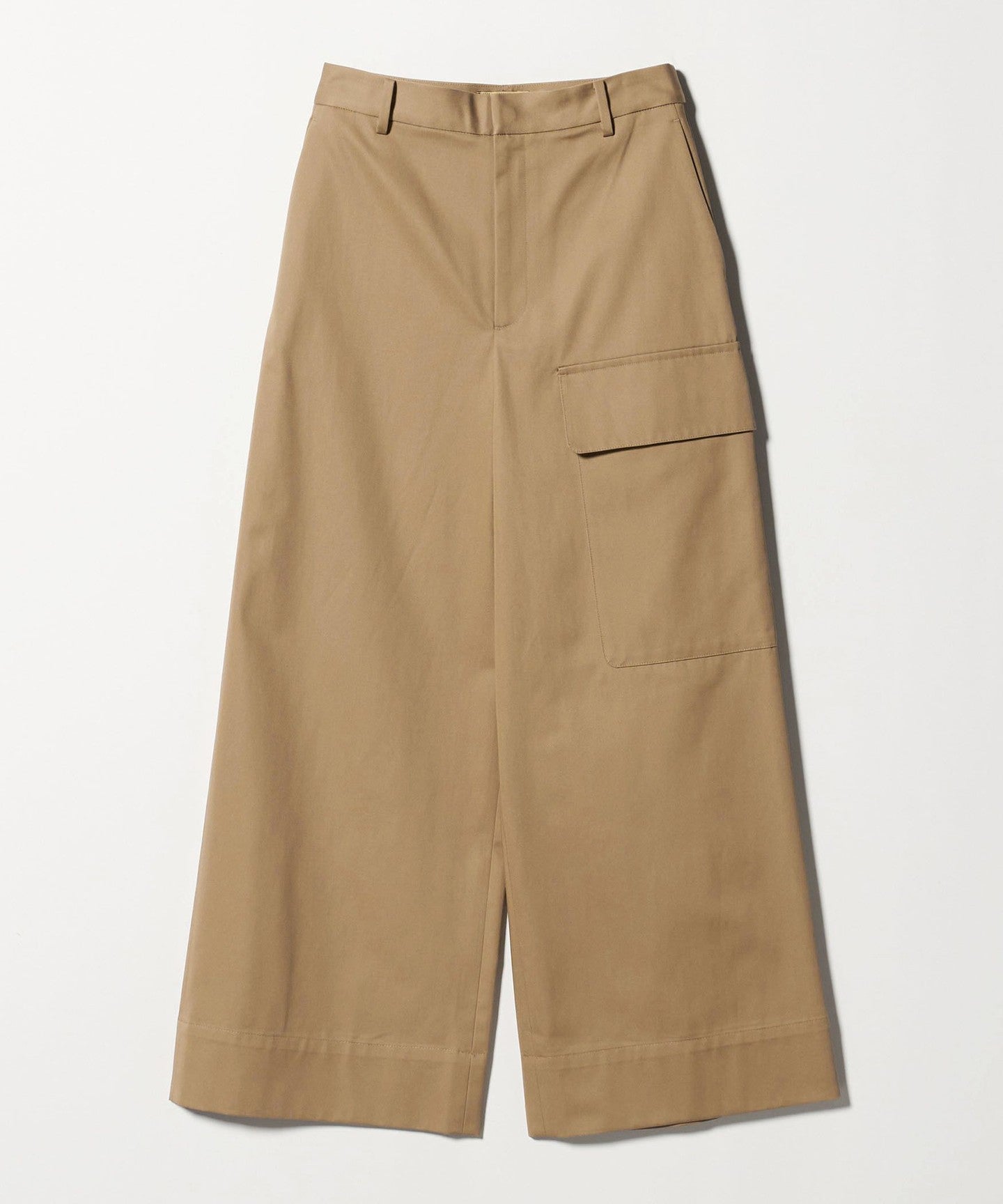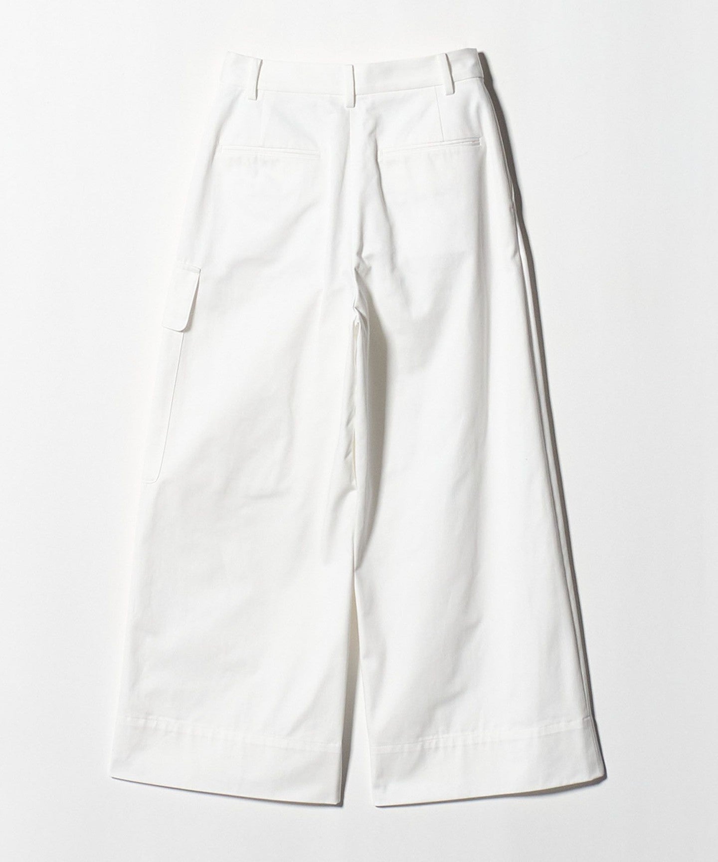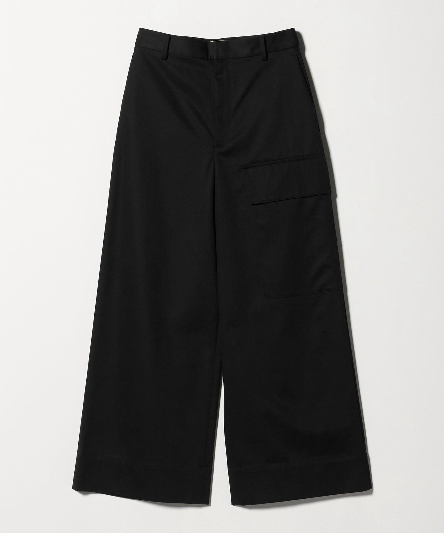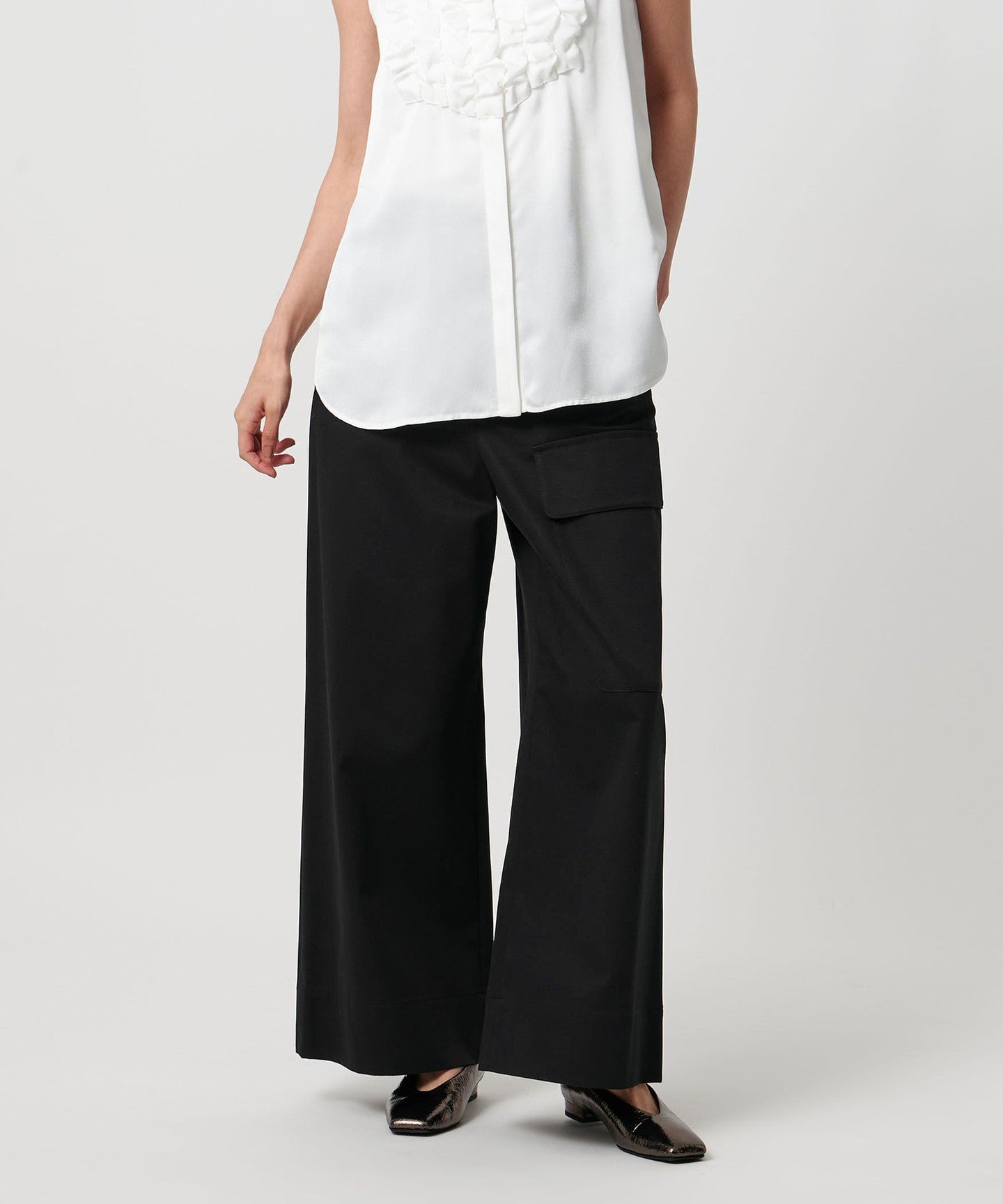 The pleatless design gives a clean look from the waist to the hips, while the silhouette is wider from the knees to the hem.