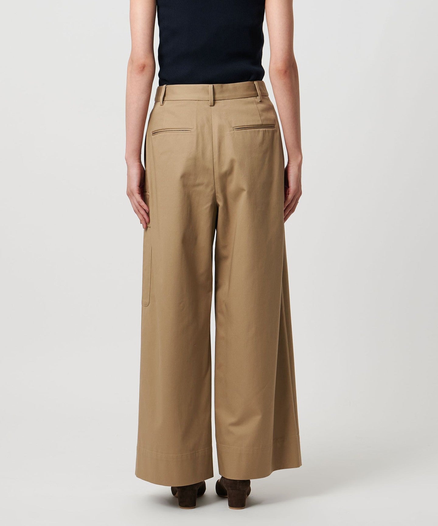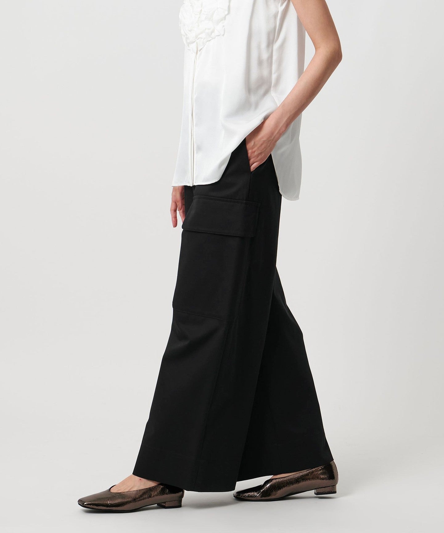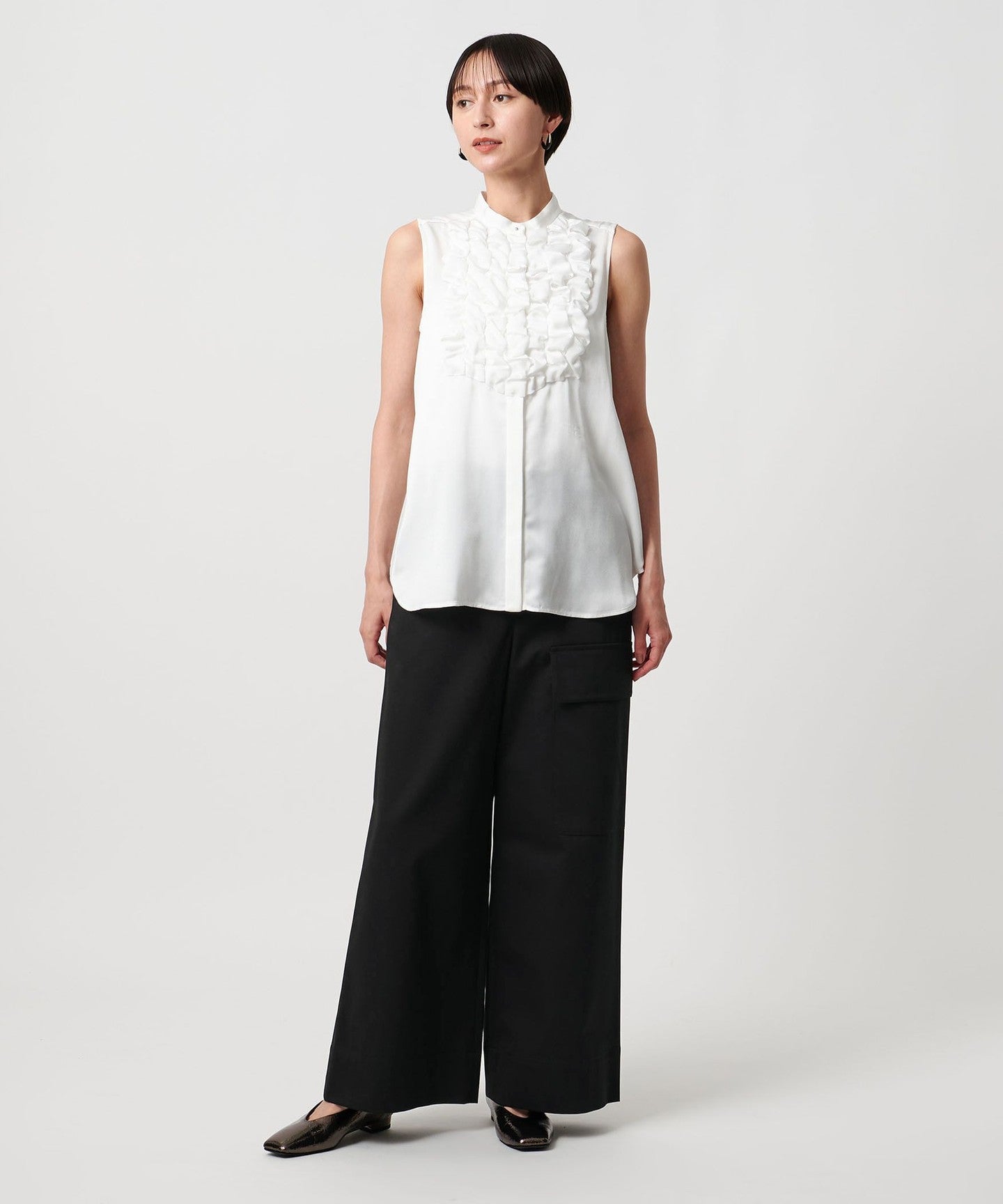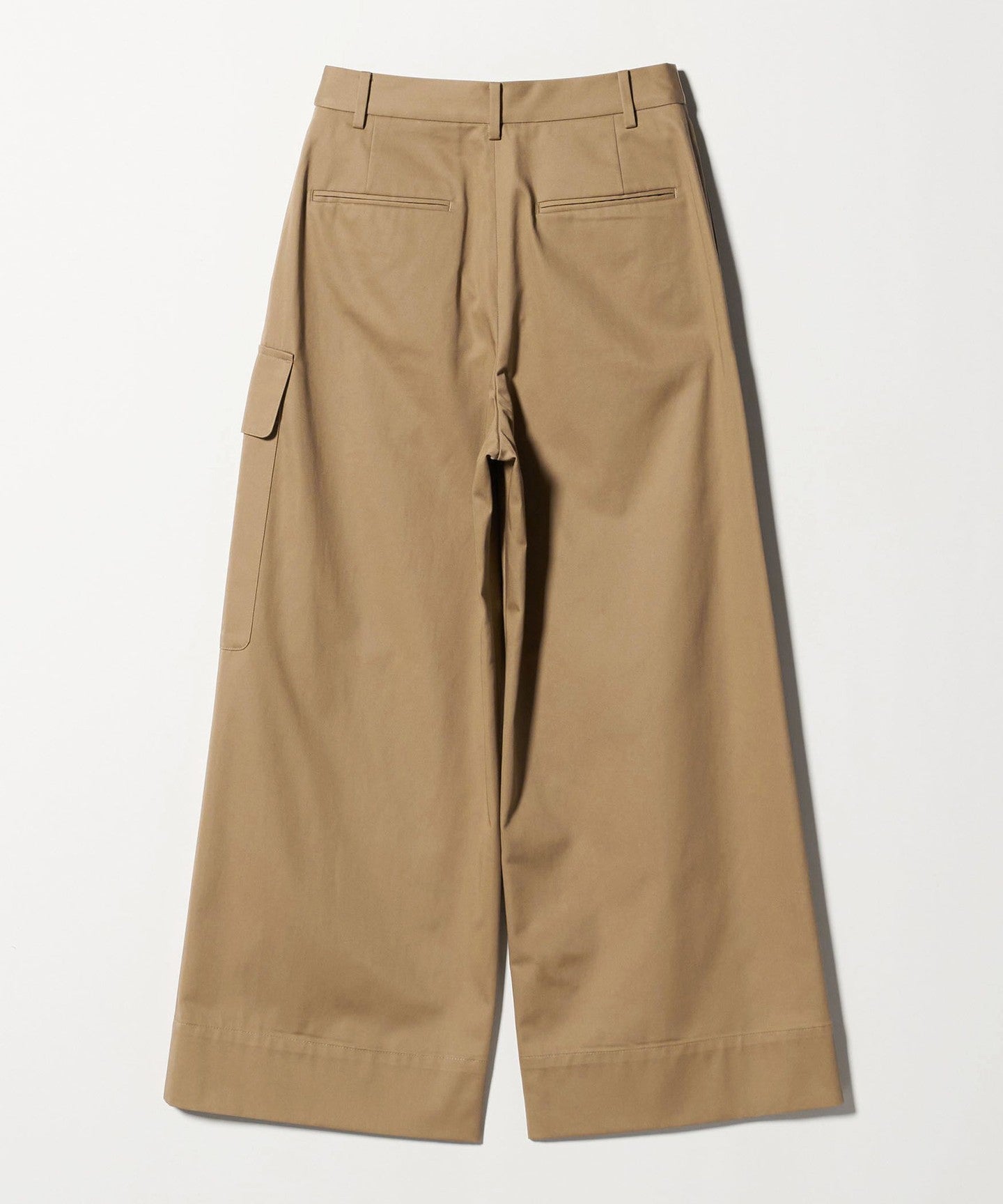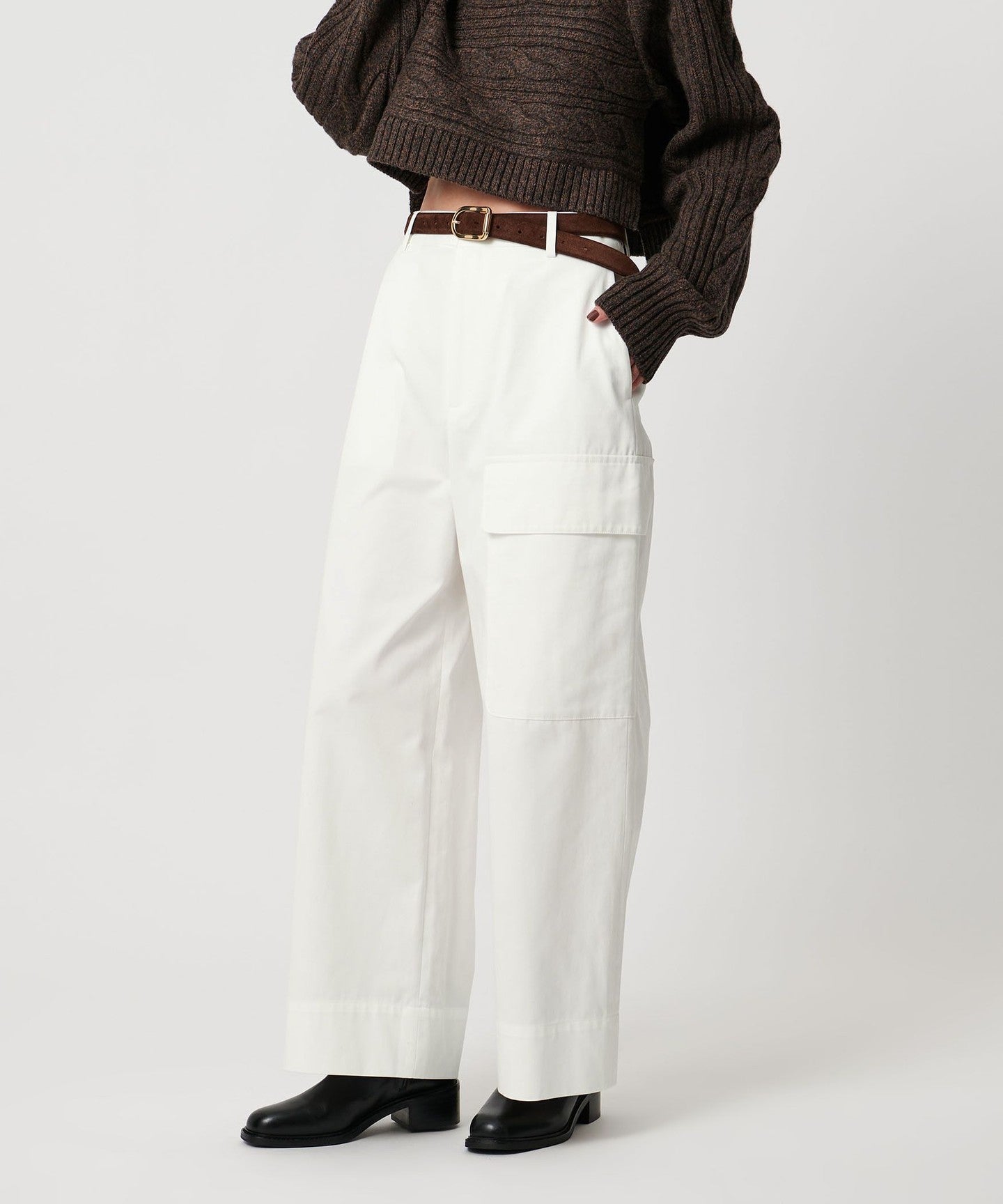The pleatless design gives a clean look from the waist to the hips, while the silhouette is wider from the knees to the hem.