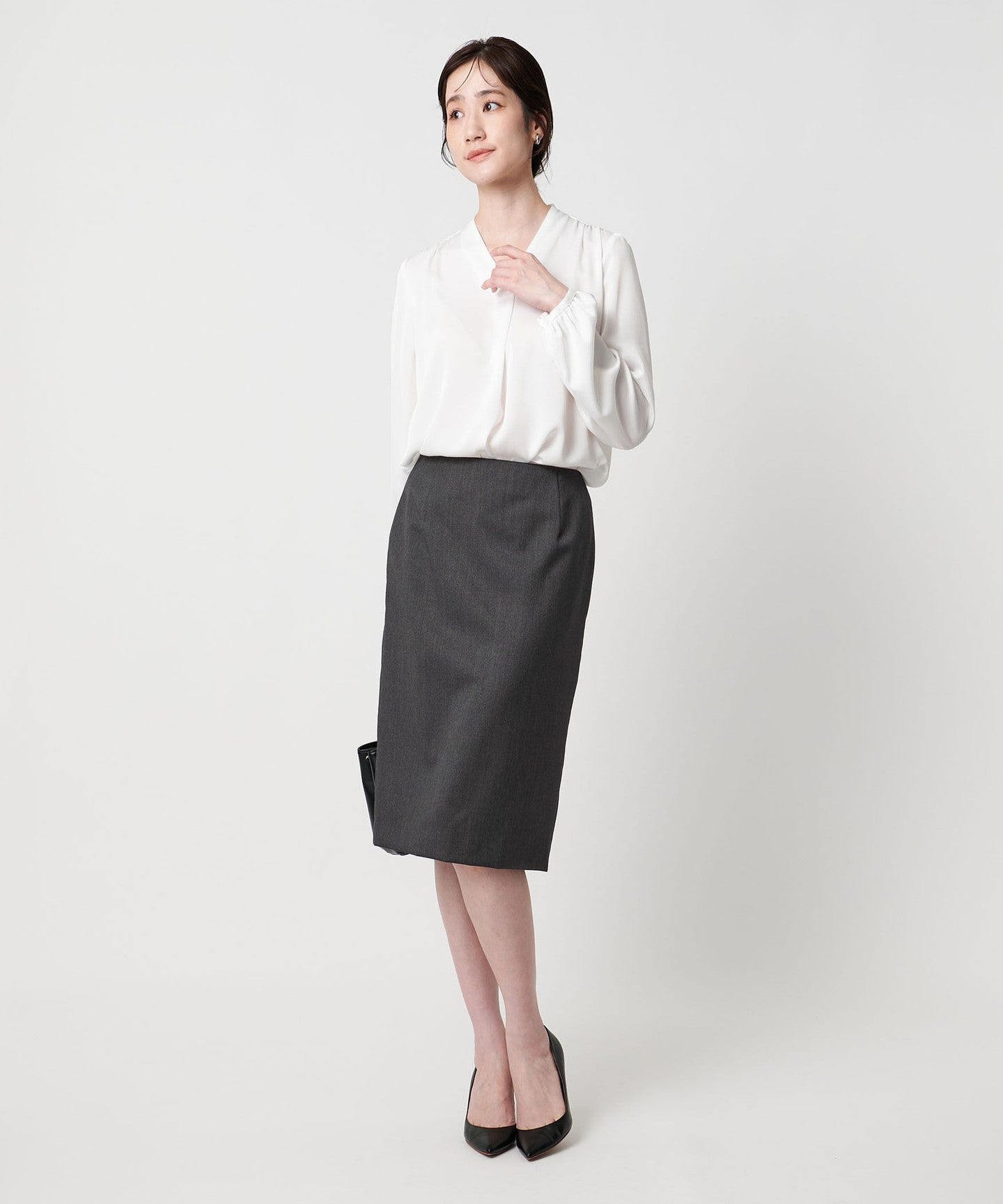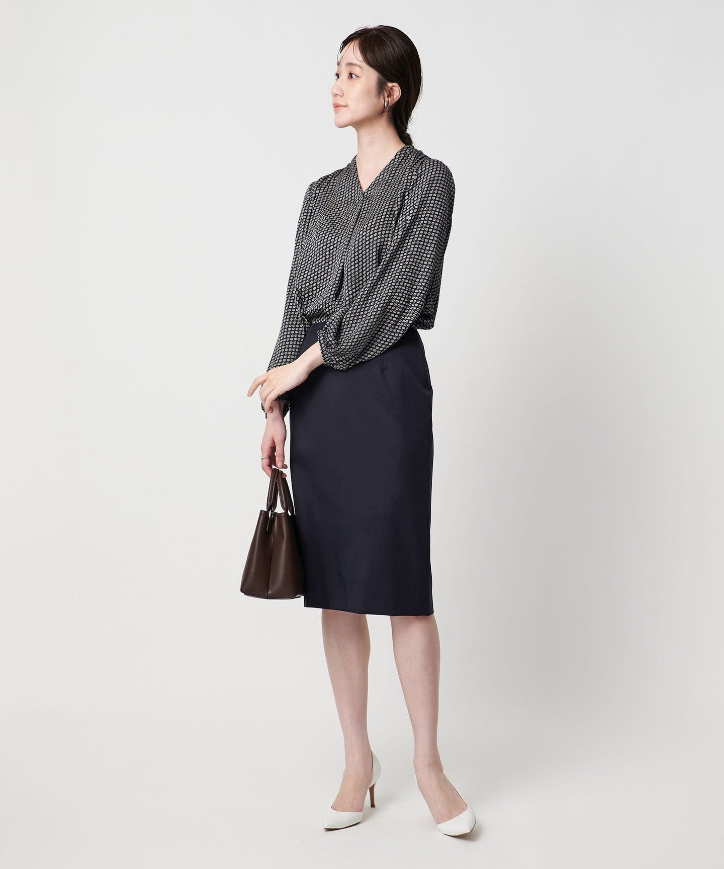 We recommend pairing it with a ladylike blouse or high-gauge knit.