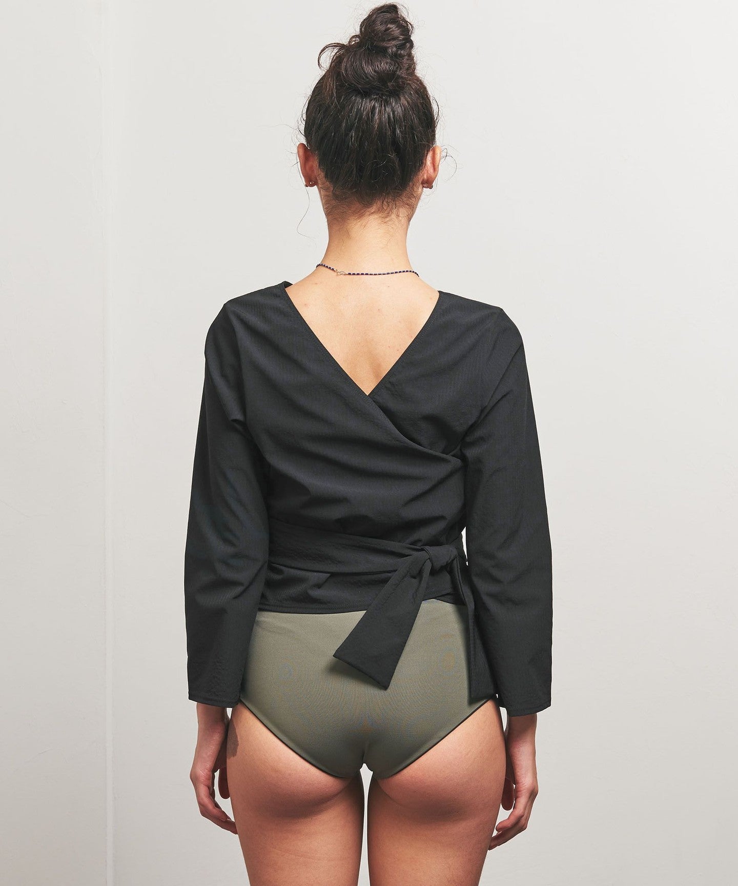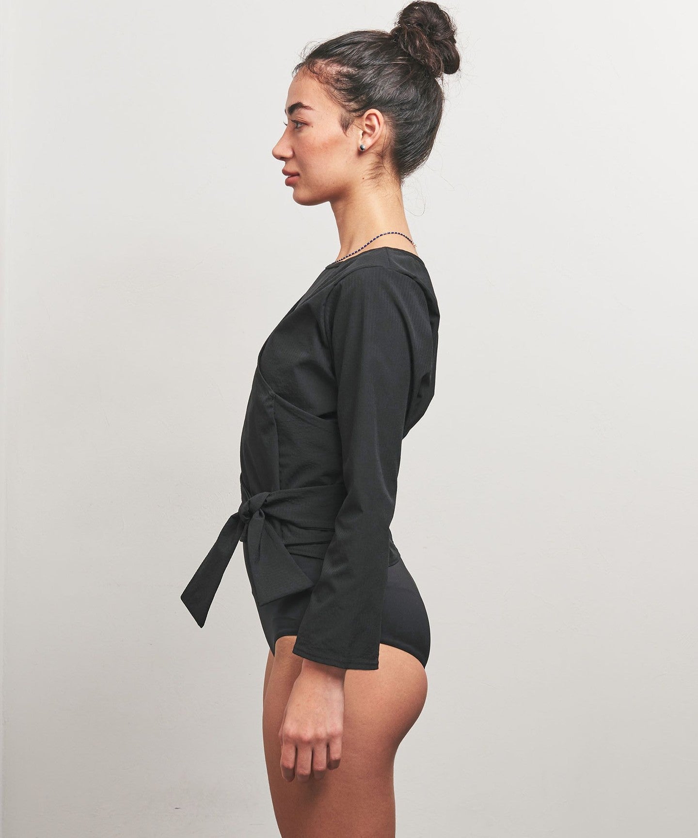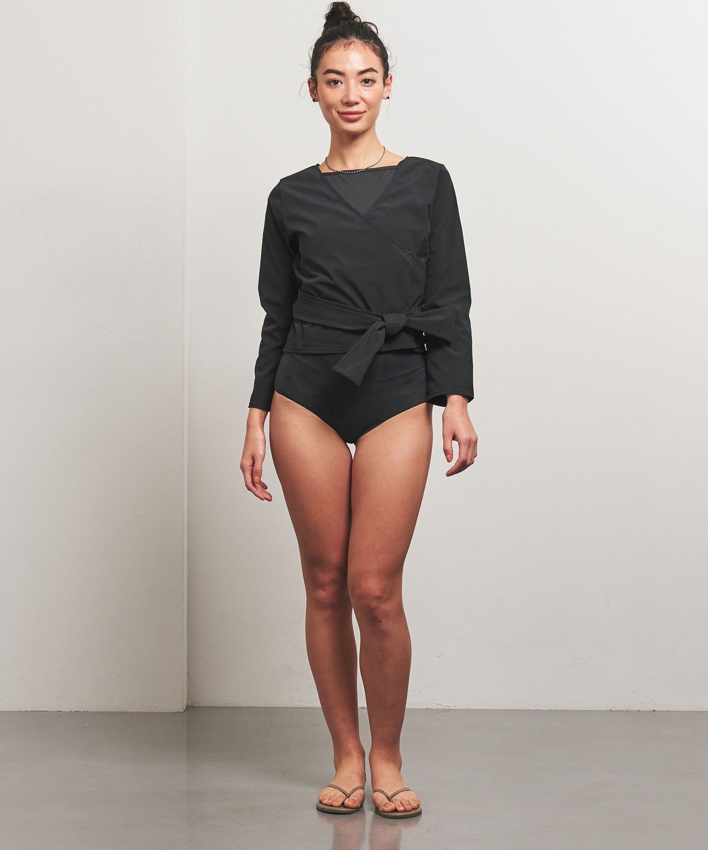 A wrap-around rash guard that you can easily throw on after coming out of the pool or ocean.