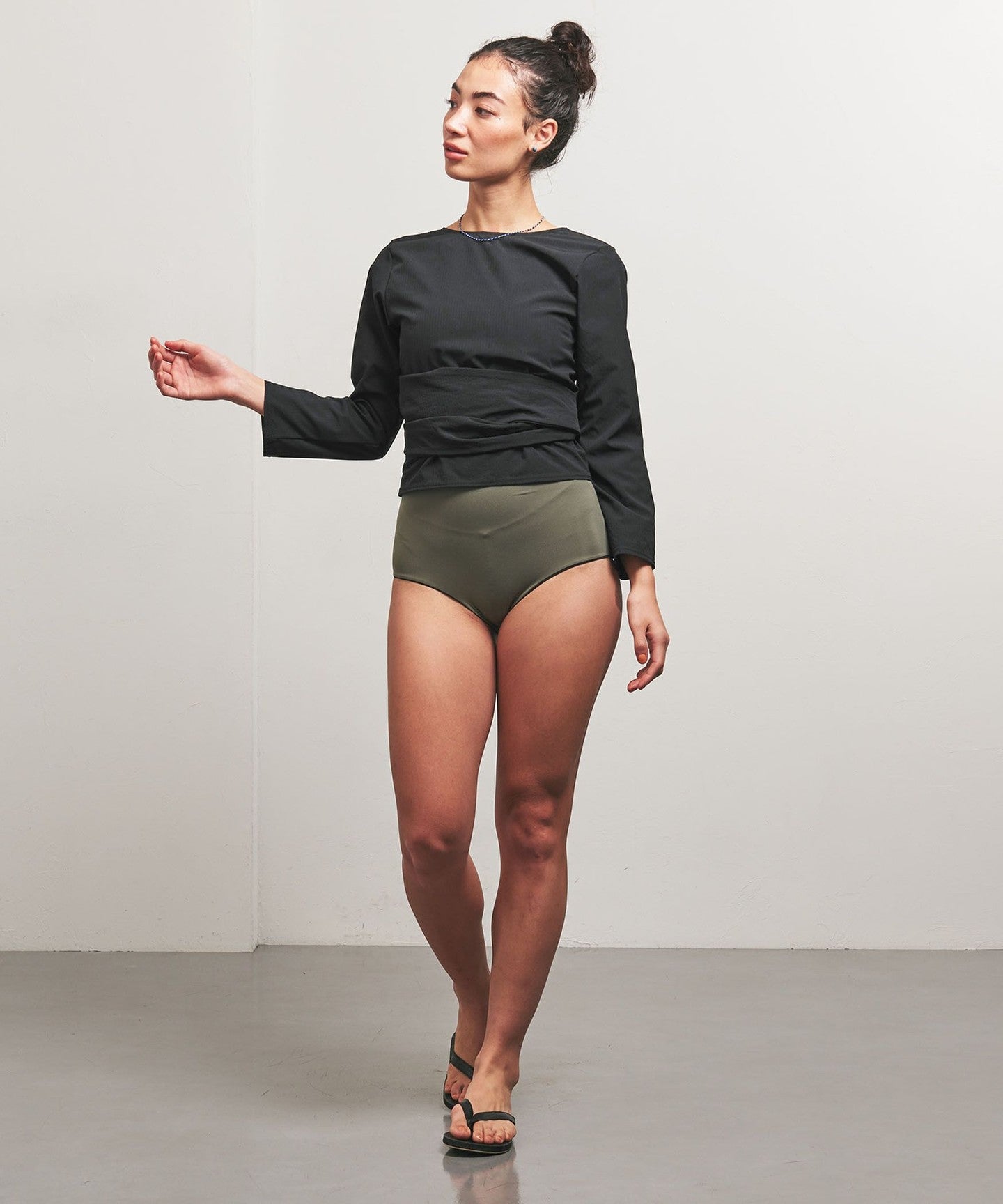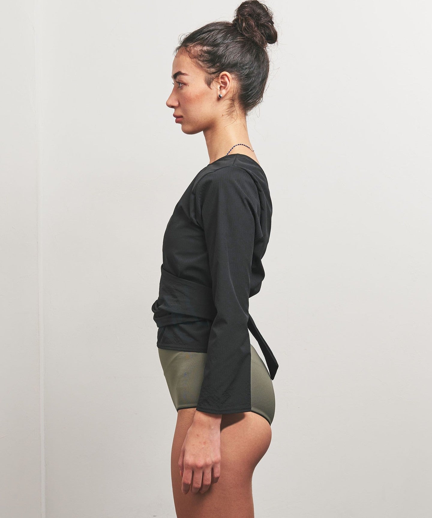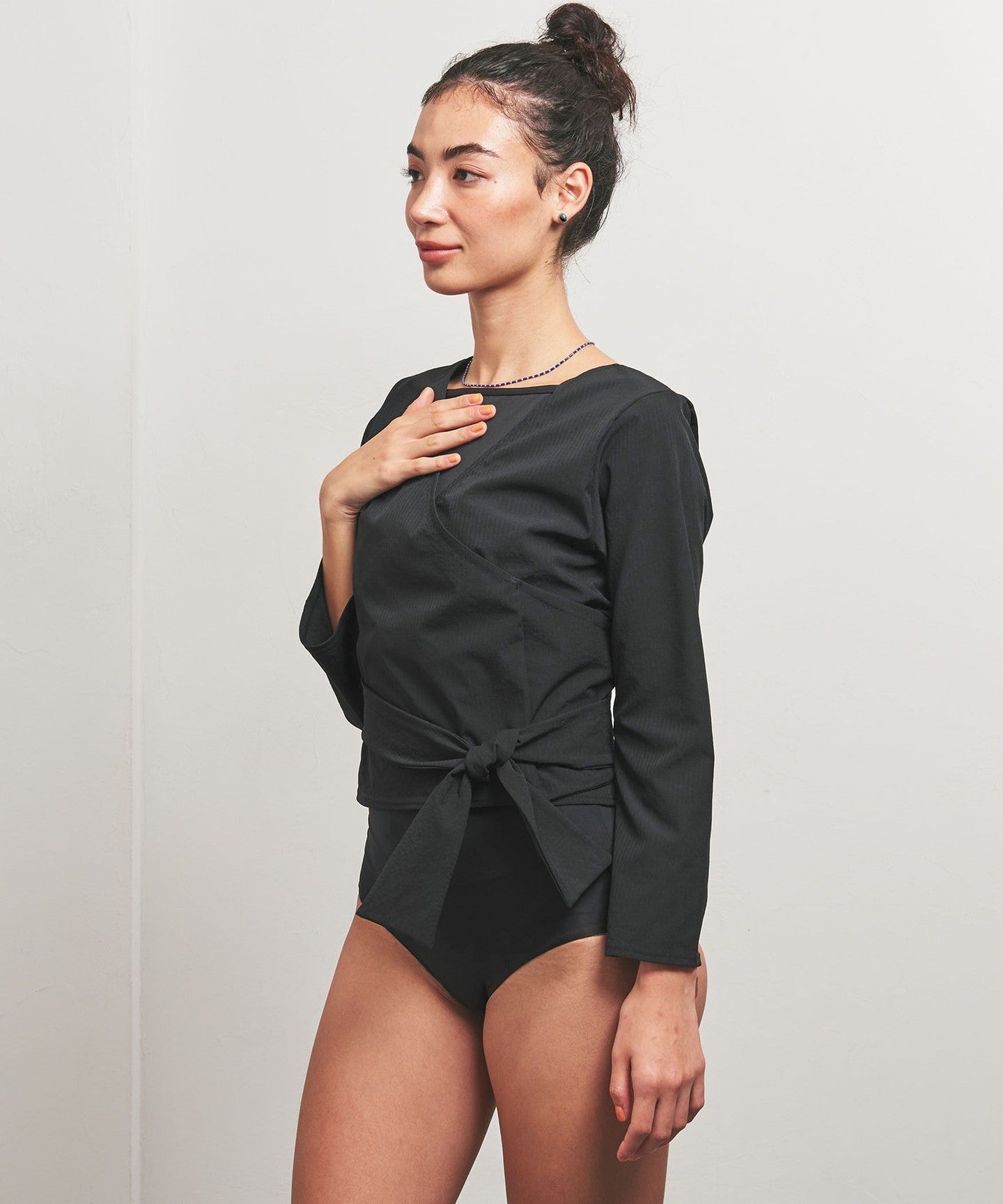 A wrap-around rash guard that you can easily throw on after coming out of the pool or ocean.