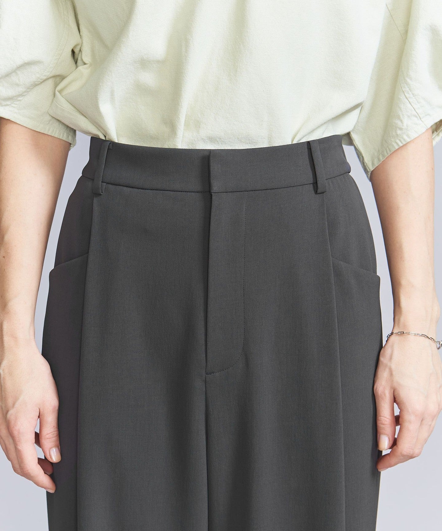 The smart straight silhouette is not too loose, and the front tuck and pocket details give the design a striking look.