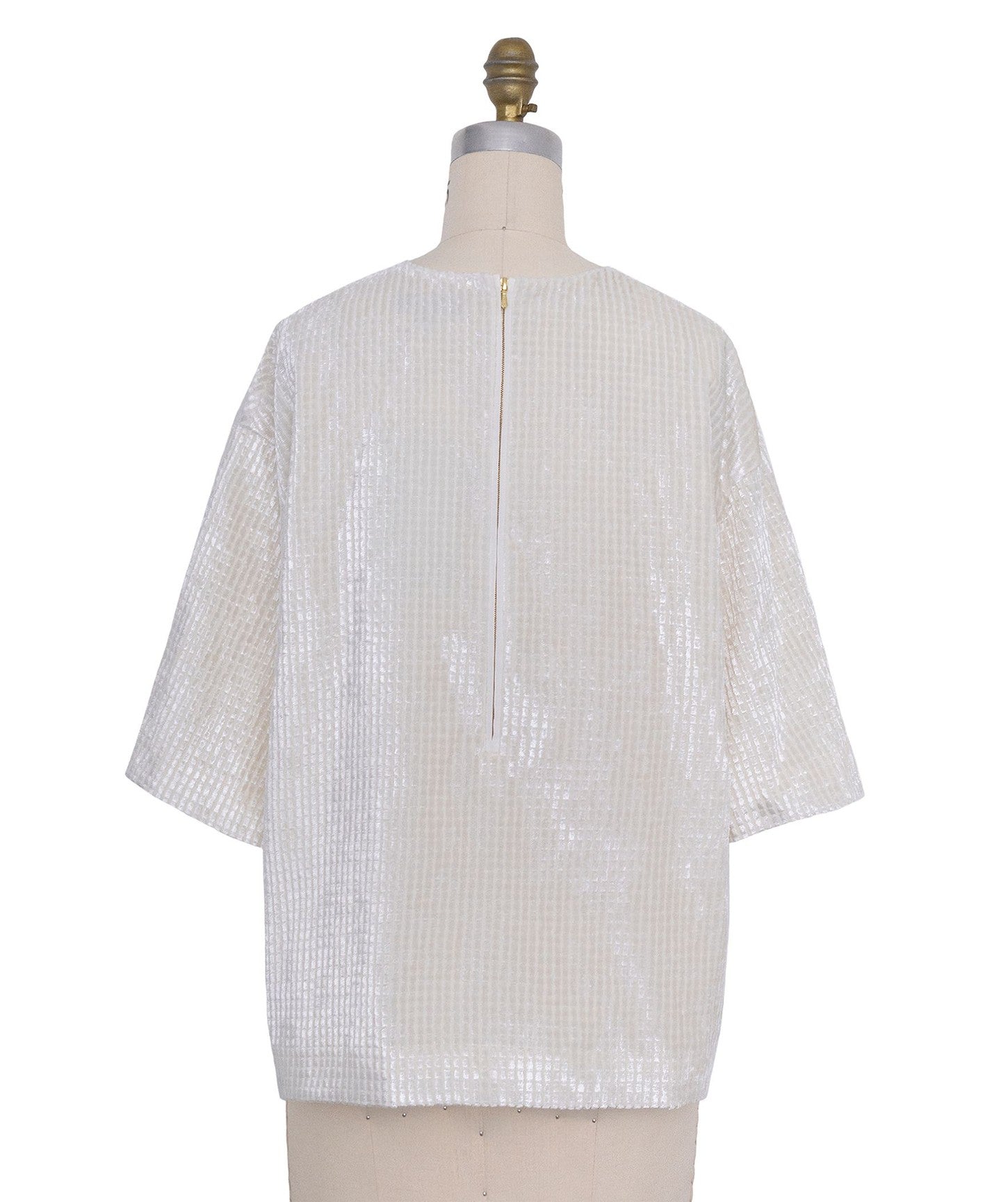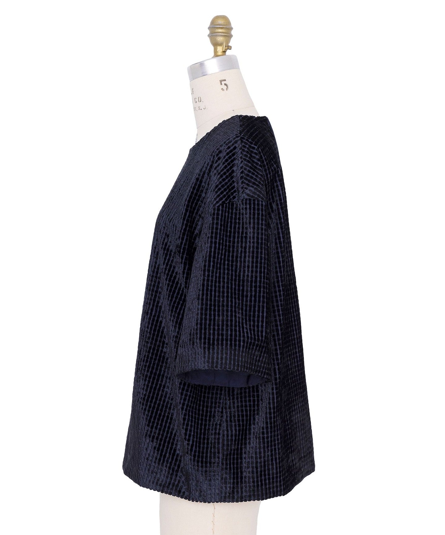 A short-sleeved blouse with a relaxed design like a T-shirt.