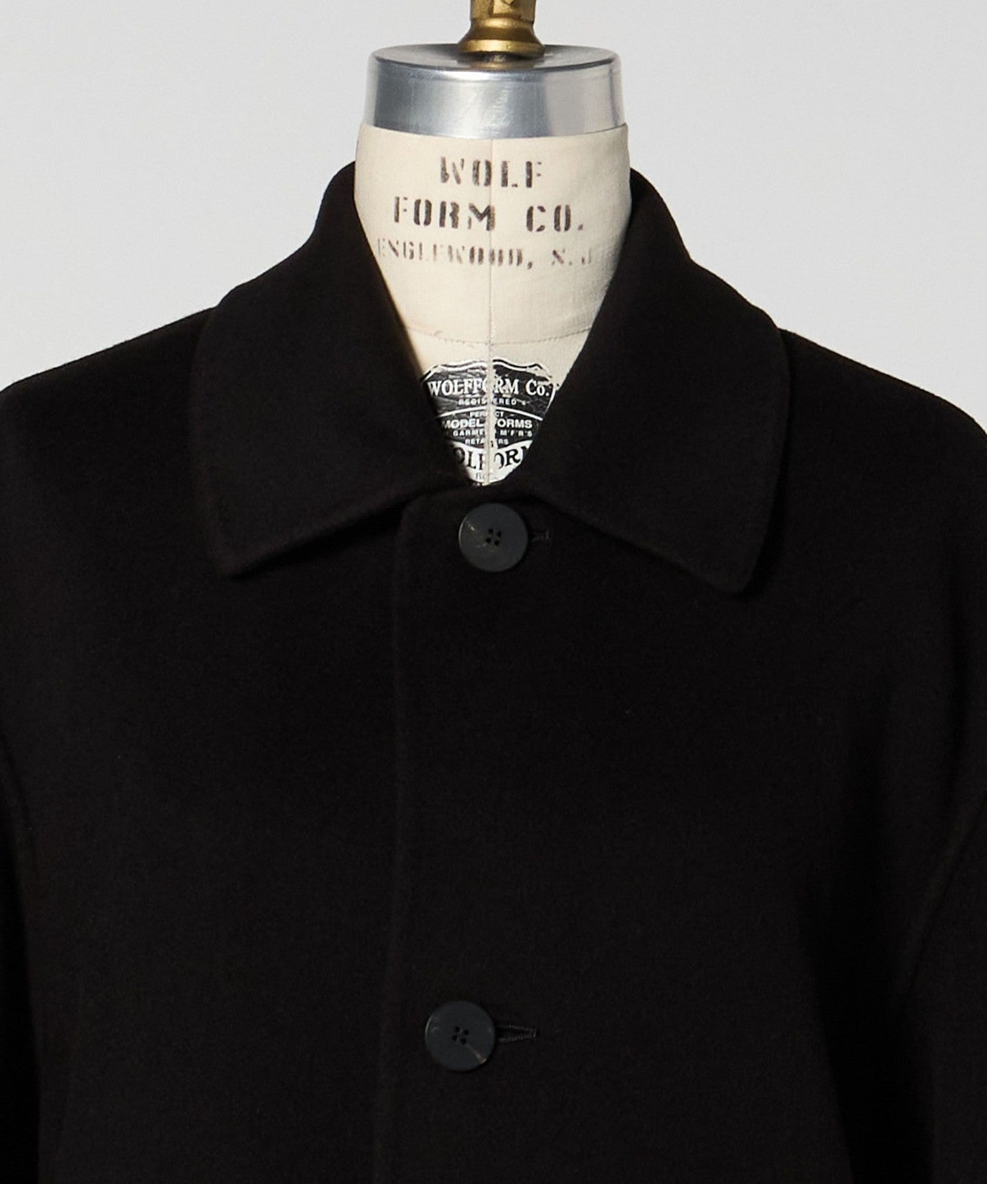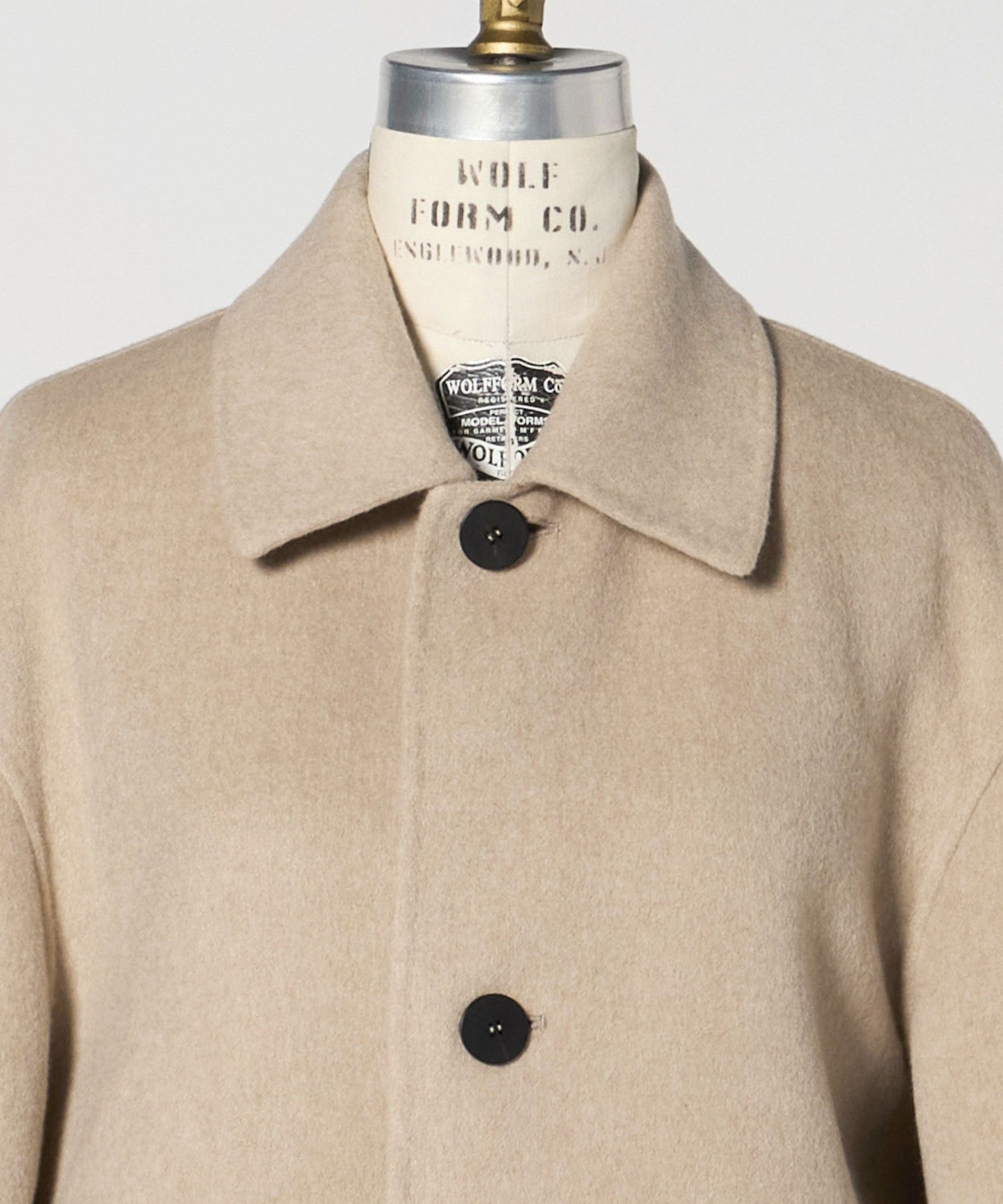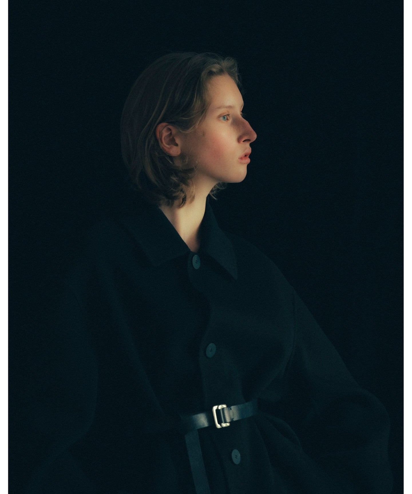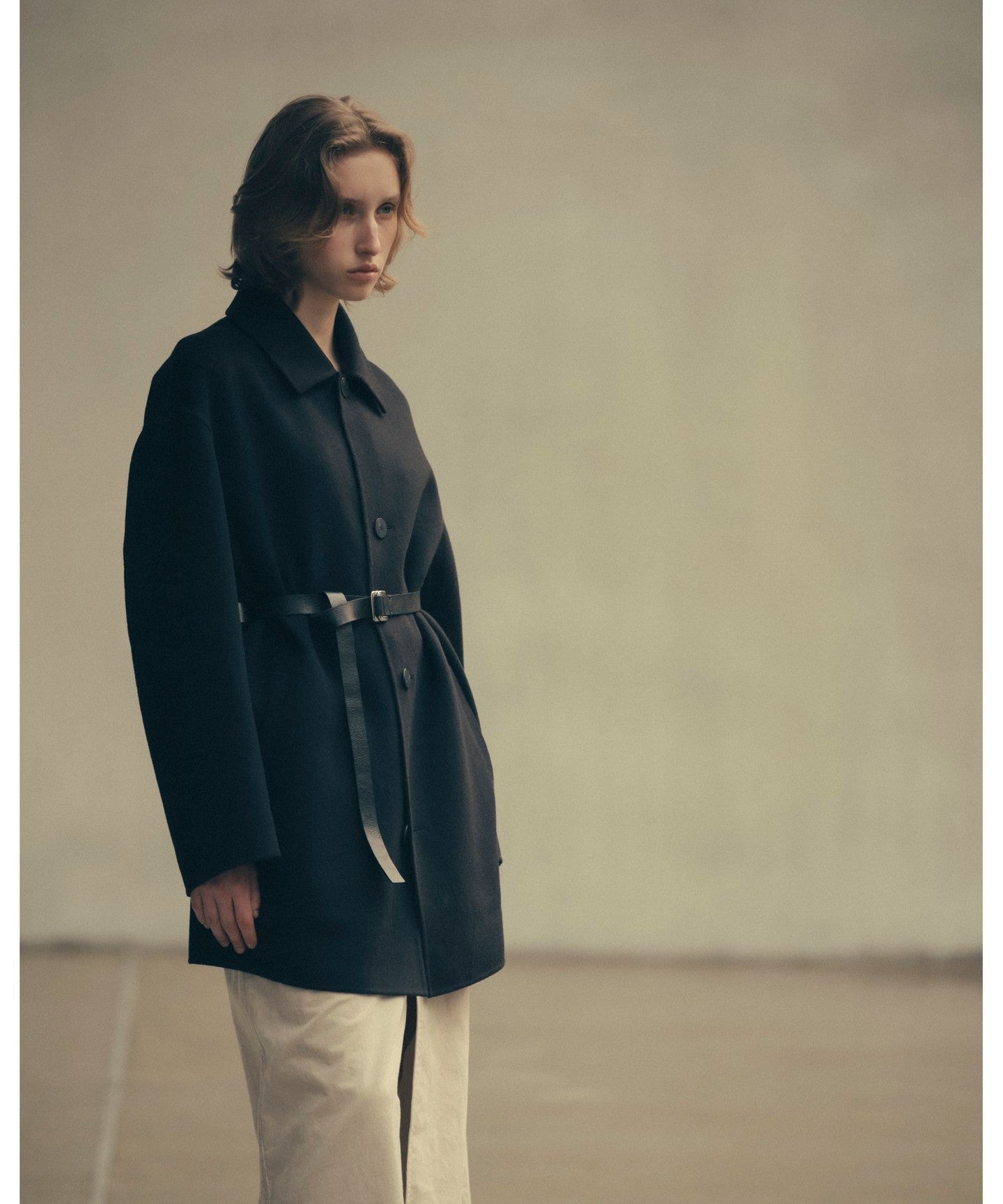 A coverall-style coat with textured buttons that add an accent to the basic form.