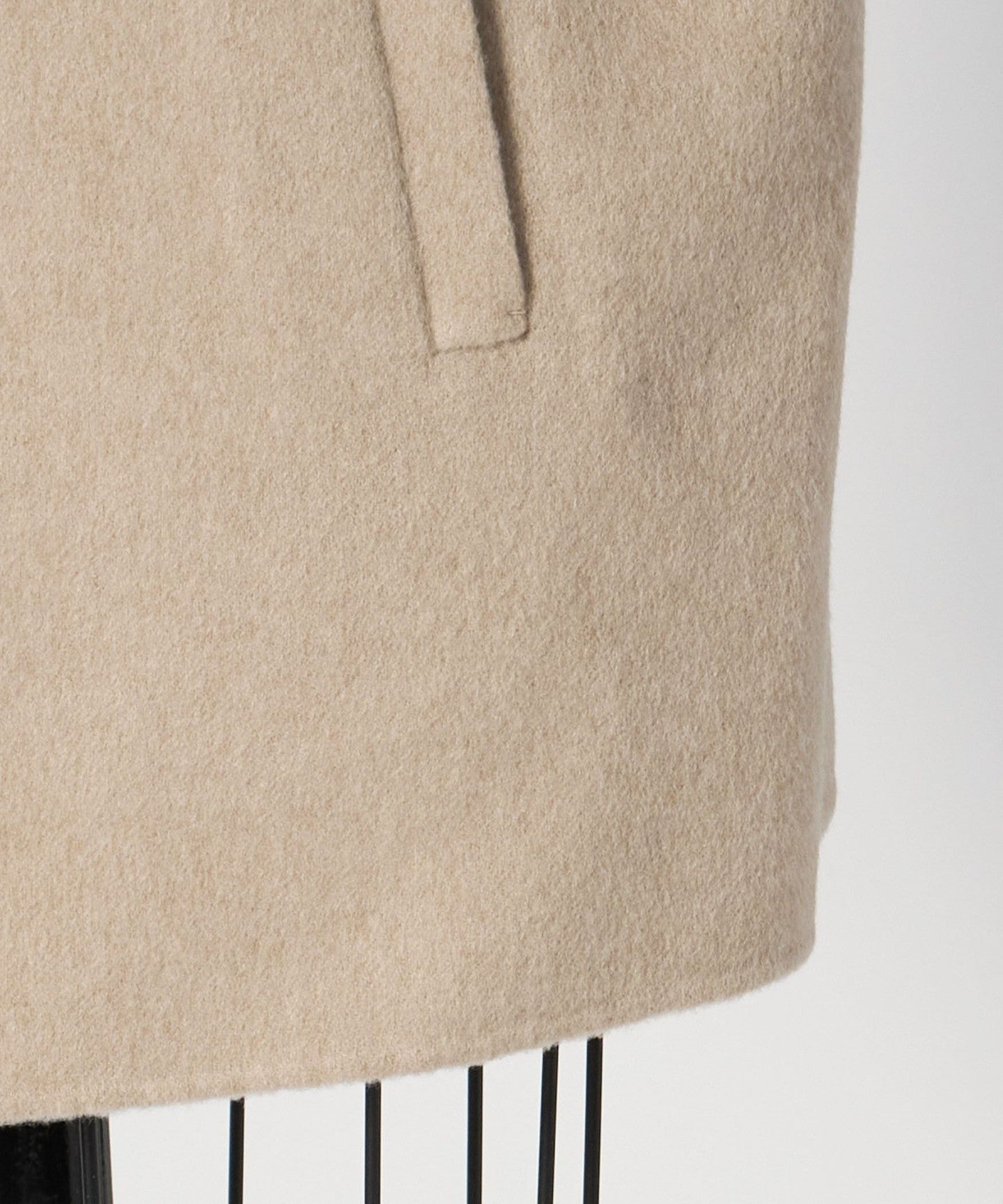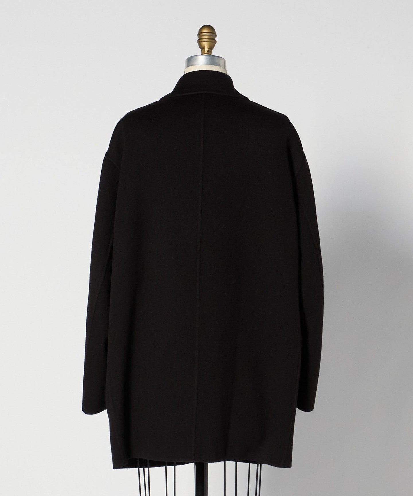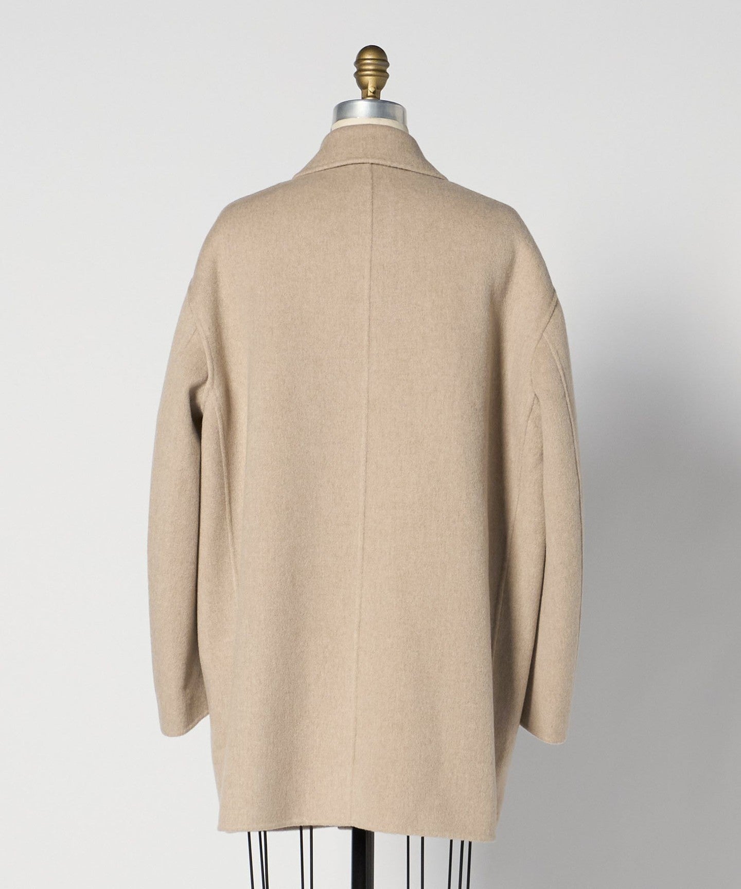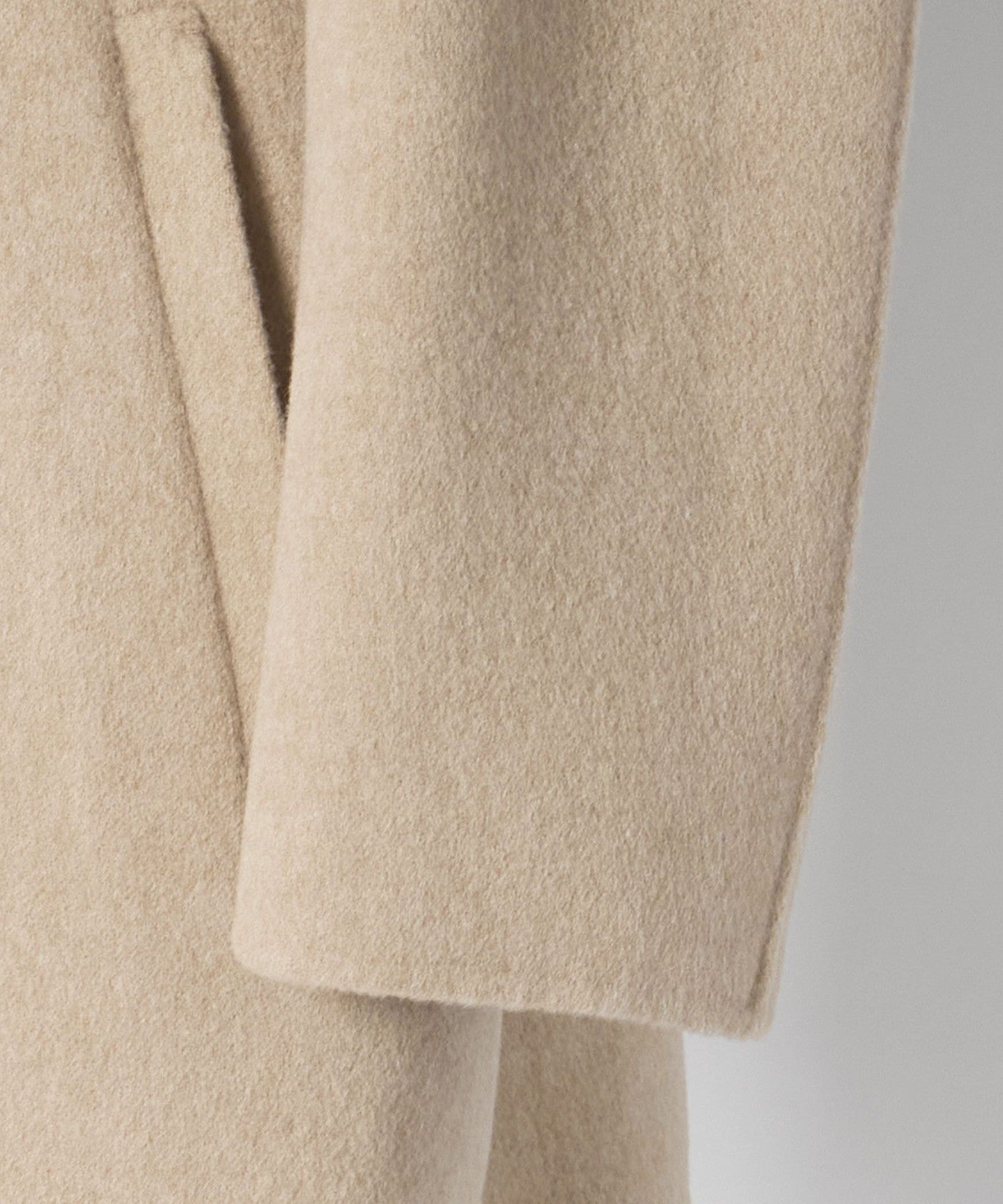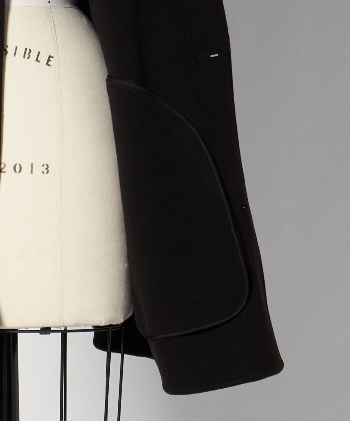 A coverall-style coat with textured buttons that add an accent to the basic form.