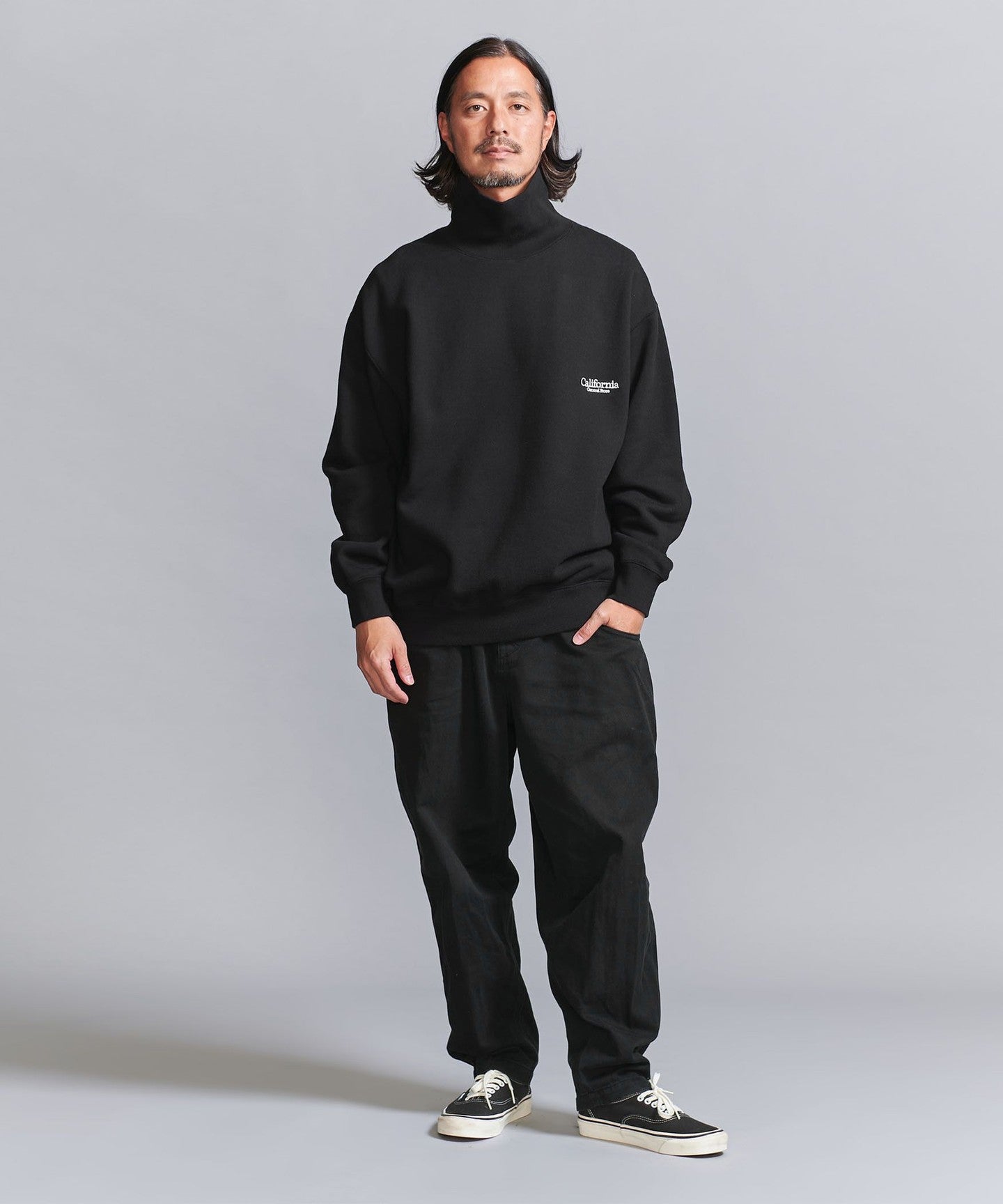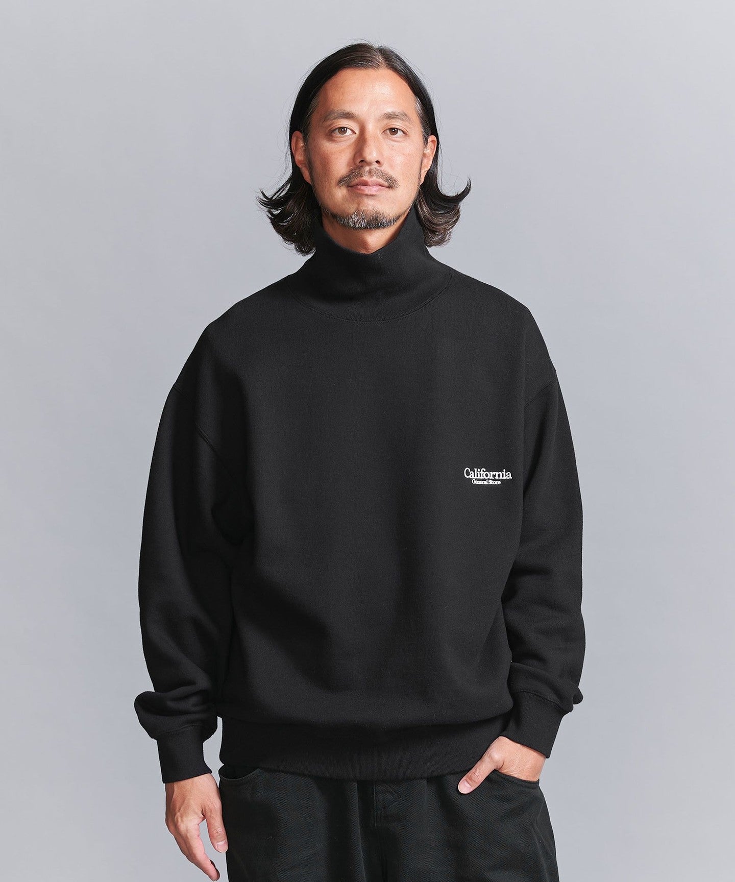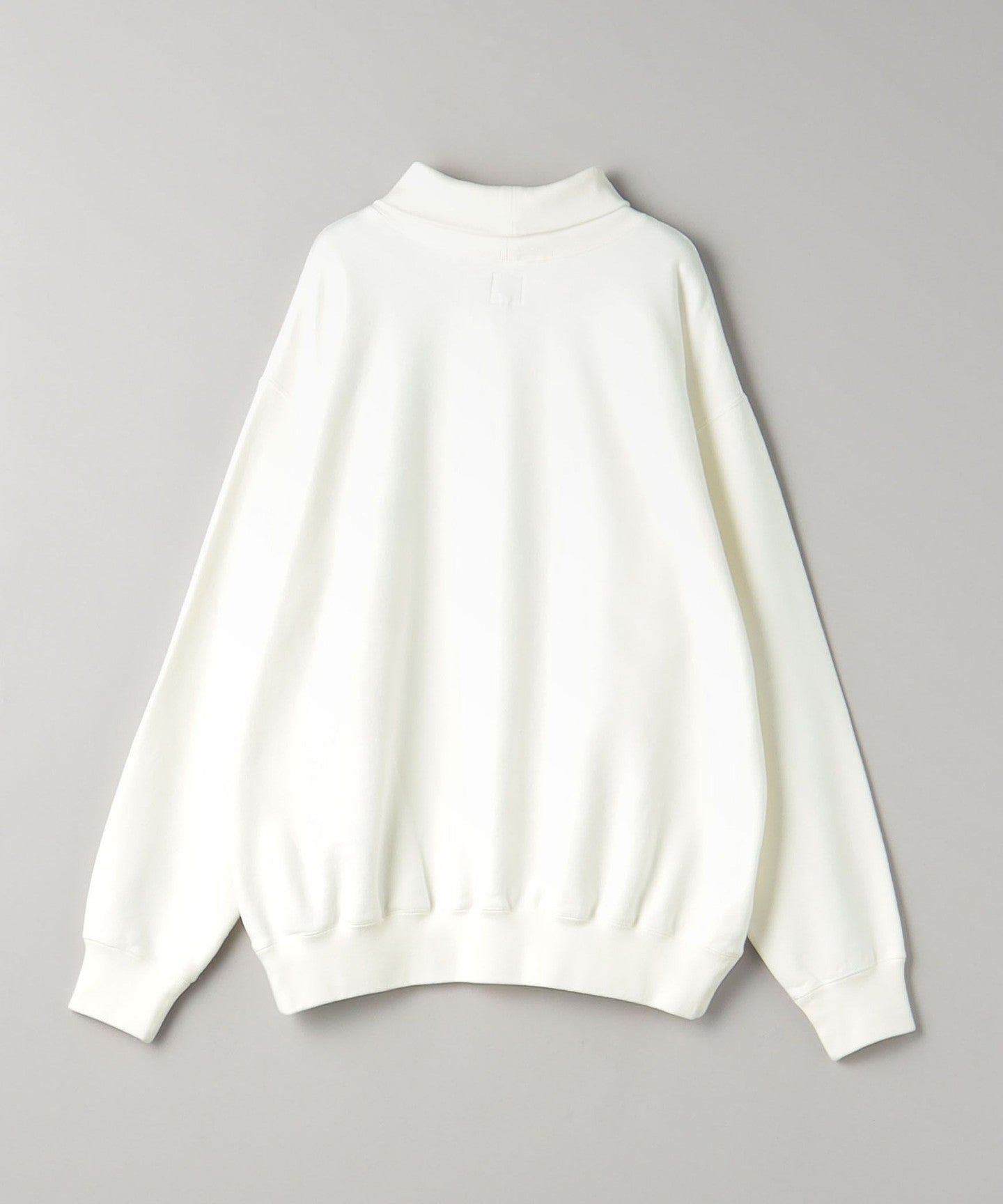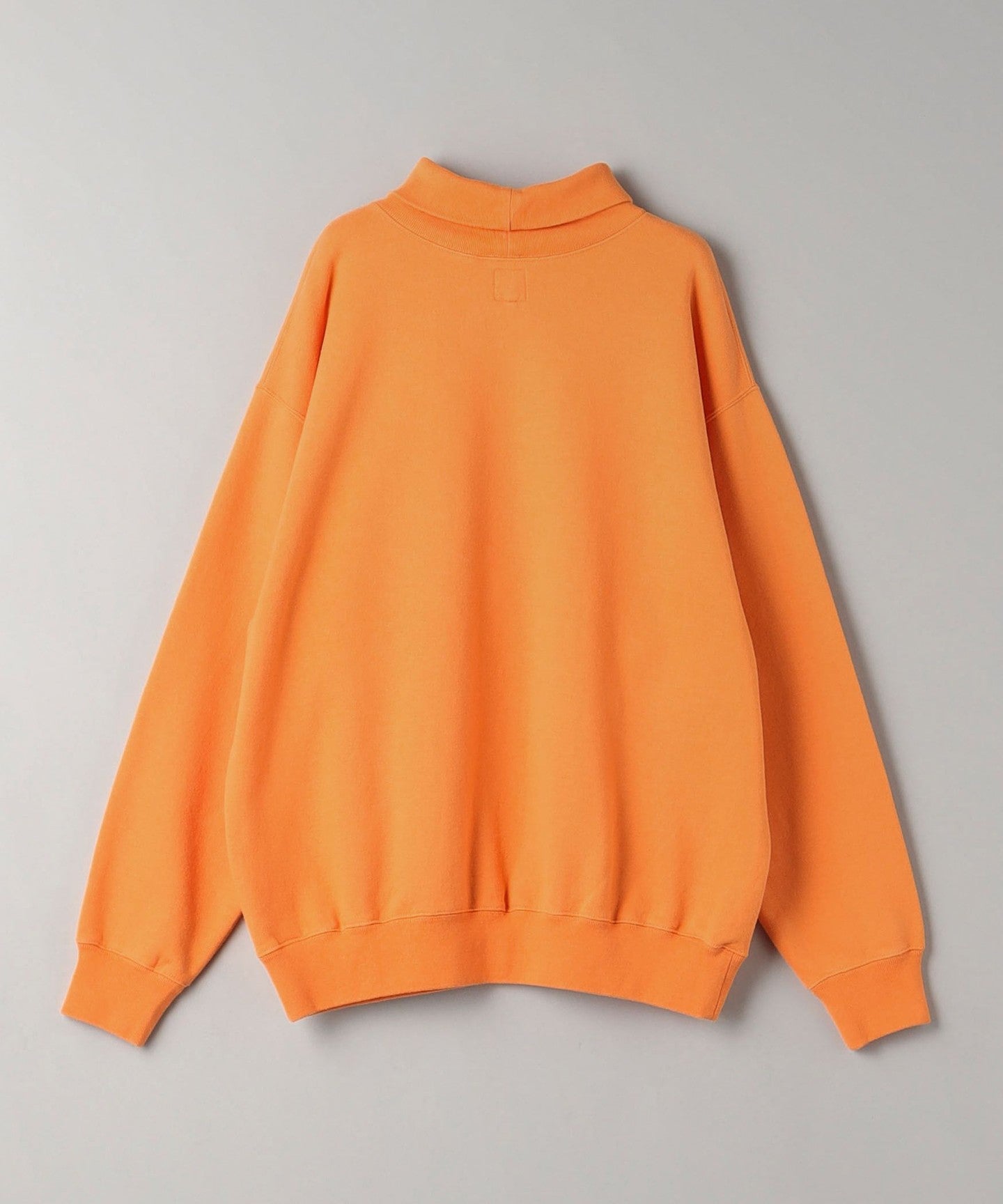 This is a round-body turtleneck top made from unlined sweatshirt material.