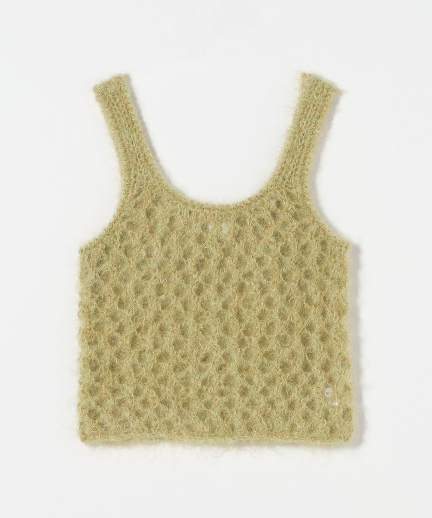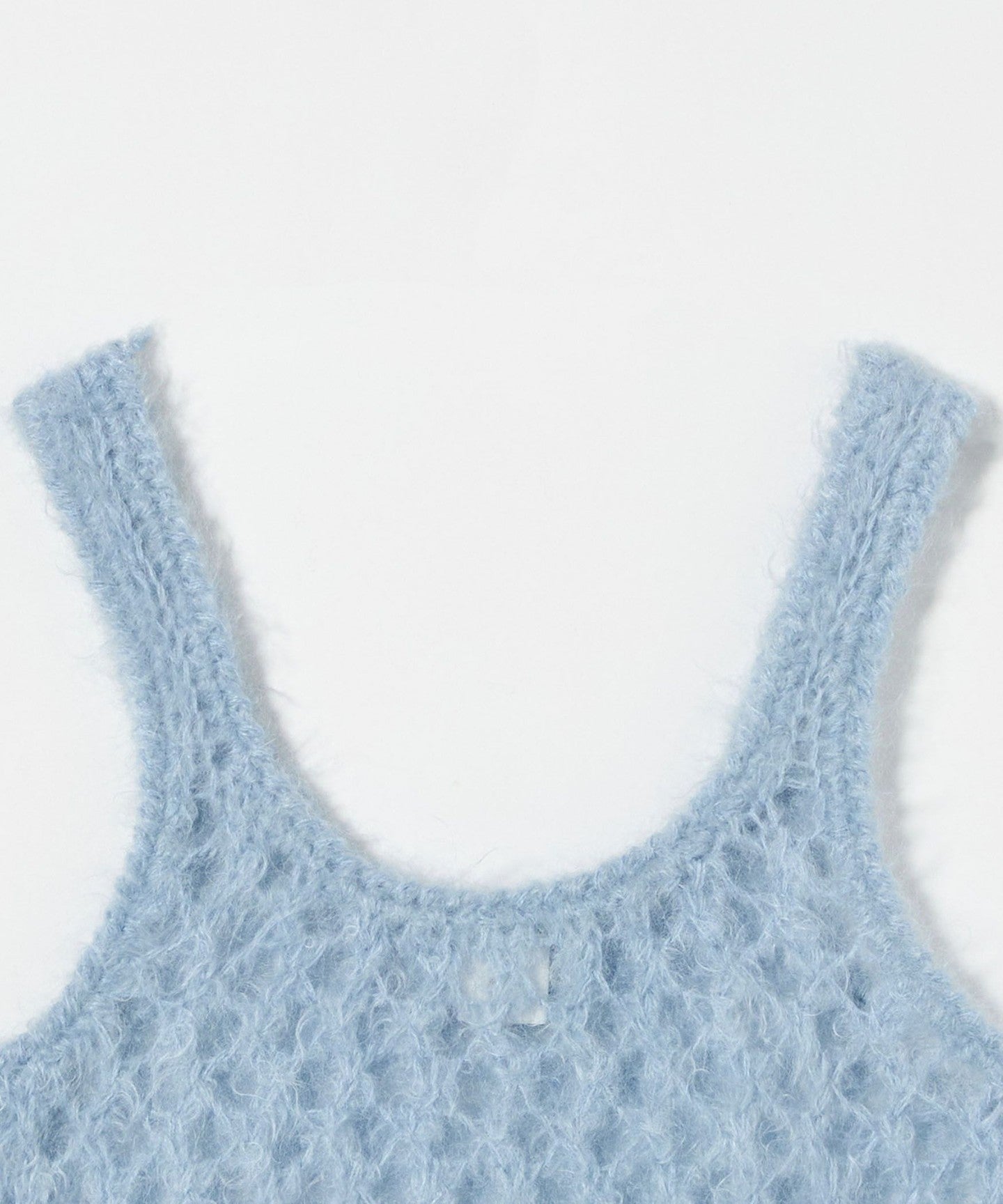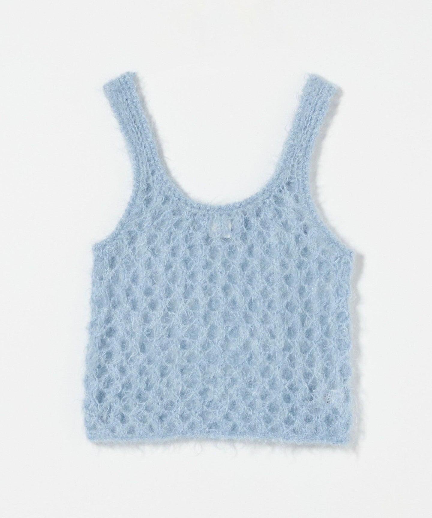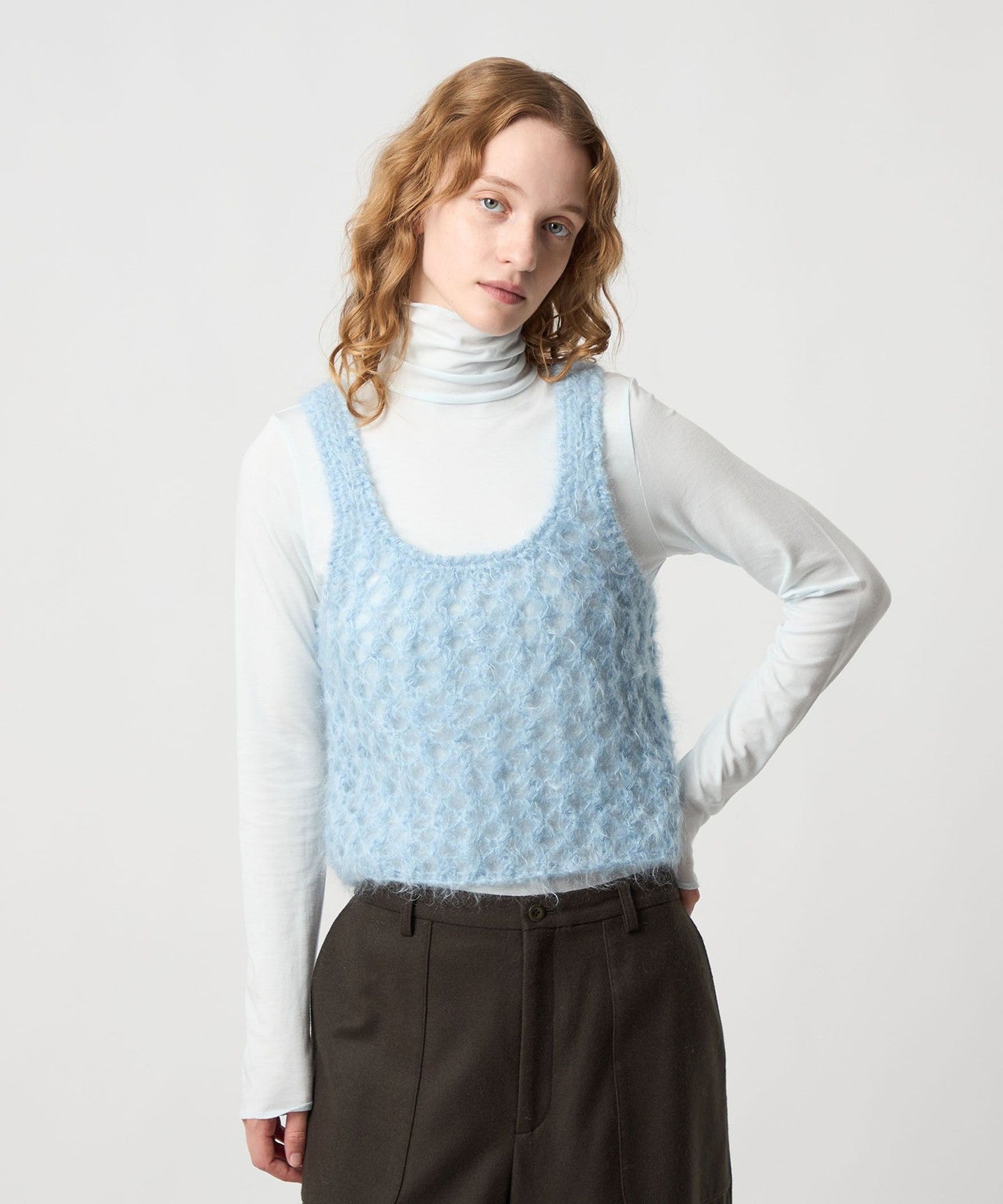 A catchy tank top knit with a fluffy texture made from a mohair blend.