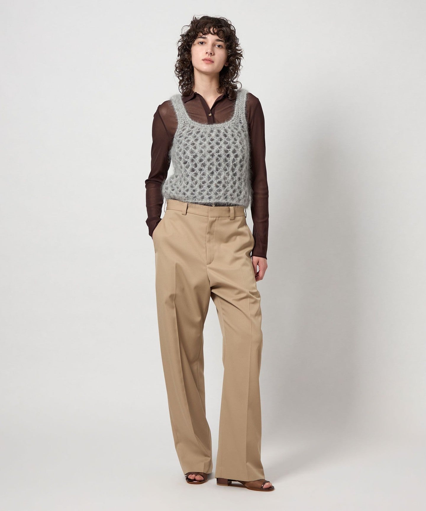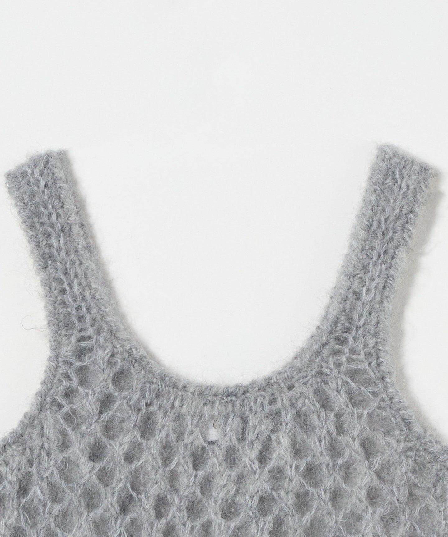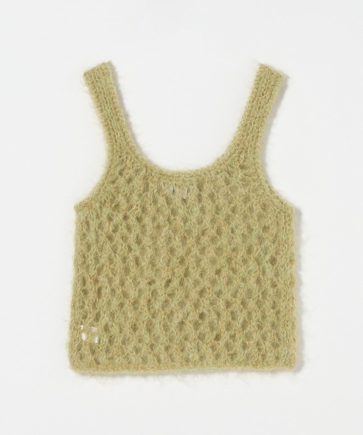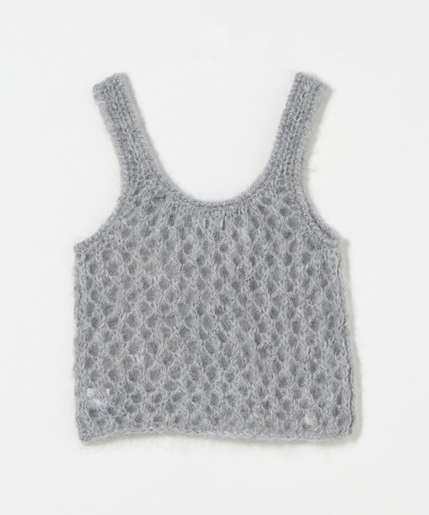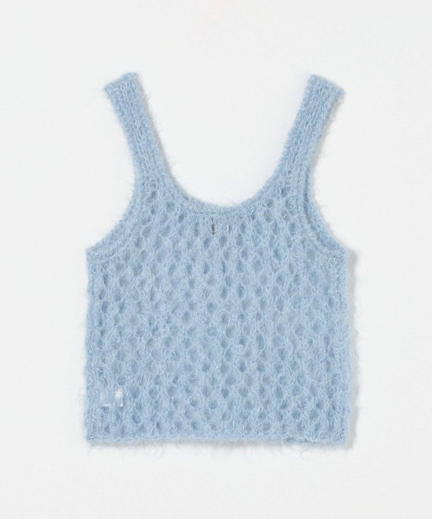 A catchy tank top knit with a fluffy texture made from a mohair blend.