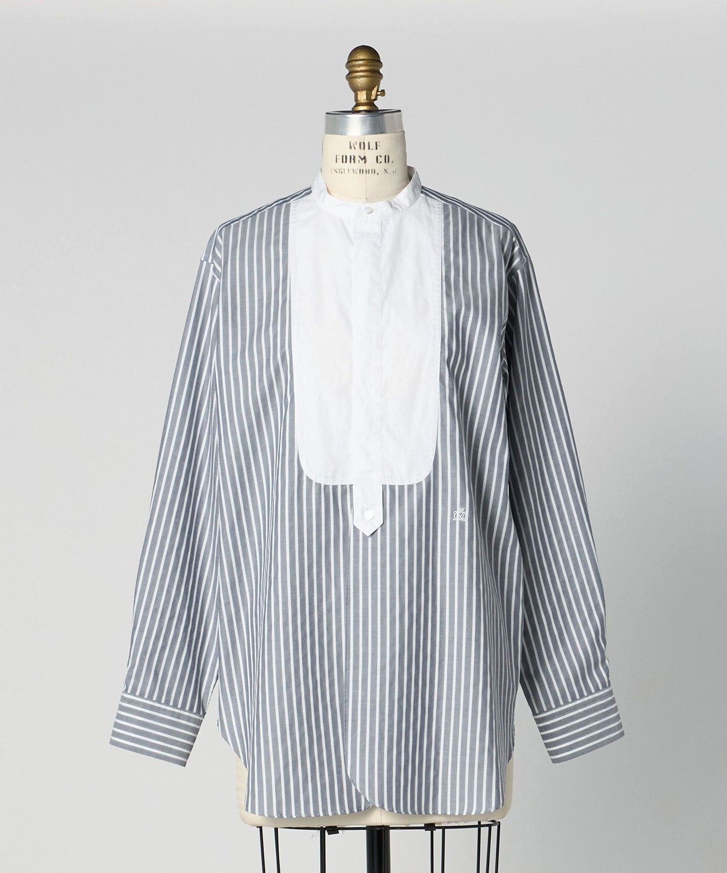 DRAWERPRE Striped Buzzam Stand Collar Shirt