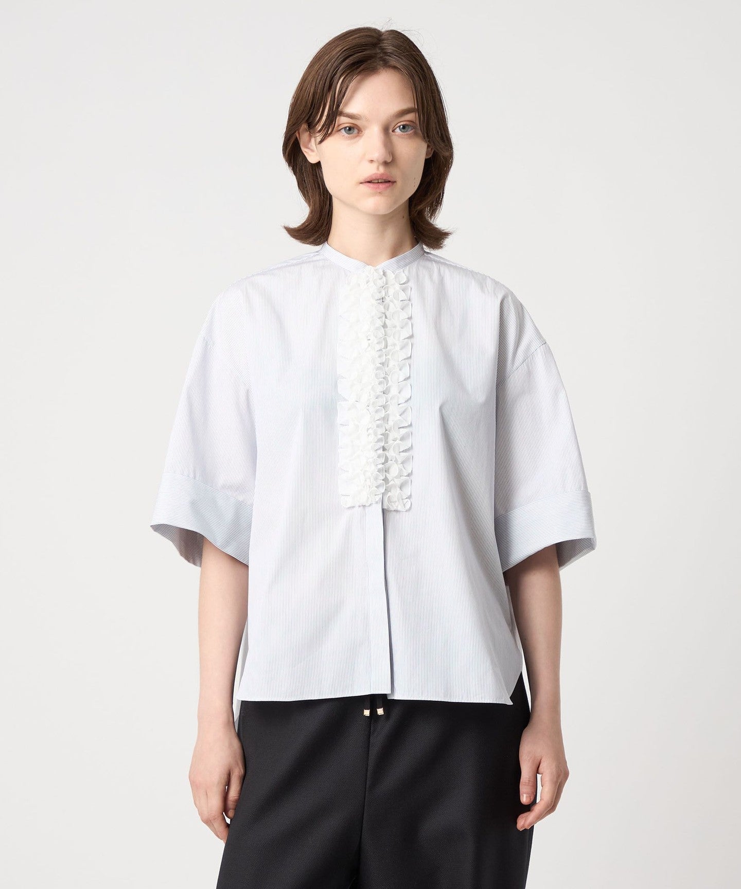 DRAWERPRE Front Ruffle Half Sleeve Shirt