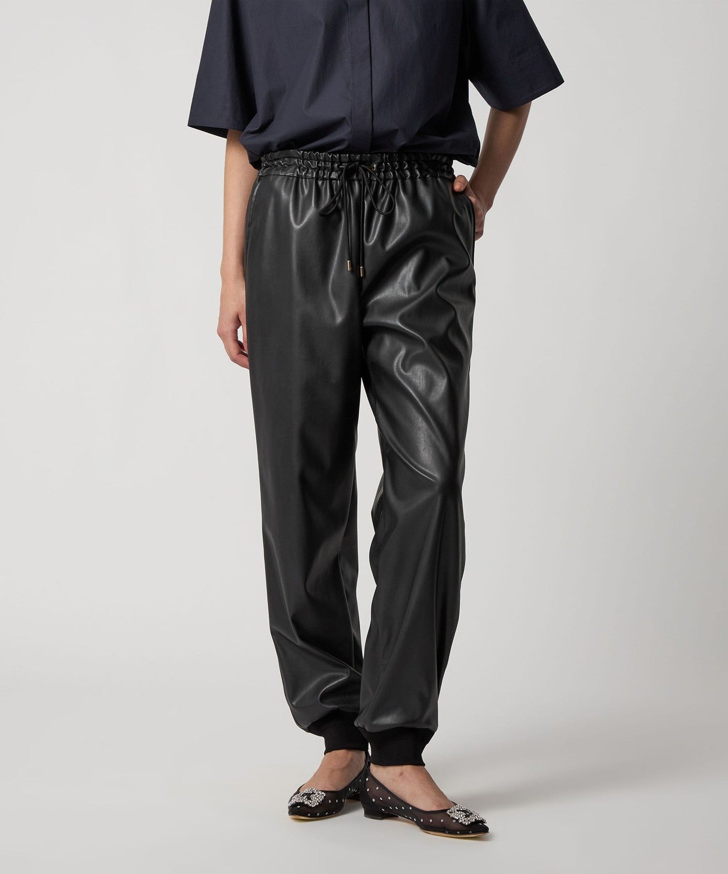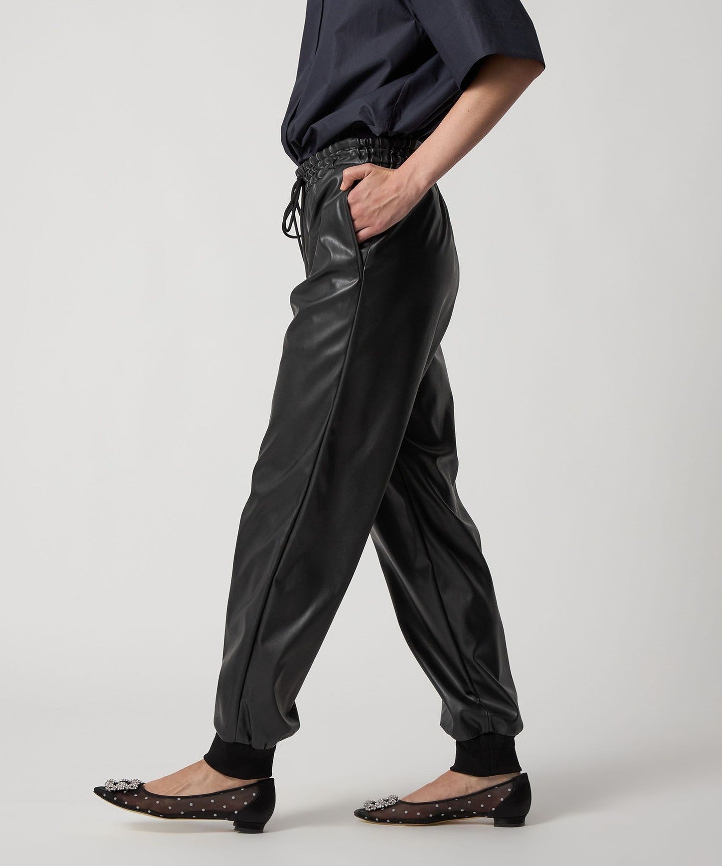 DRAWERPRE Leather-Like Track Pants